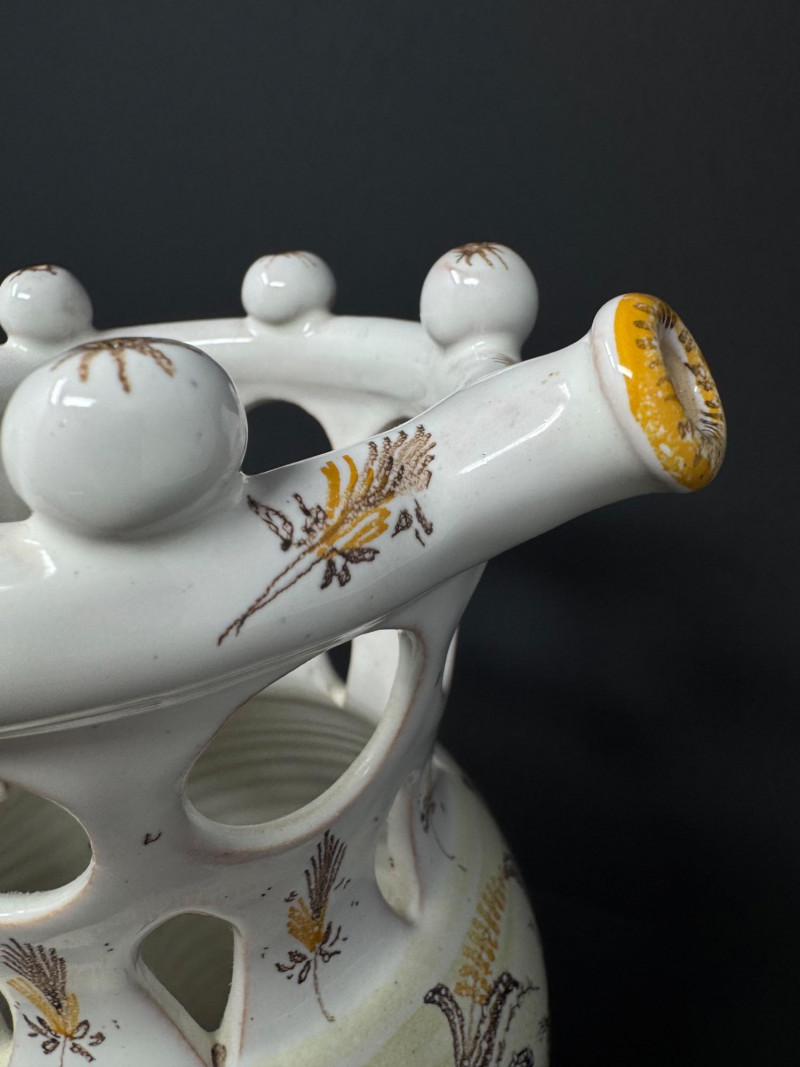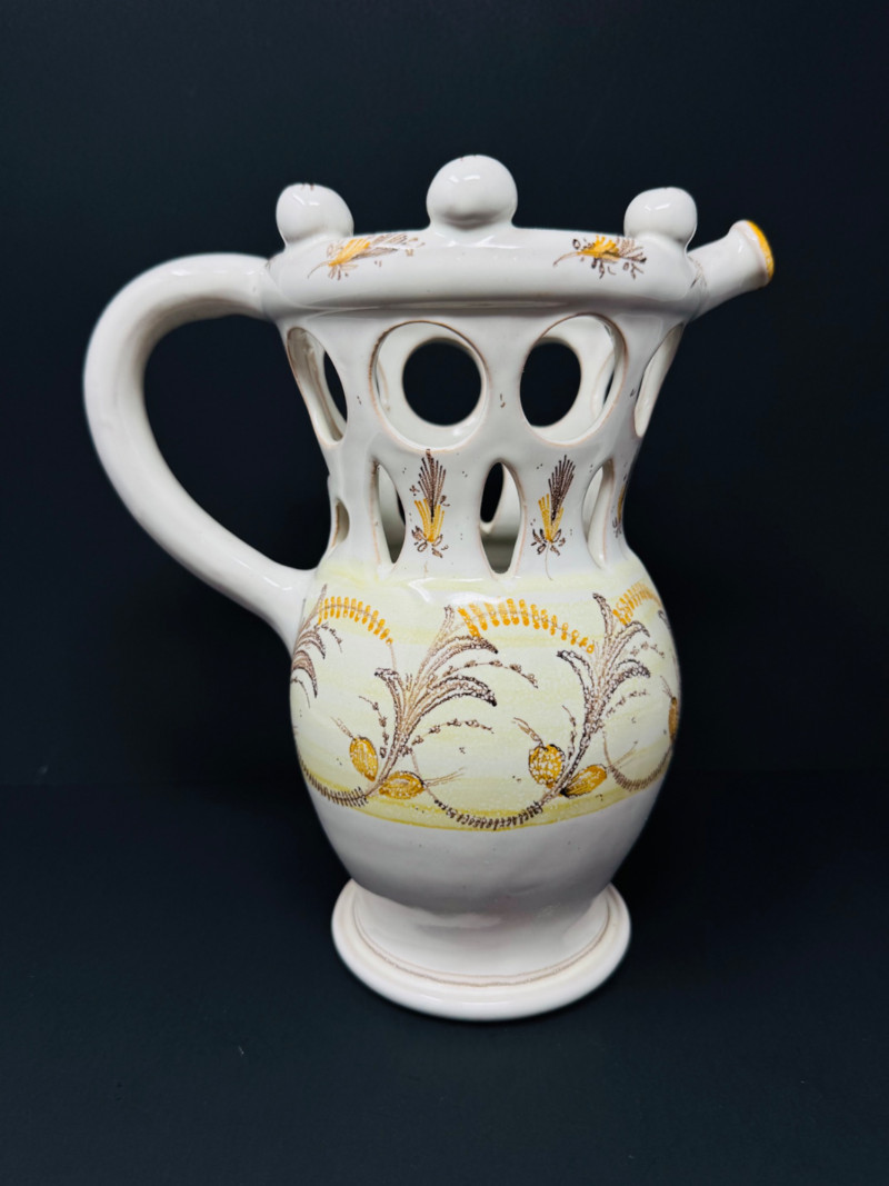 Antique-Style Puzzle Jug w/ Cutout Design & Floral Motif.