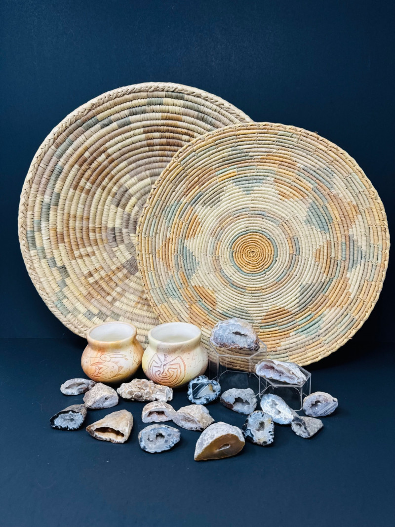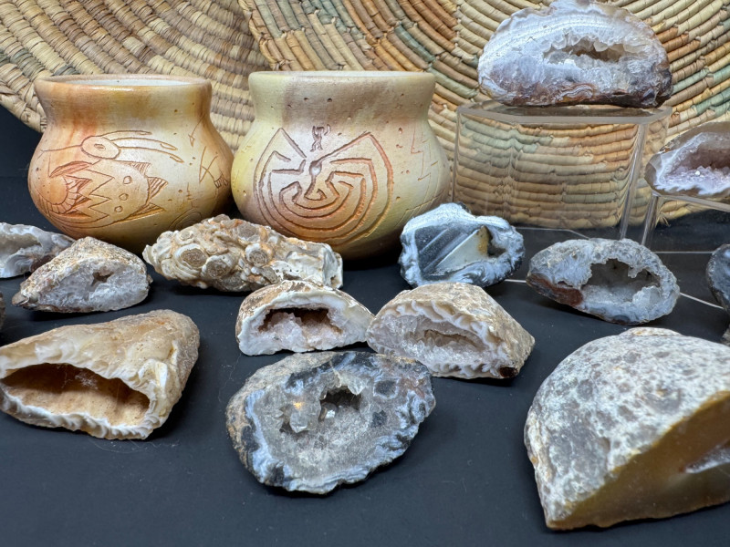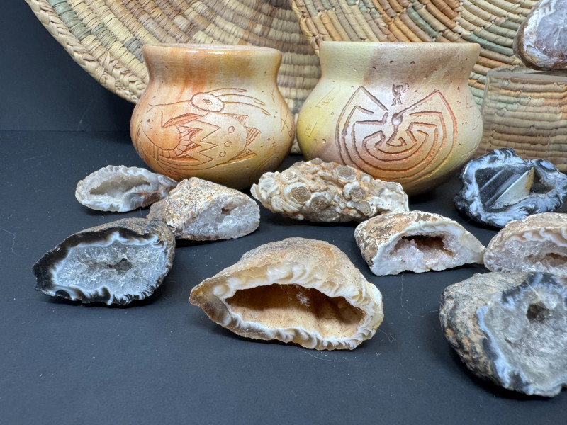 Tonia Yazzie ’98 Pottery, Woven Baskets & Agate Geode Lot.