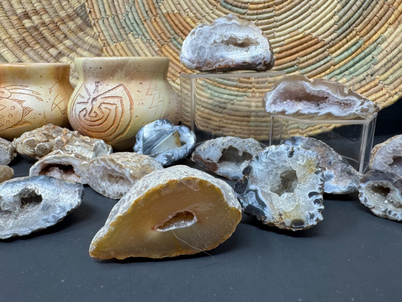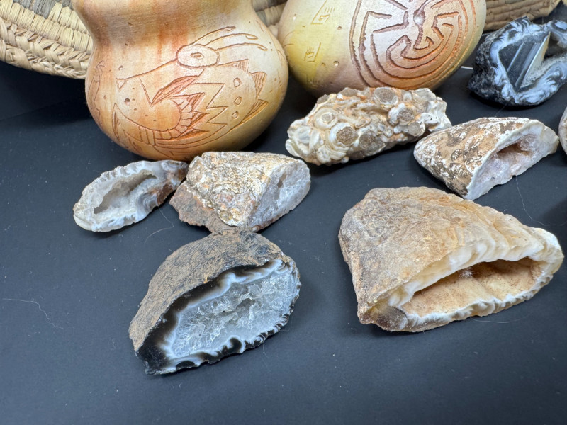 Lot # 110 - Tonia Yazzie ’98 Pottery, Woven Baskets & Agate Geode Lot