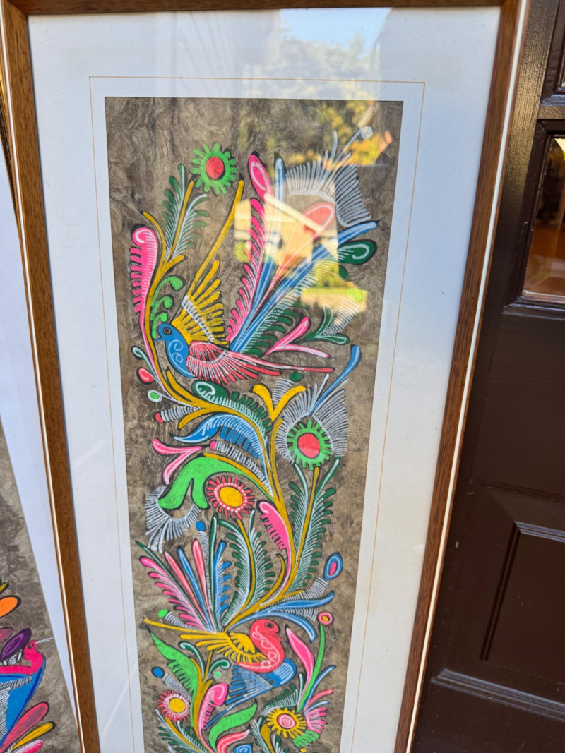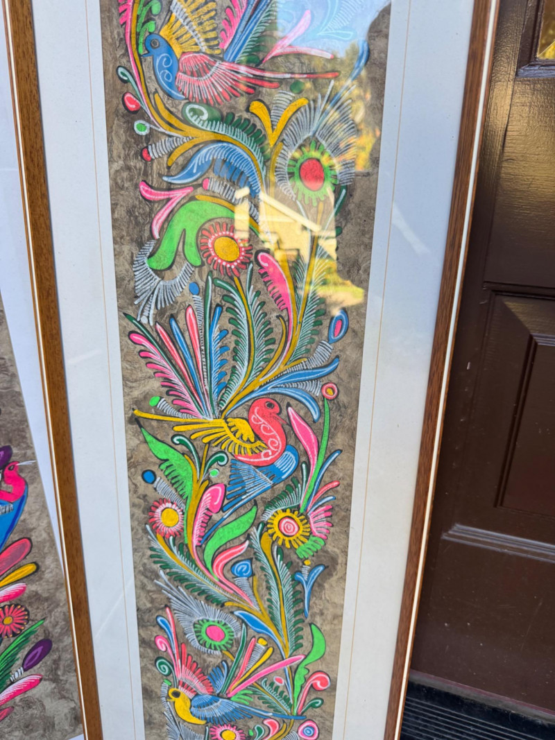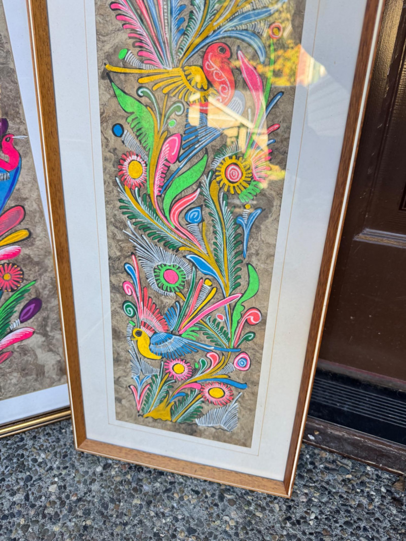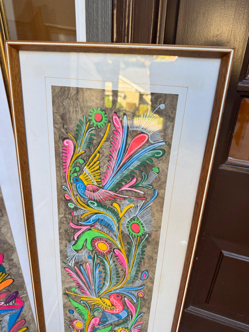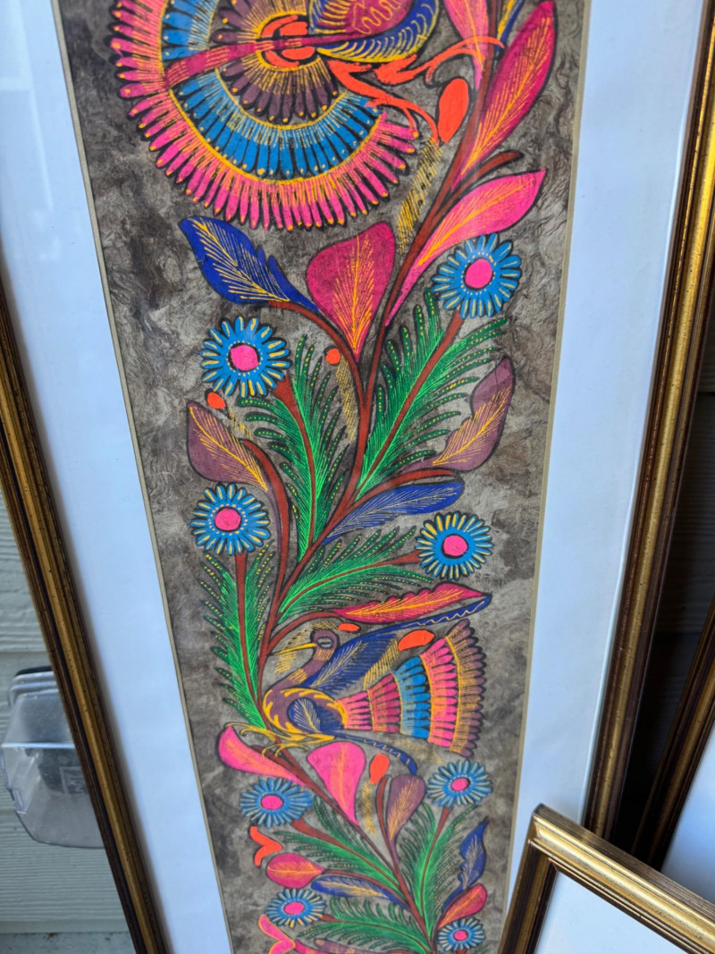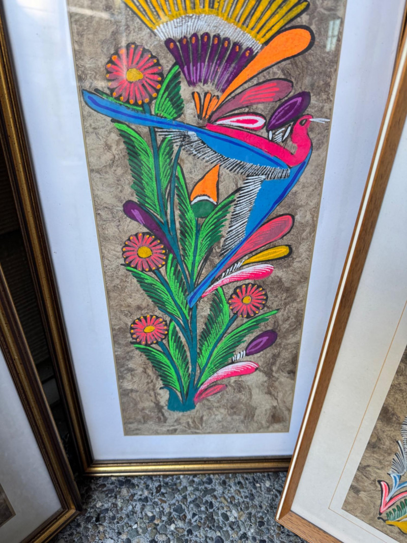 Set Of 4 Vibrant Hand-Painted Neon Mexican Folk Art Paintings.