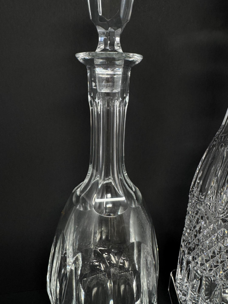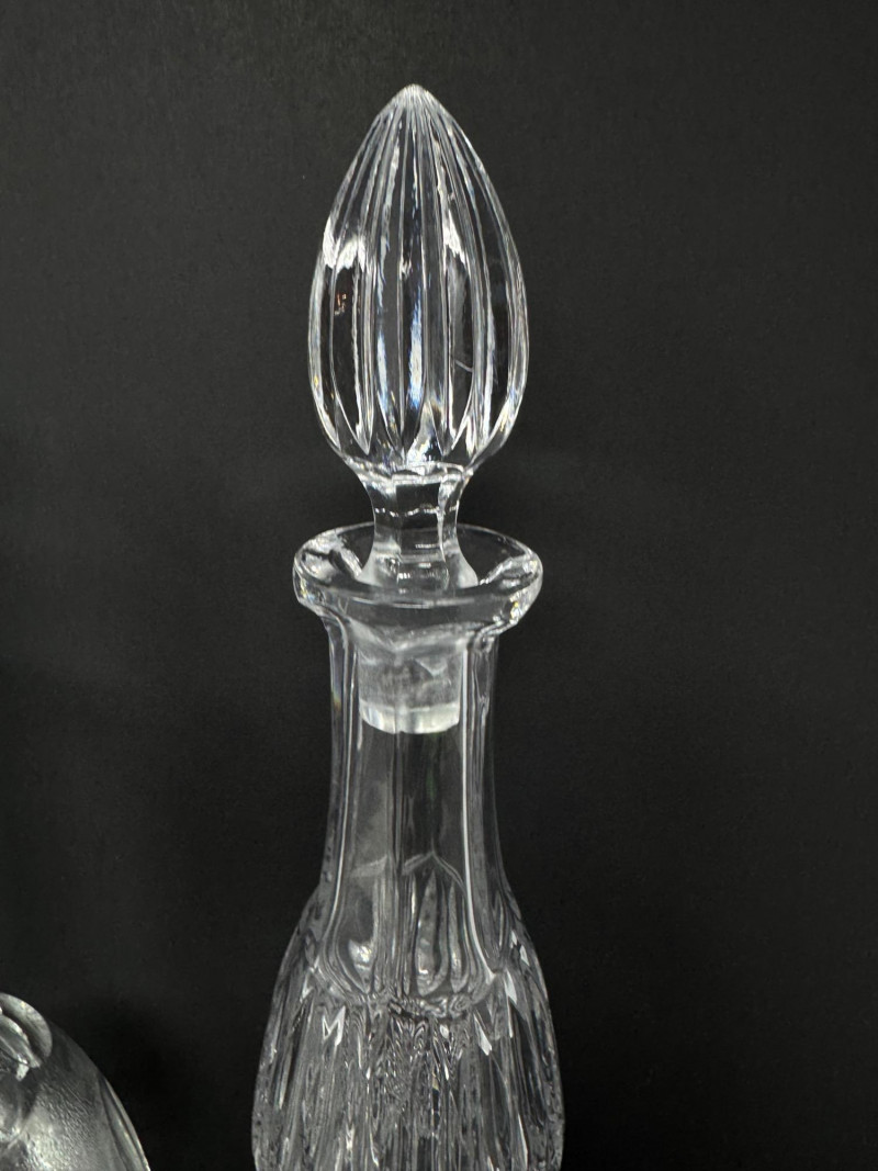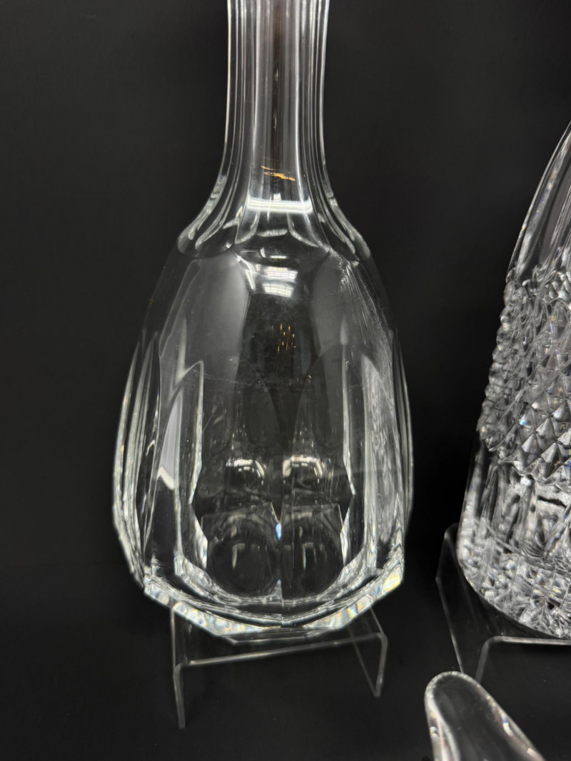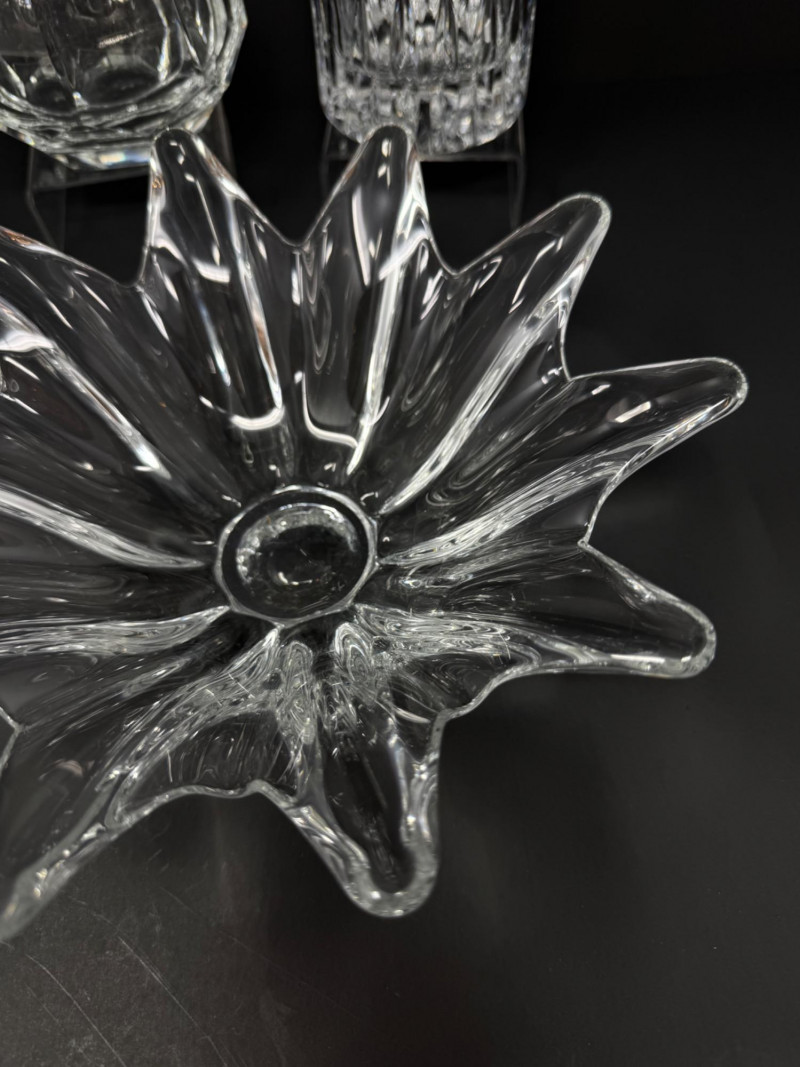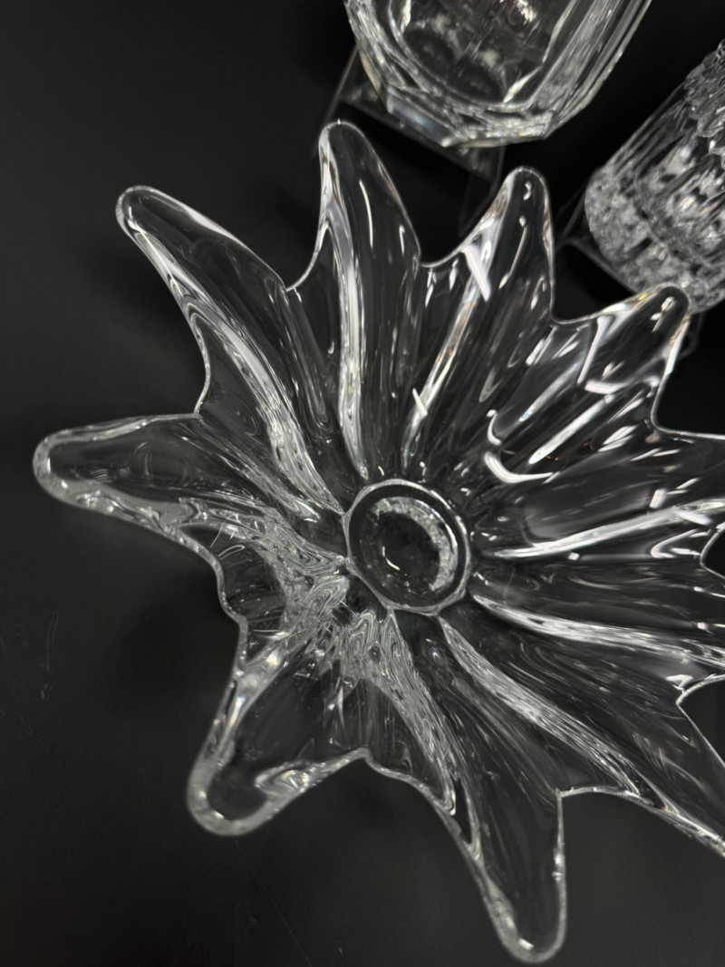 Crystal Decanters, Tall & Teardrop Shapes, w/ Starburst Bowl.