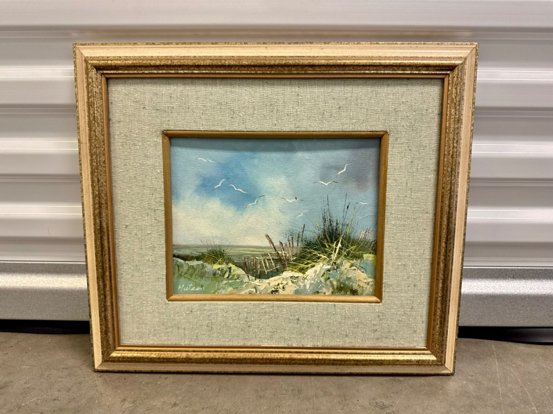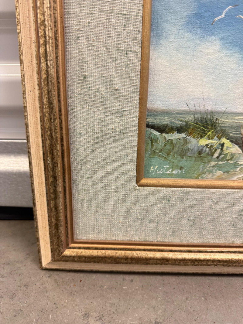 Signed Beach Landscape Oil Painting by Hutson.