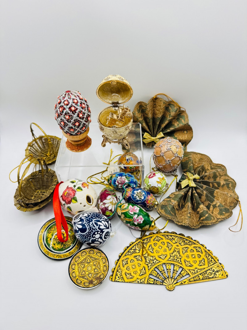Lot # 151 - Decorative Fabergé Style Eggs, Cloisonné Ornaments & Trinket Lot
