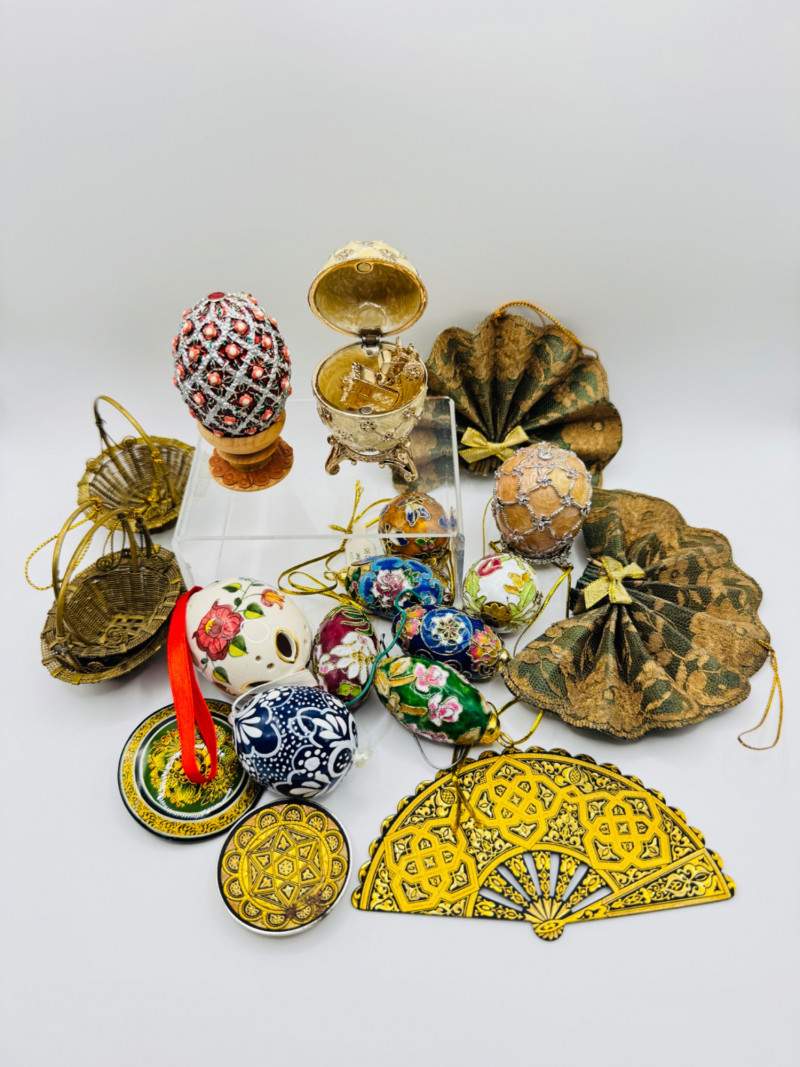Decorative Fabergé Style Eggs, Cloisonné Ornaments & Trinket Lot.