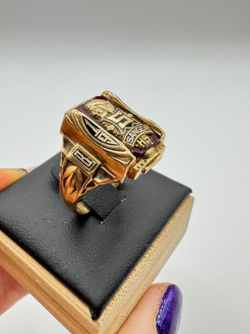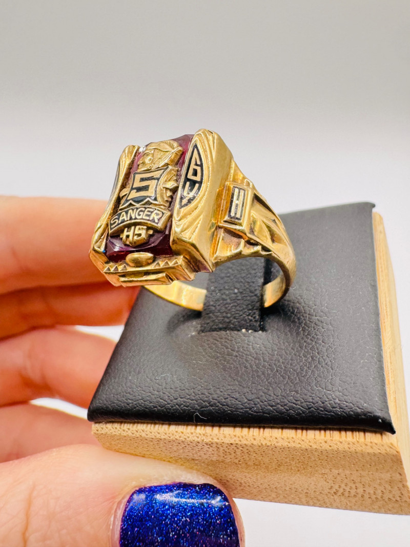 Vintage 1964 Sanger High School Class Ring – 10K Gold Jostens, 10.62g.