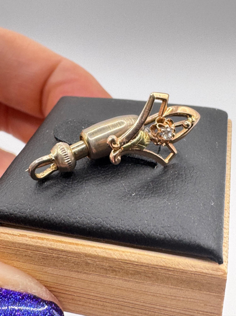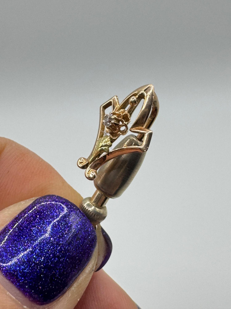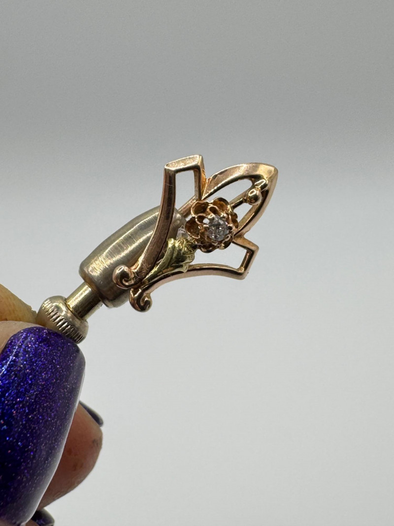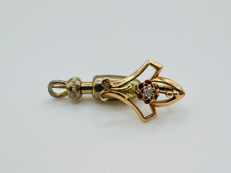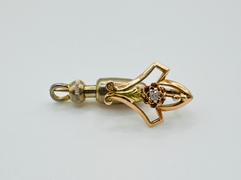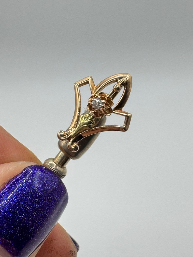 Lot # 157 - 10K Gold Fleur-de-Lis Pin w/ Diamond Accent, Tested & Confirm 0.89g
