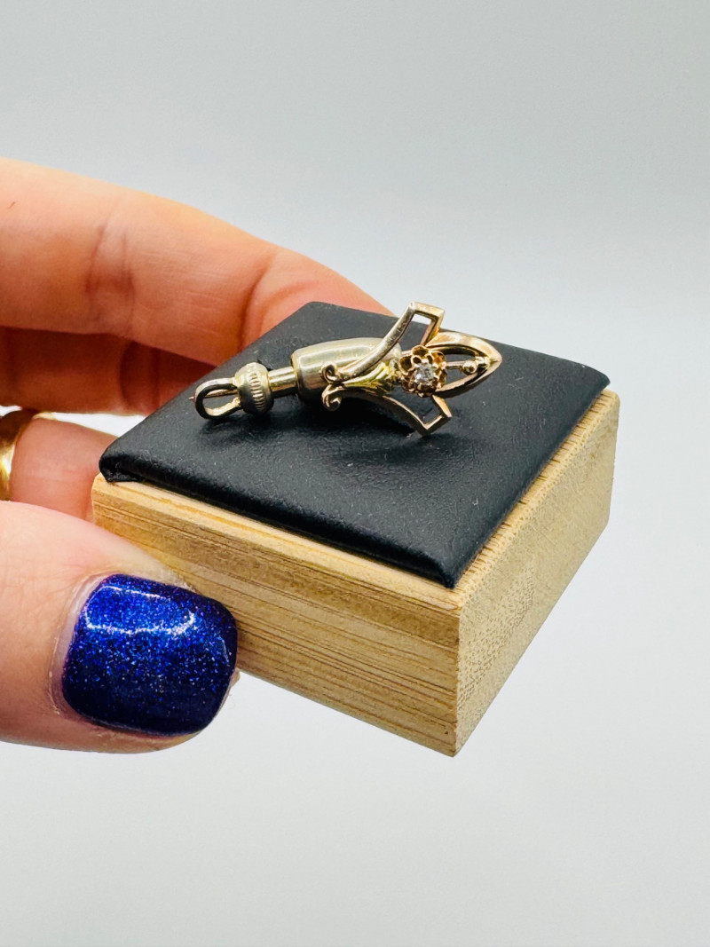 10K Gold Fleur-de-Lis Pin w/ Diamond Accent, Tested & Confirm 0.89g. Important Disclaimer: This jewelry piece has been acid tested and held up to 10K gold. Pin backing not included in weight. By bidding, you agree to purchase as is, with no further guarantees on gemstone authenticity, diamond grading, or additional metal purity beyond testing. No refunds will be issued based on these factors.