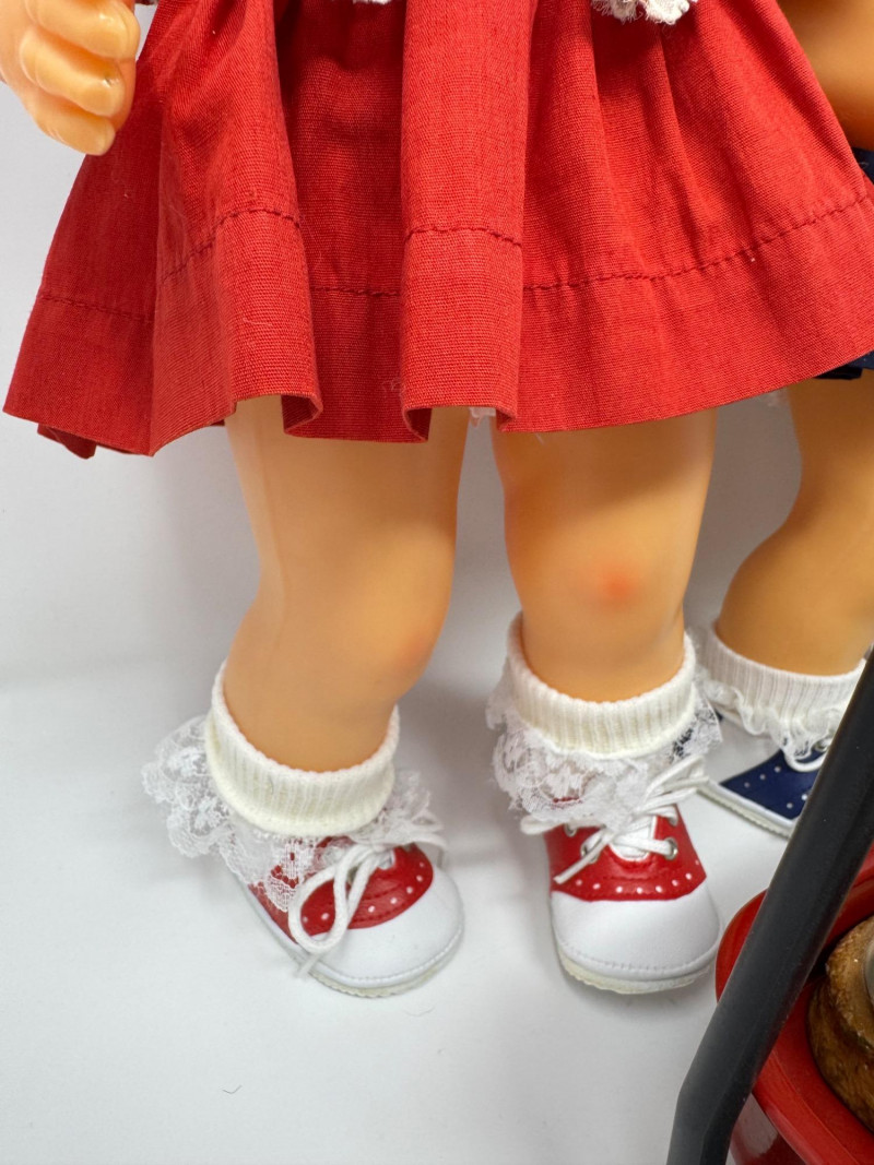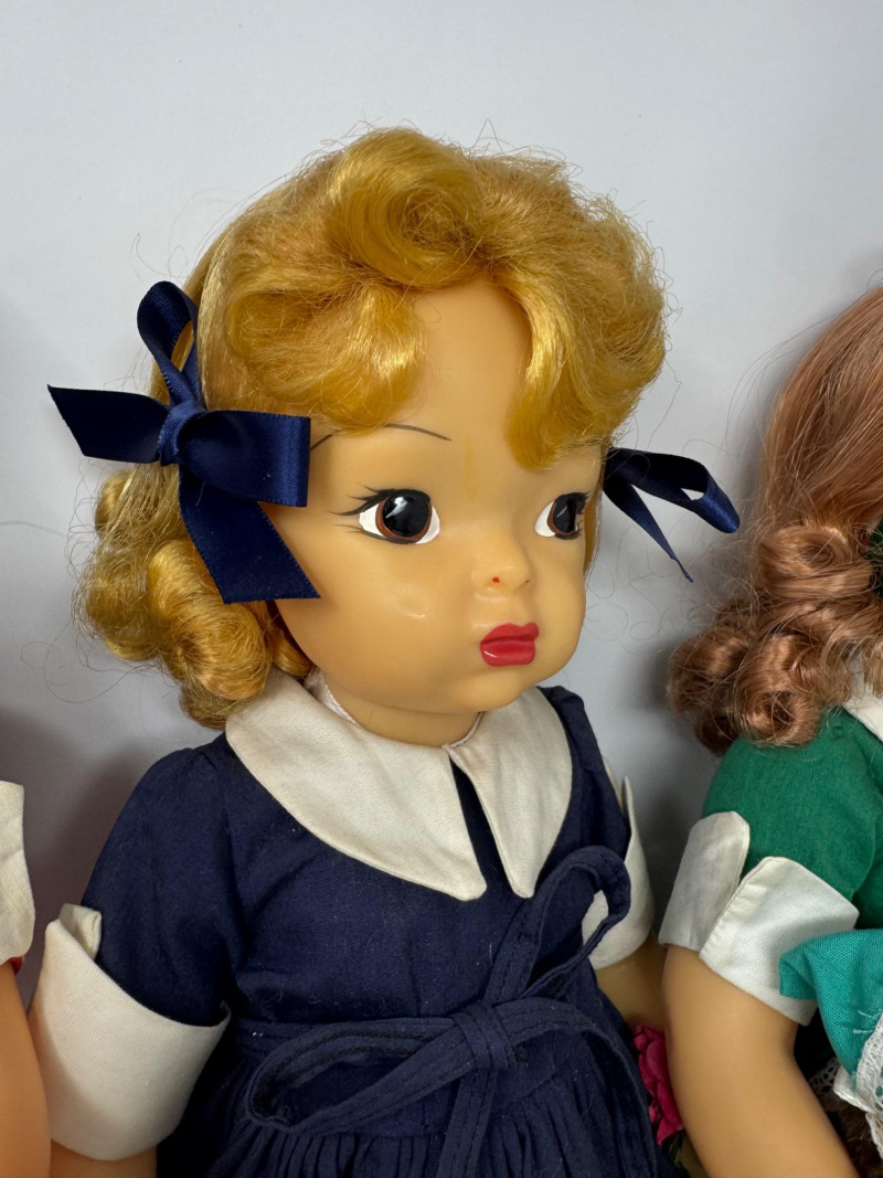 Lot # 9 - Set of 3 16" Terri Lee Dolls w/ Turtle, Wagon & Steiff Monkey