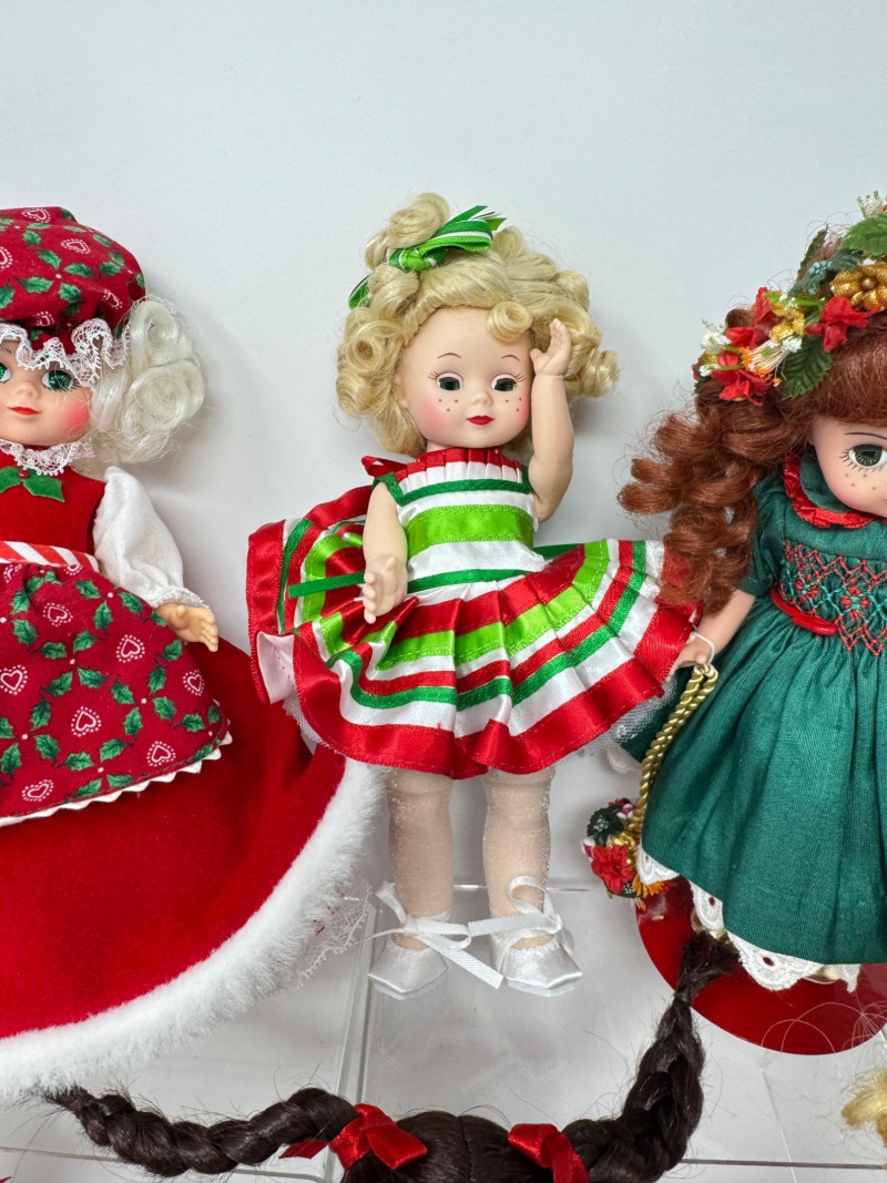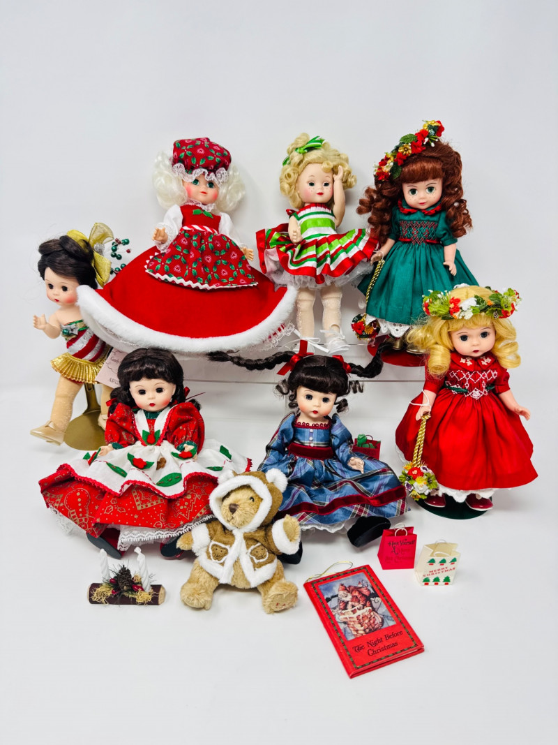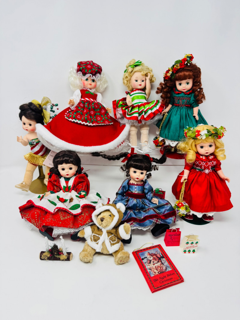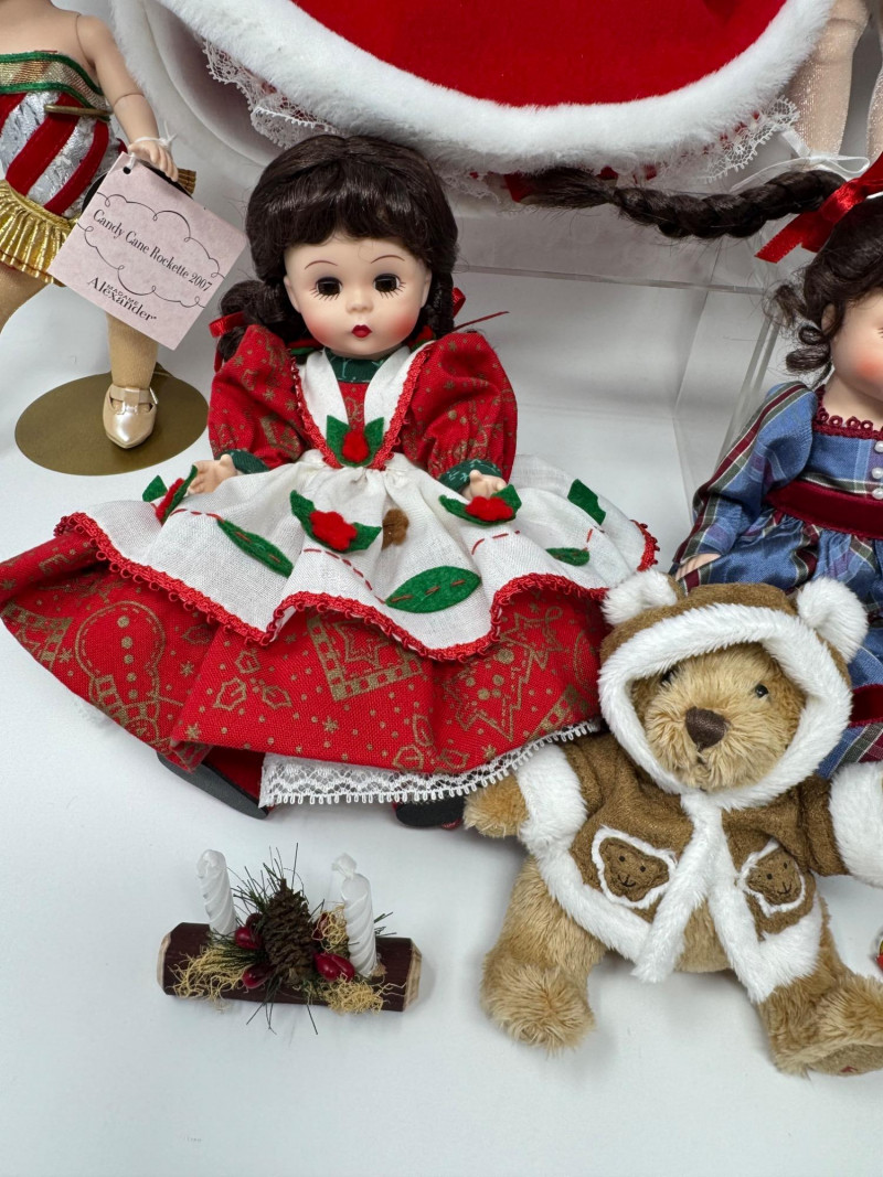 Lot # 33 - Madame Alexander Christmas Dolls & Bear – Santa’s Shelf Squad