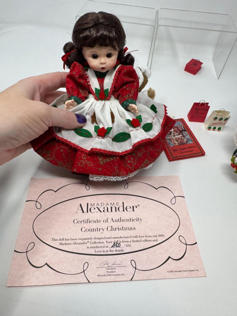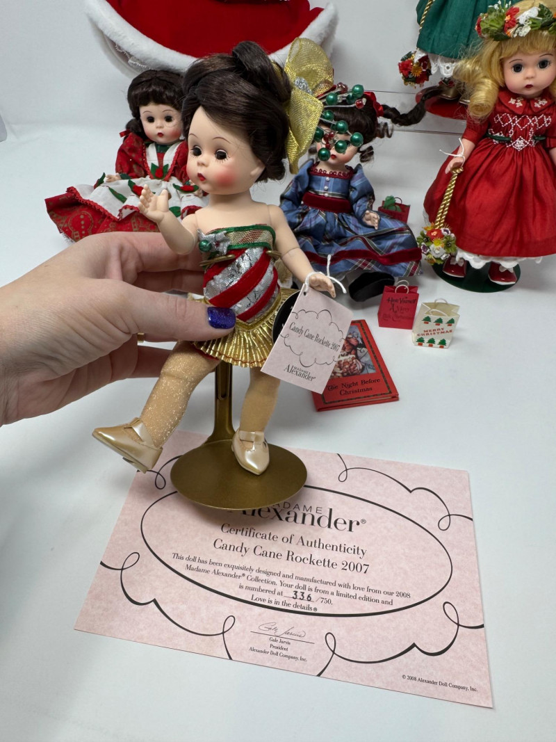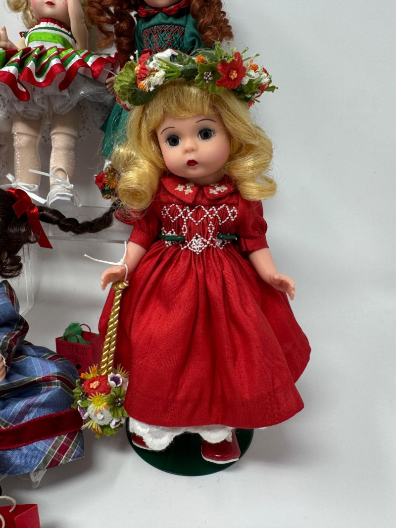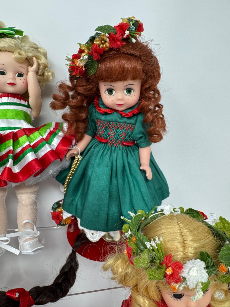 Lot # 33 - Madame Alexander Christmas Dolls & Bear – Santa’s Shelf Squad