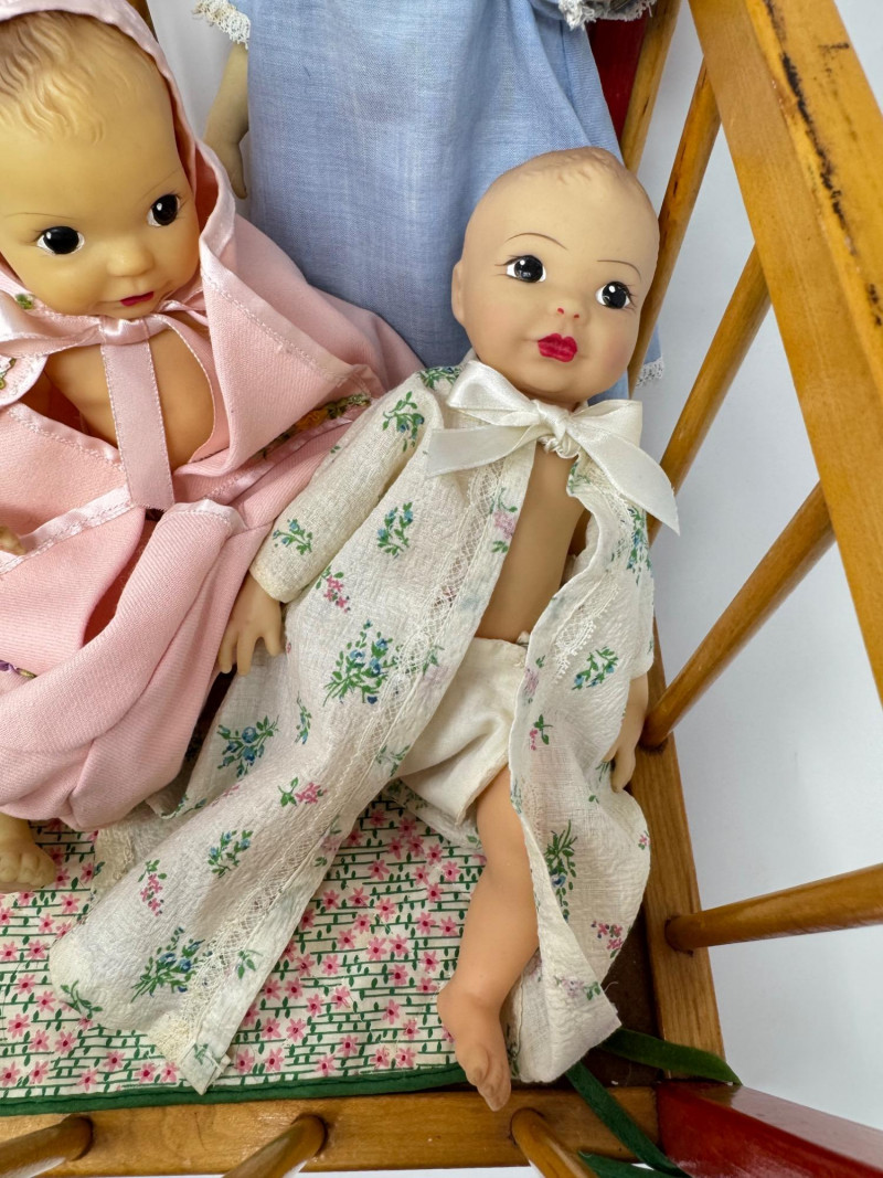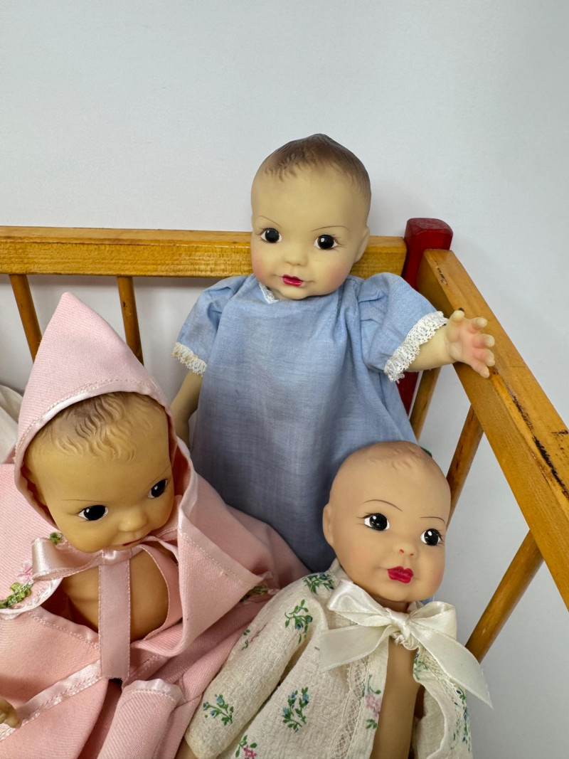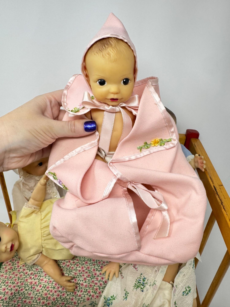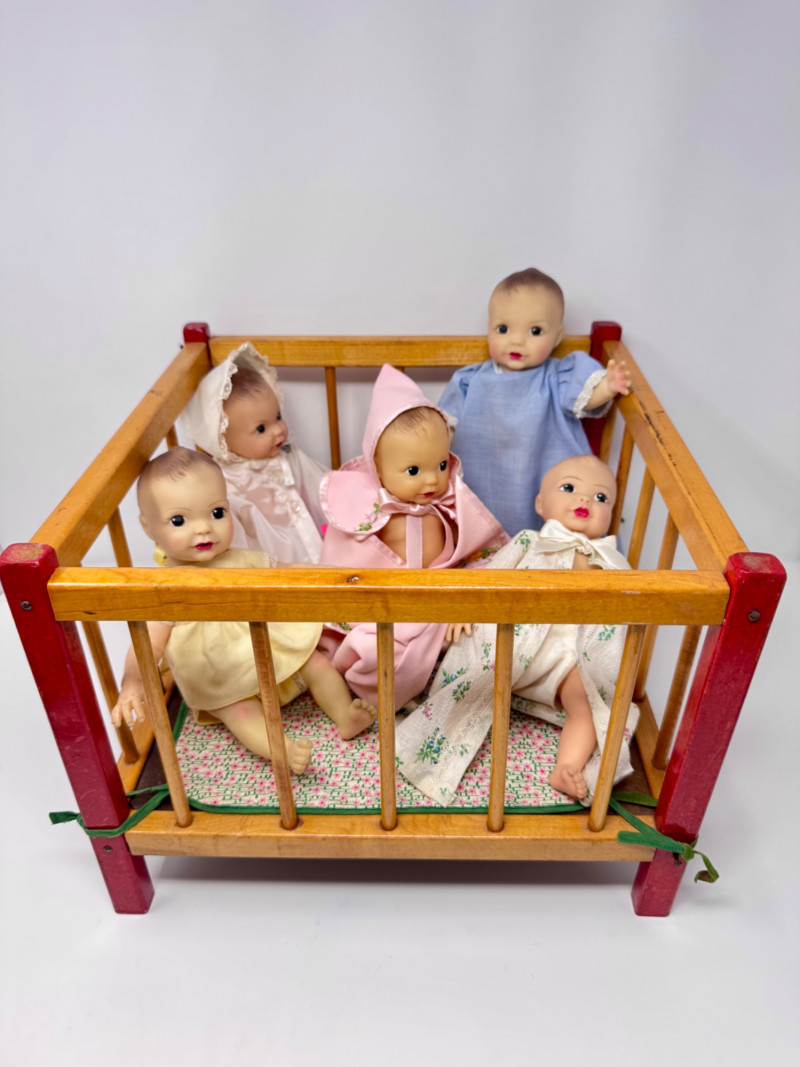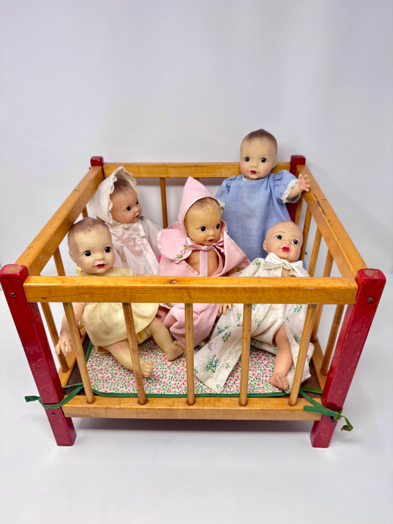 Lot # 39 - Set of 5 Terri Lee Style 9” Baby Dolls in Wooden Crib