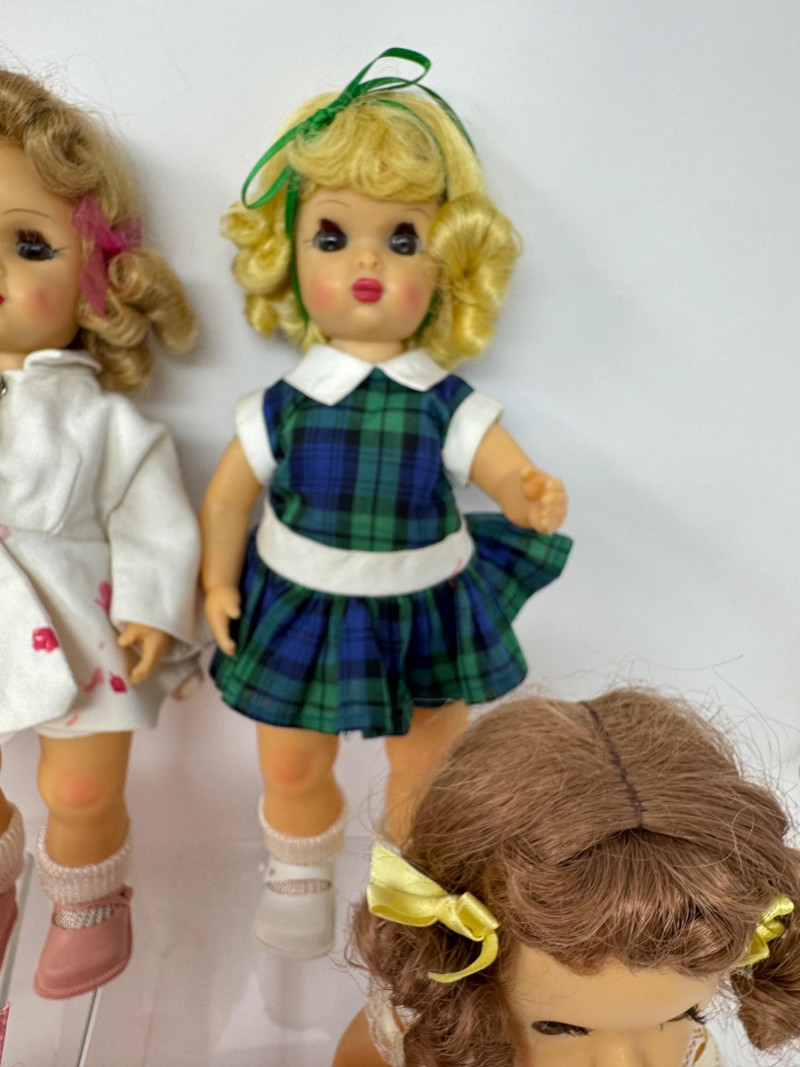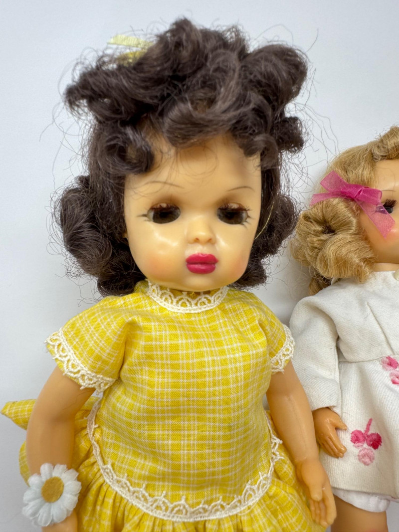 Set of 6 Sleep Eyes Dolls – Yellow, Pink & Plaid Dresses. Sleep eyes—some are more difficult to open and close