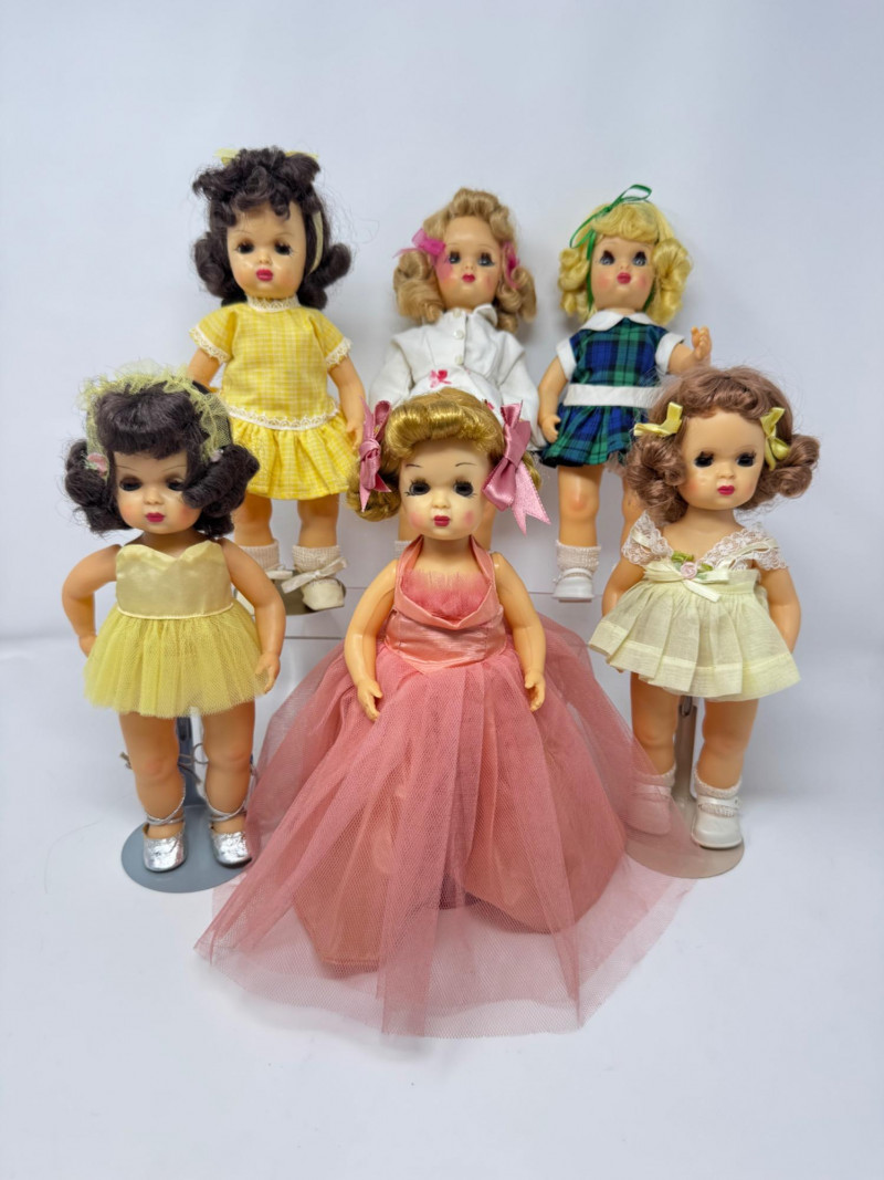 Lot # 41 - Set of 6 Sleep Eyes Dolls – Yellow, Pink & Plaid Dresses