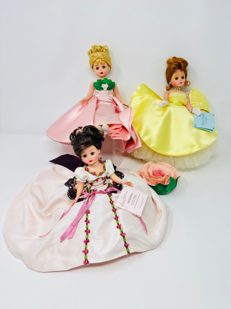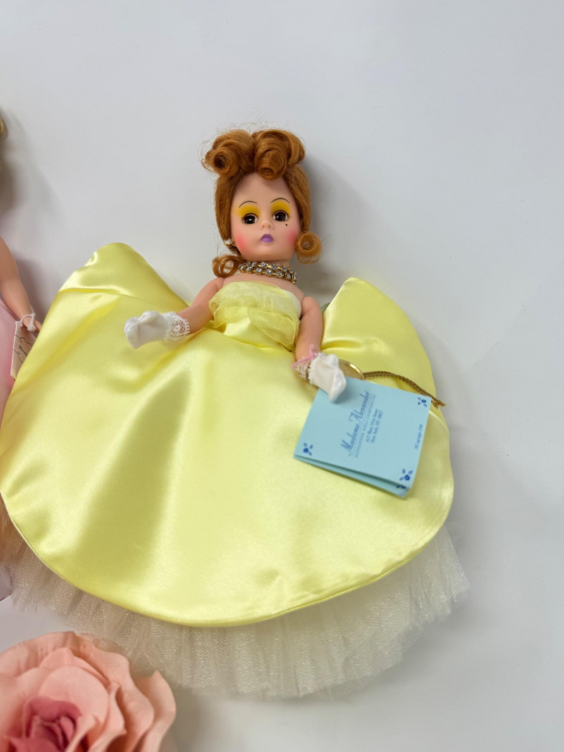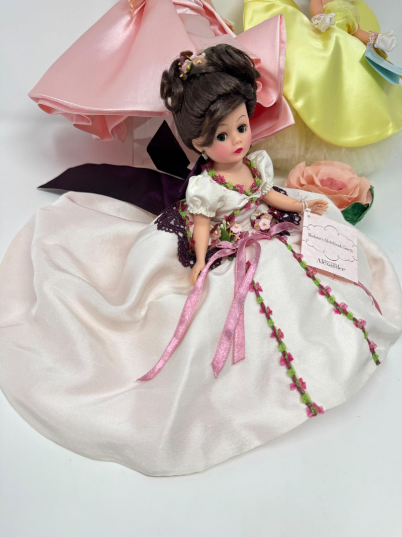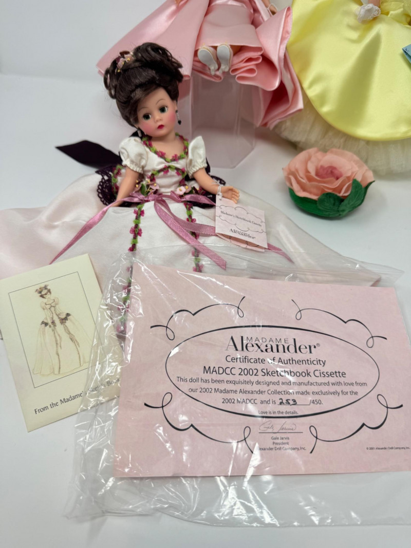 Madame Alexander Cissette Dolls in Elegant Ballgowns. Includes: Madame’s Sketchbook Cissette – Limited Edition Rose Garden Ball Gown – Limited Edition Cissette Gardenia – Classic yellow satin gown