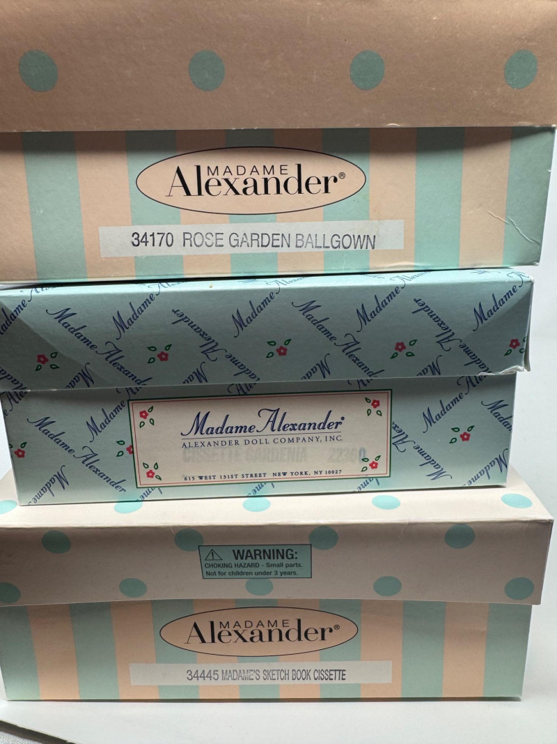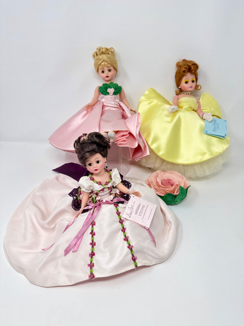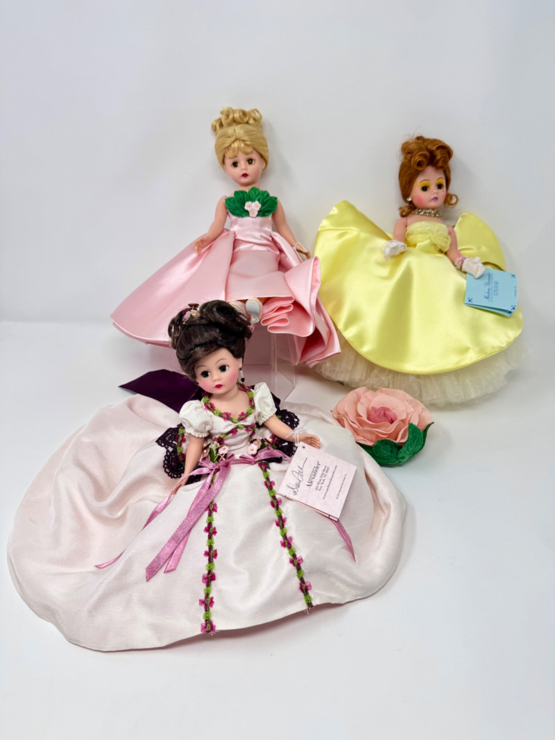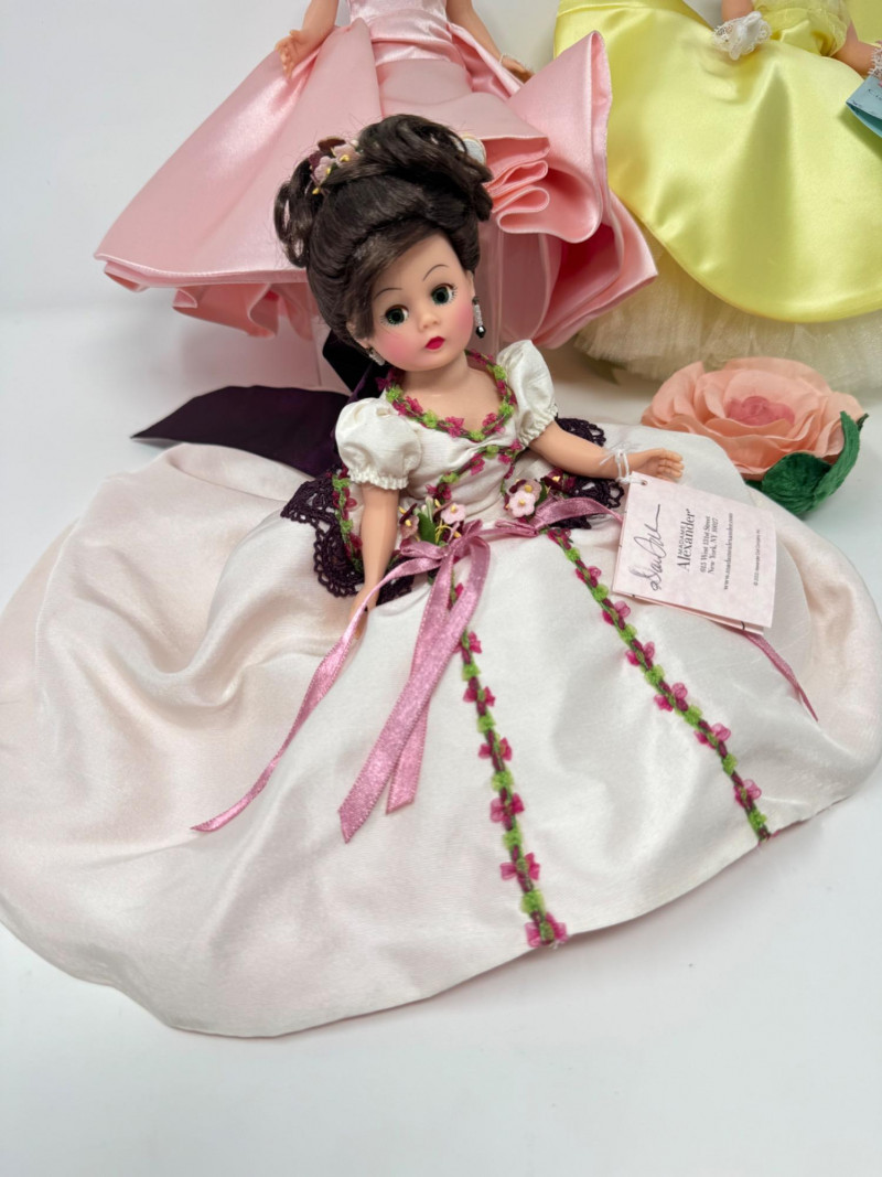 Madame Alexander Cissette Dolls in Elegant Ballgowns. Includes: Madame’s Sketchbook Cissette – Limited Edition Rose Garden Ball Gown – Limited Edition Cissette Gardenia – Classic yellow satin gown