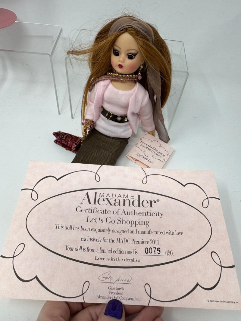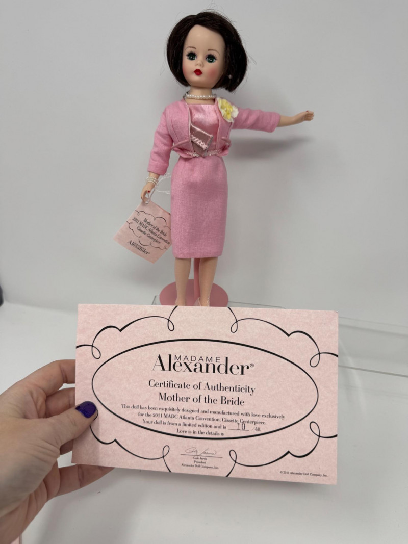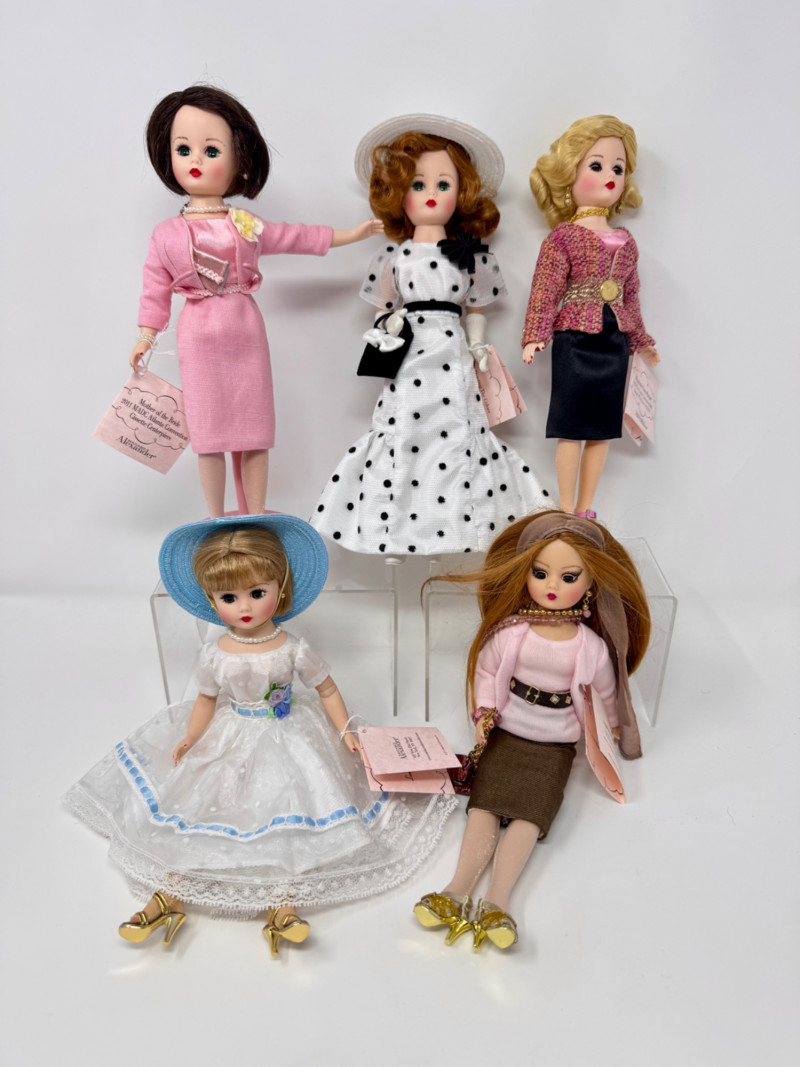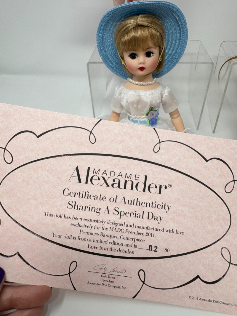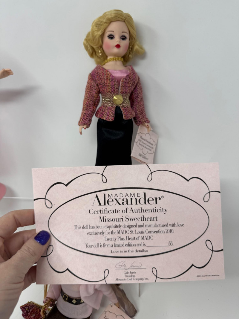 Madame Alexander 10” Dolls – Fashion & Convention w/ Boxes. Includes: Let’s Go Shopping – 2011 MADC Premiere Sharing a Special Day – 2011 MADC Premiere Banquet Centerpiece Mother of the Bride – 2011 MADC Atlanta Convention Painting the Colors – 2012 MADC Premiere Missouri Sweetheart – 2010 MADC St. Louis Convention