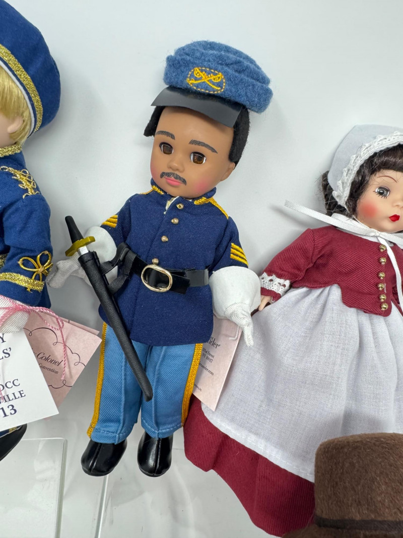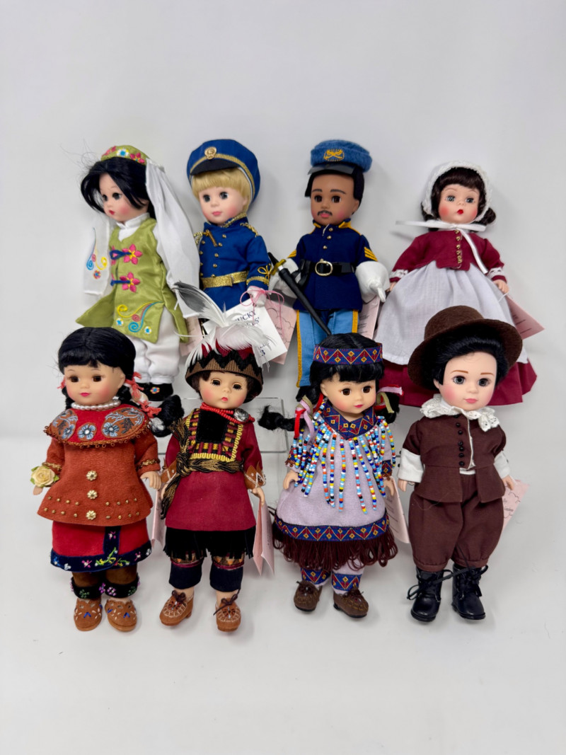 Madame Alexander 8” Dolls – Cultural & Historical Set of 8. Collection of Madame Alexander dolls, all with original boxes except Kentucky Colonel Limited-edition and MADC convention exclusives from 2009–2013 Pilgrim Boy – 2010 MADC Fall Friendship Luncheon Mei – 2009 MADC Fall Friendship Luncheon Companion Doll Wenona – 2010 MADC Fall Friendship Luncheon Iroquois Maid, Legend of the No Face Doll – 2009 MADC Convention Special Seneca Brave – 2009 MADC Convention Souvenir Buffalo Soldier – 2012 MADC Albuquerque Convention