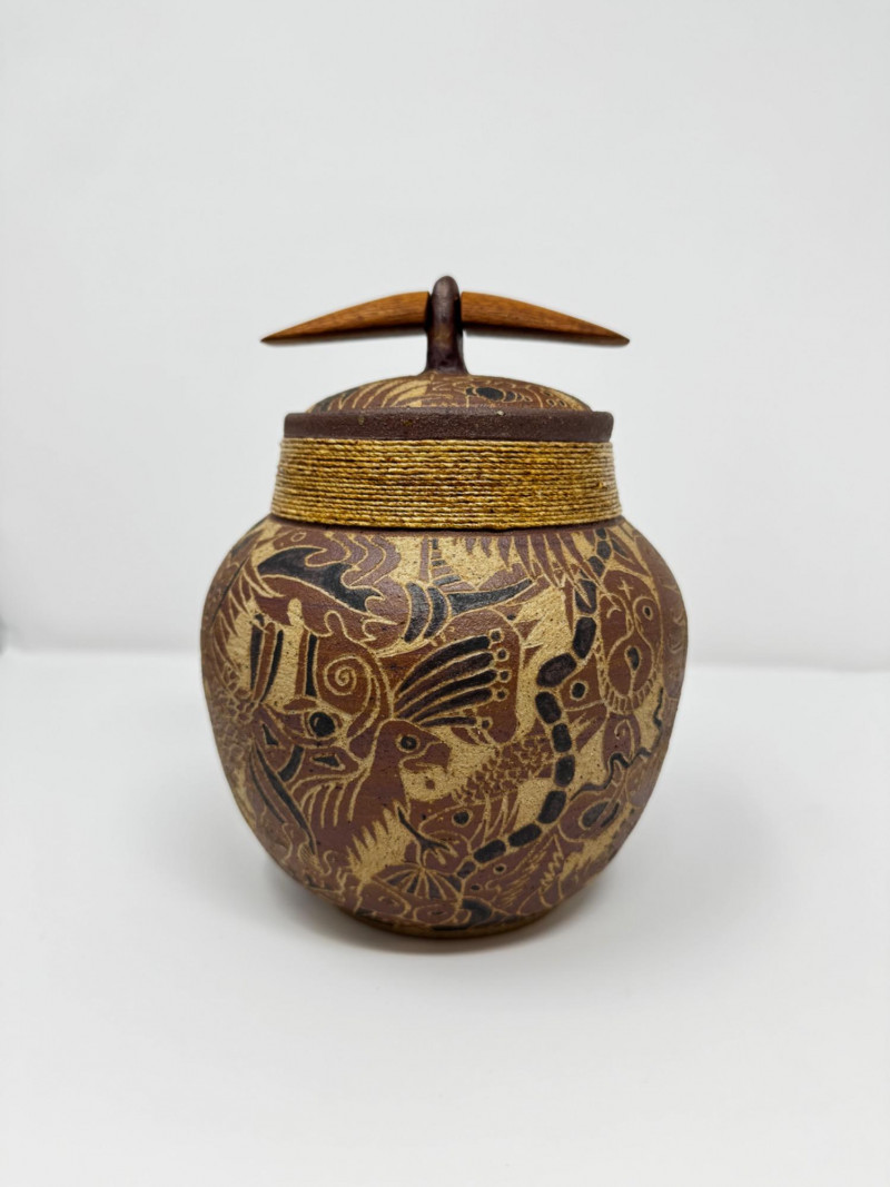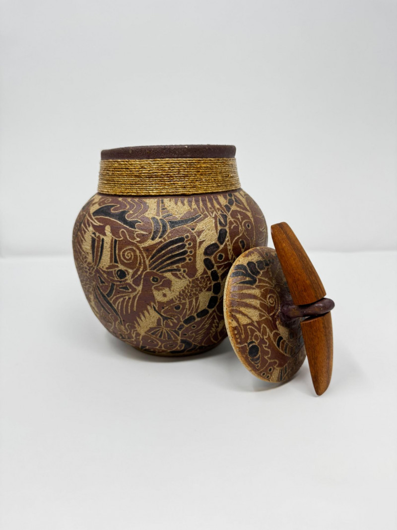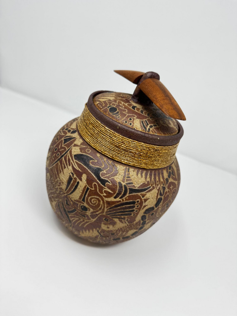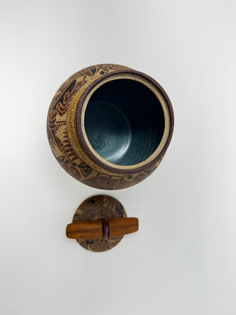 Lot # 14 - Larry Richmond 2007 Signed Ceramic Jar w/ Wooden Lid