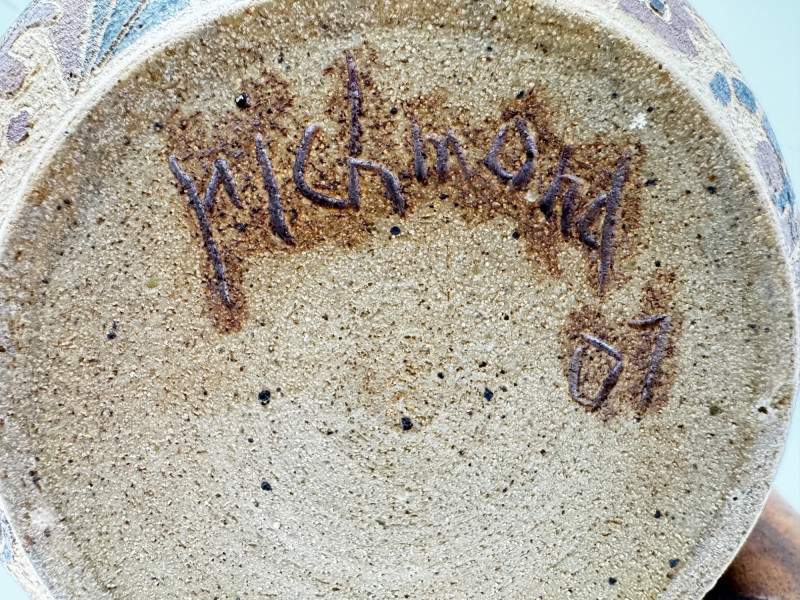 Larry Richmond 2007 Signed Ceramic Jar w/ Wooden Lid.