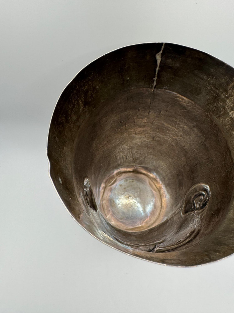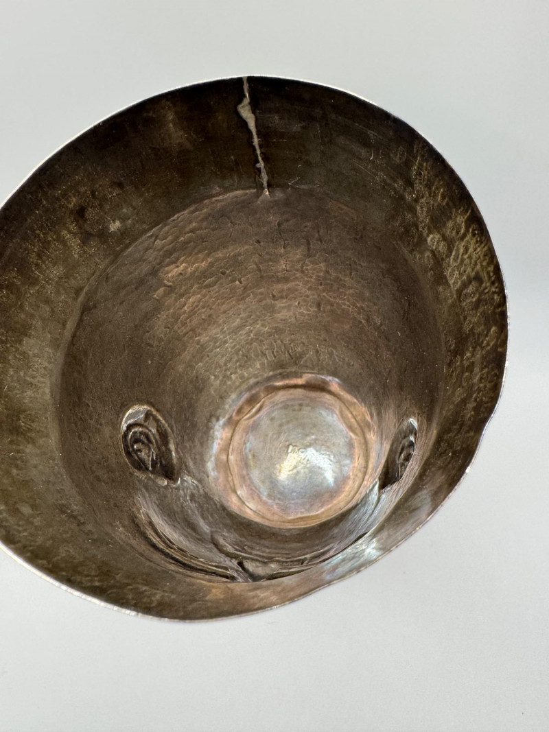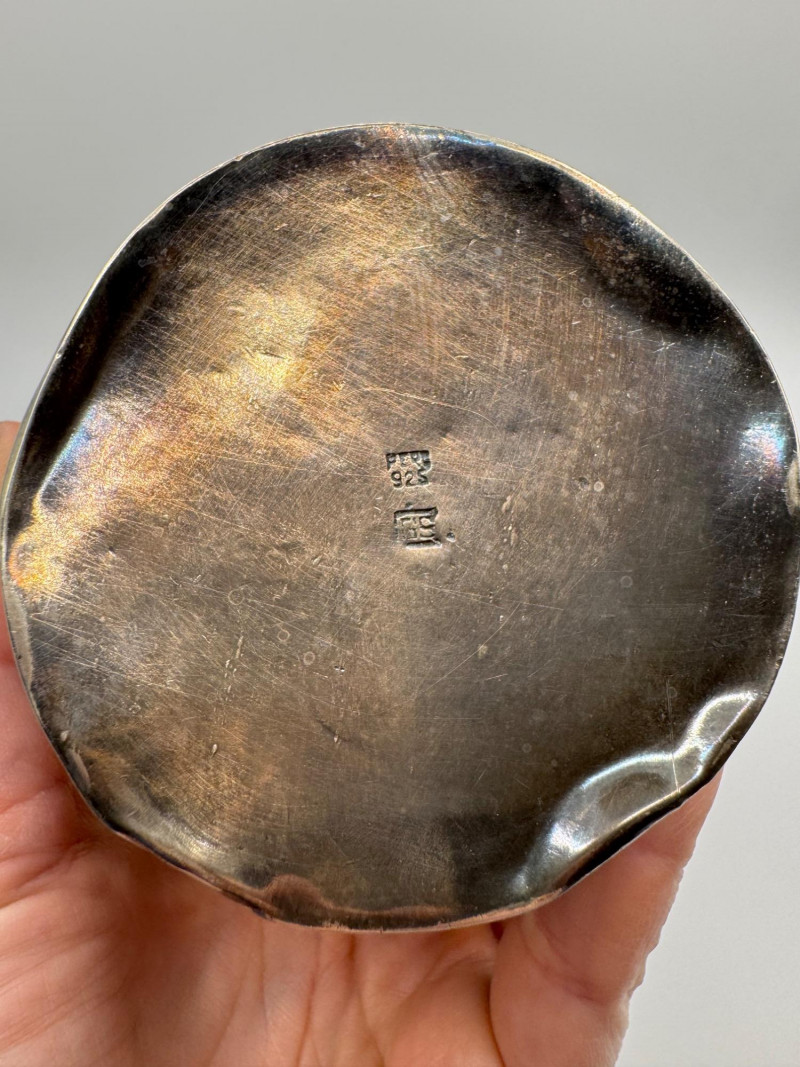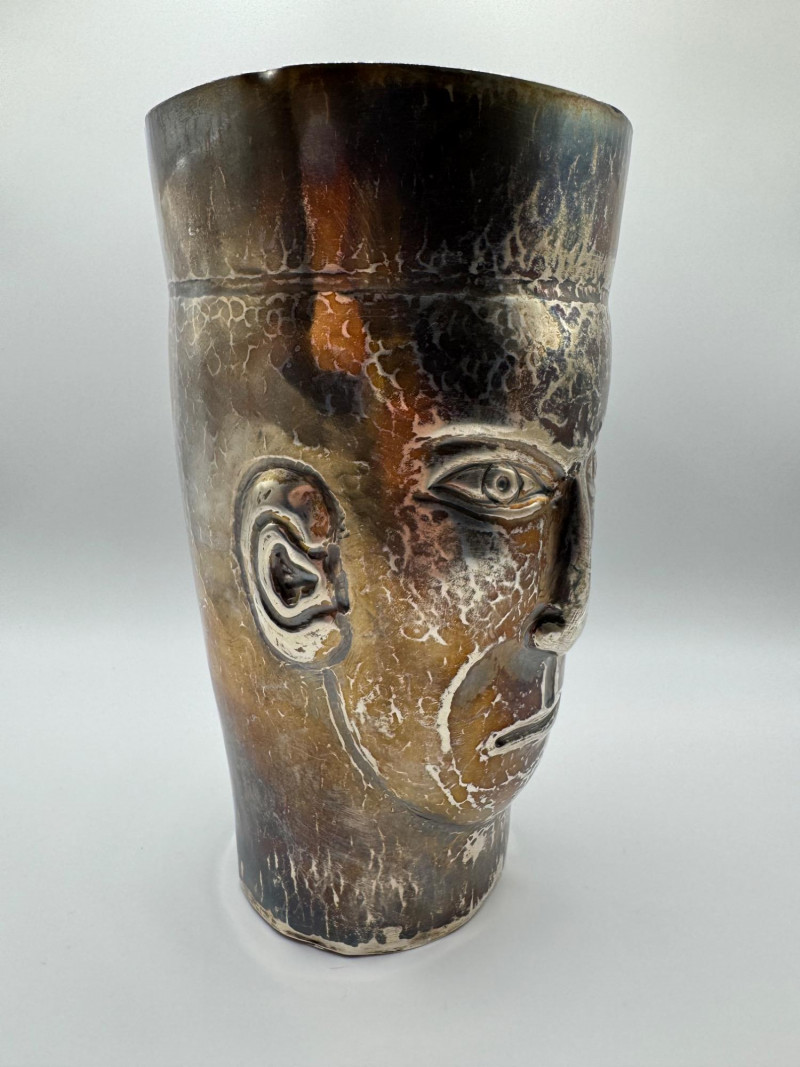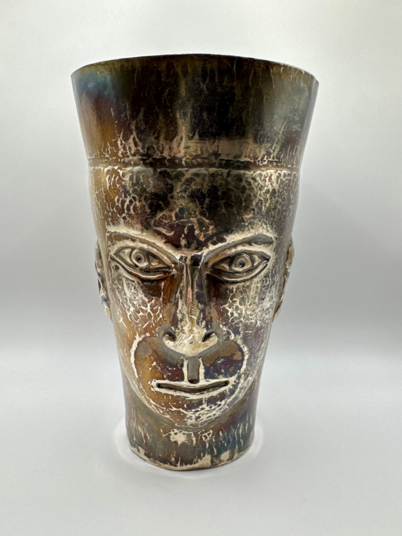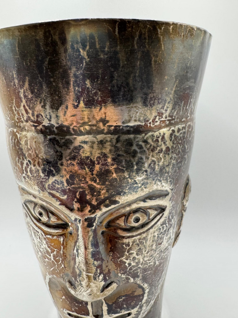 Peruvian .925 Sterling Silver Face Vase – 264g. Disclaimer: Sterling and other metals are not tested. Items are sold as is with no guarantees on metal content or purity. No refunds based on metal quality.