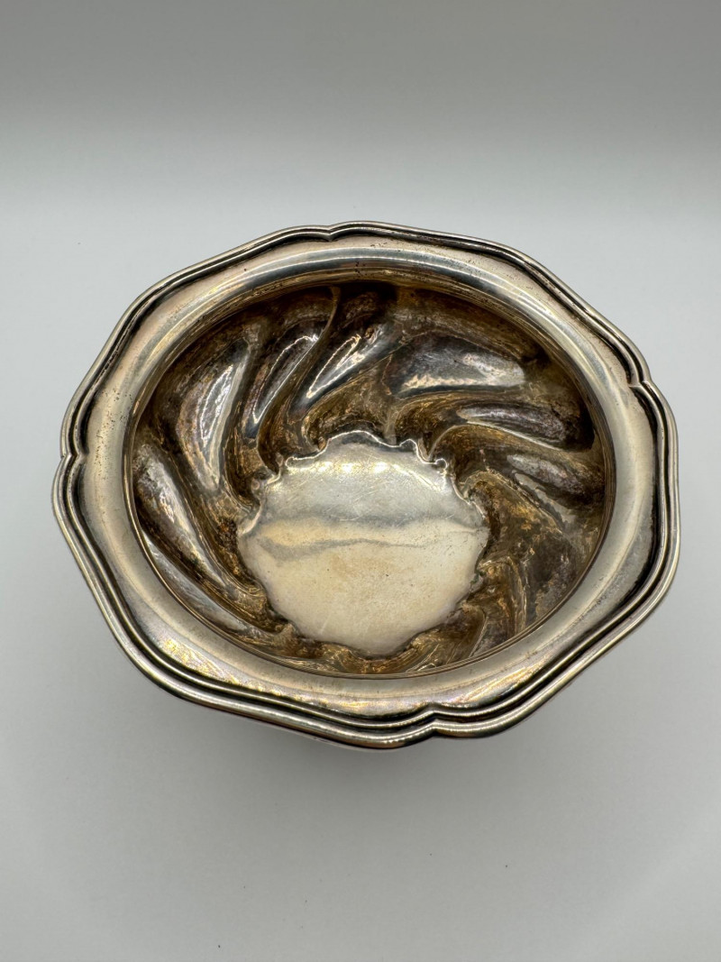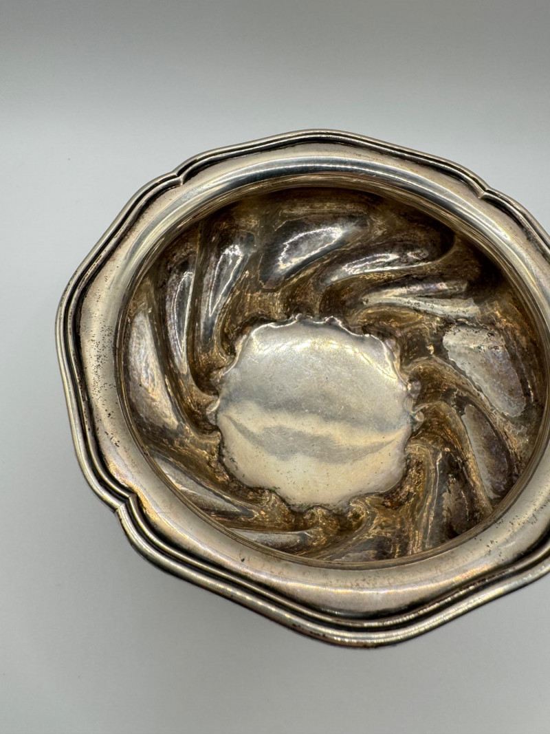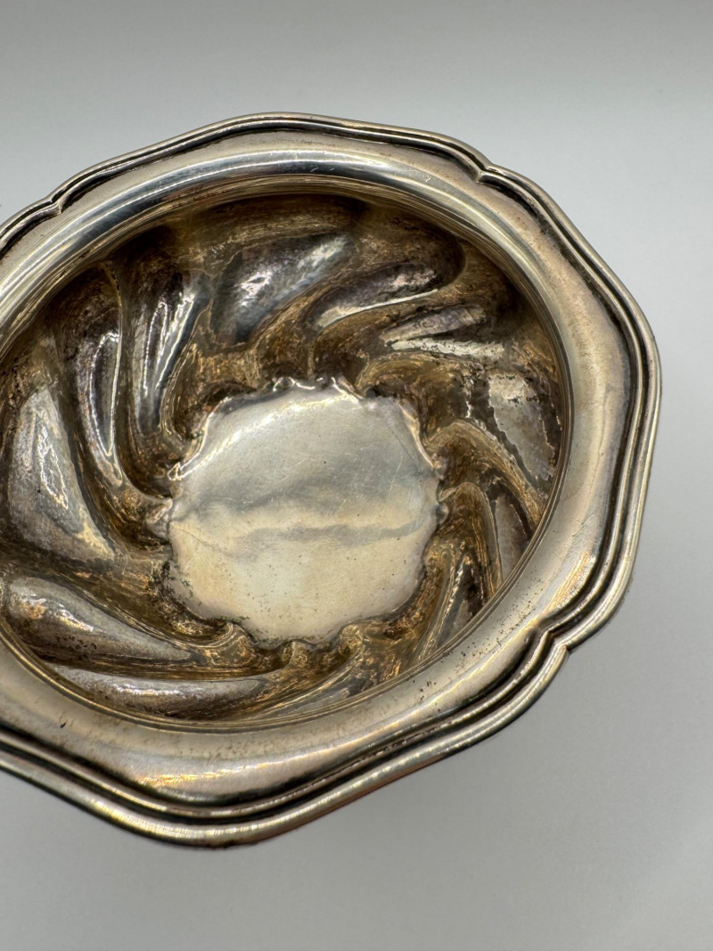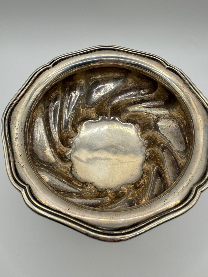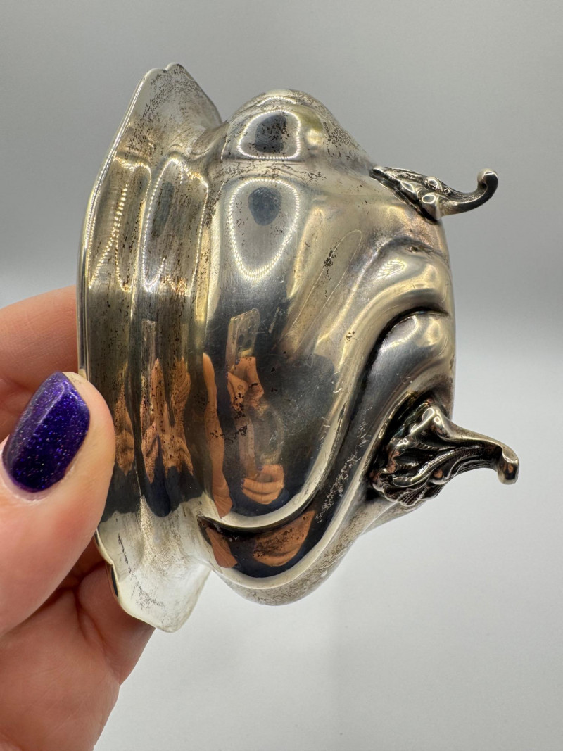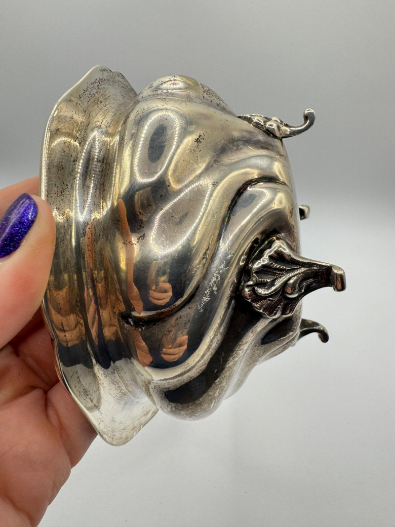 Antique Arndt 800 Silver Footed Bowl – Ornate Tripod Design, 190g. Disclaimer: Sterling and other metals are not tested. Items are sold as is with no guarantees on metal content or purity. No refunds based on metal quality.