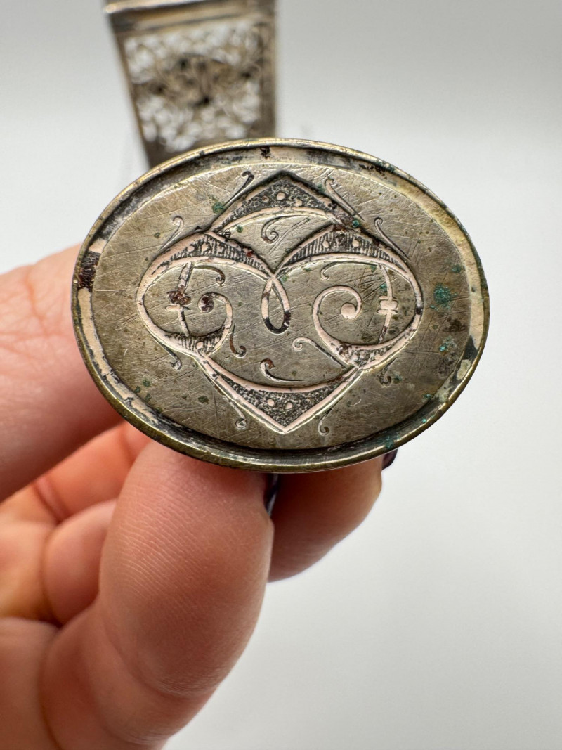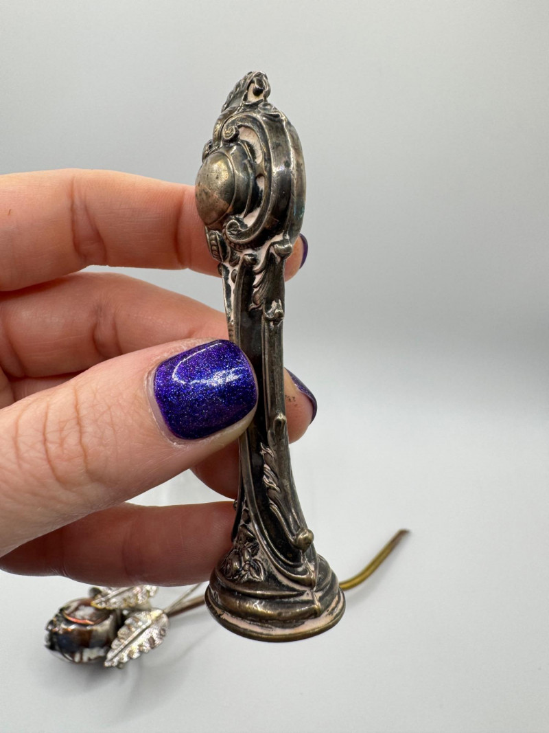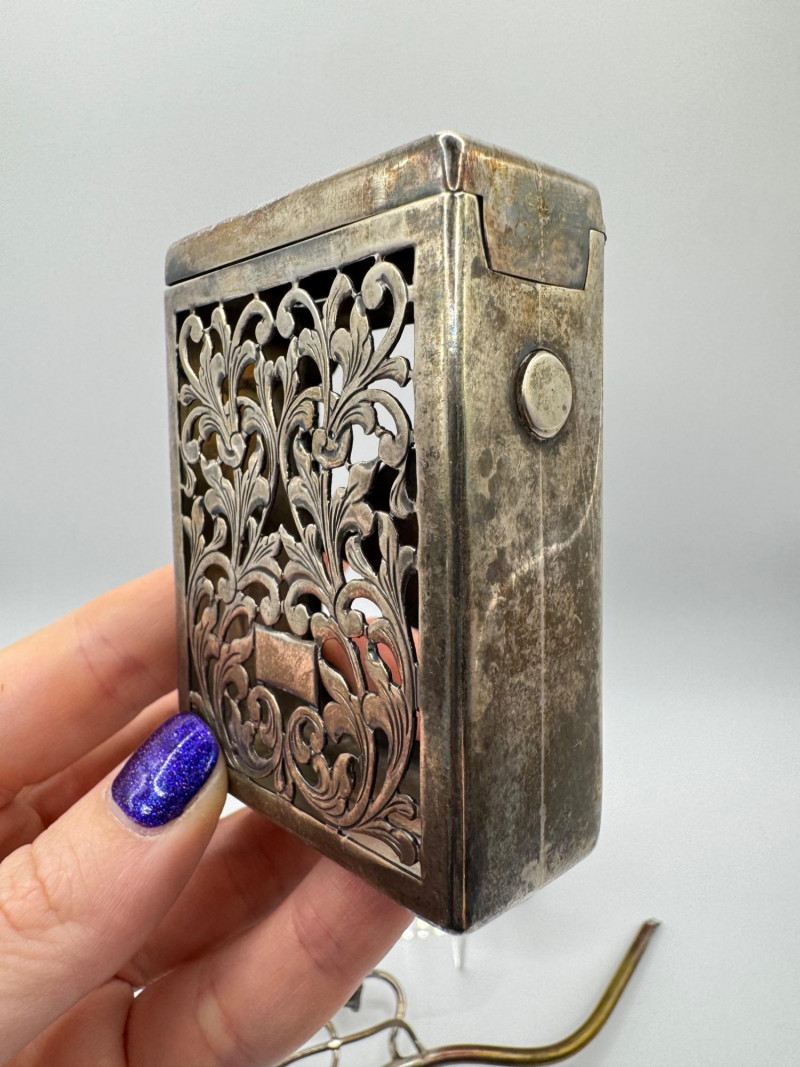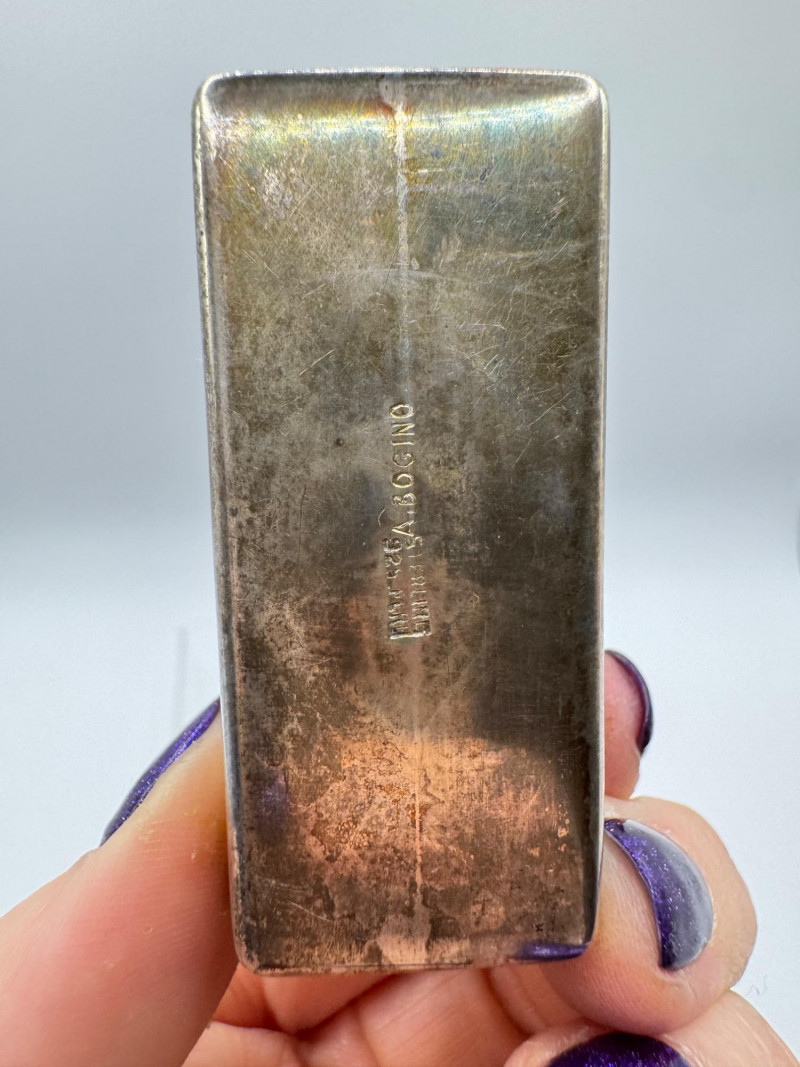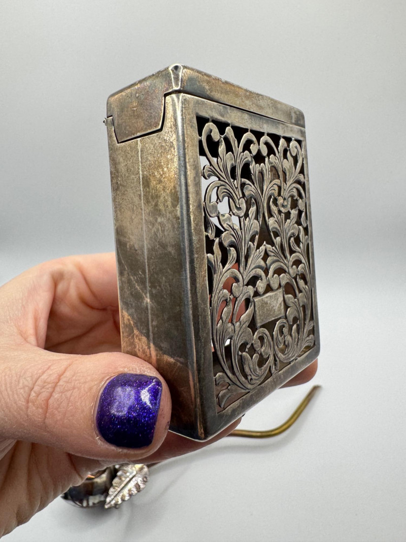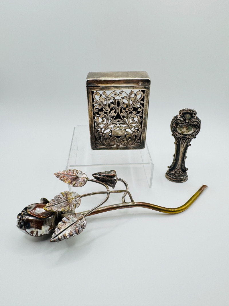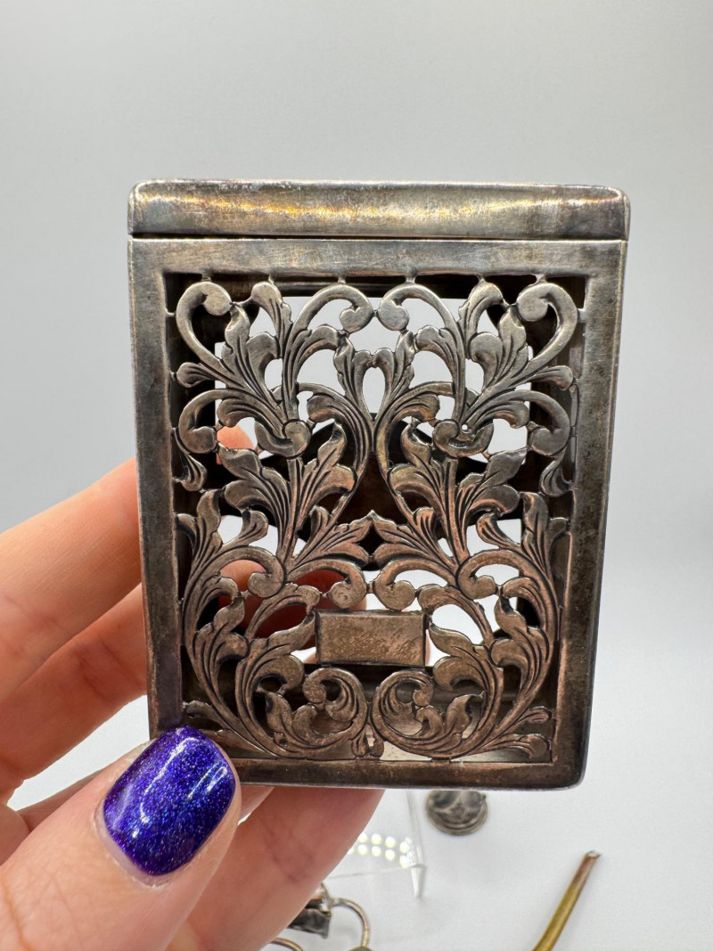Antique Mixed Silver Lot – 800 Wax Seal, Sterling Cigarette Case 88.6g. Disclaimer: Sterling and other metals are not tested. Items are sold as is with o guarantees on metal content or purity. No refunds based on metal quality.