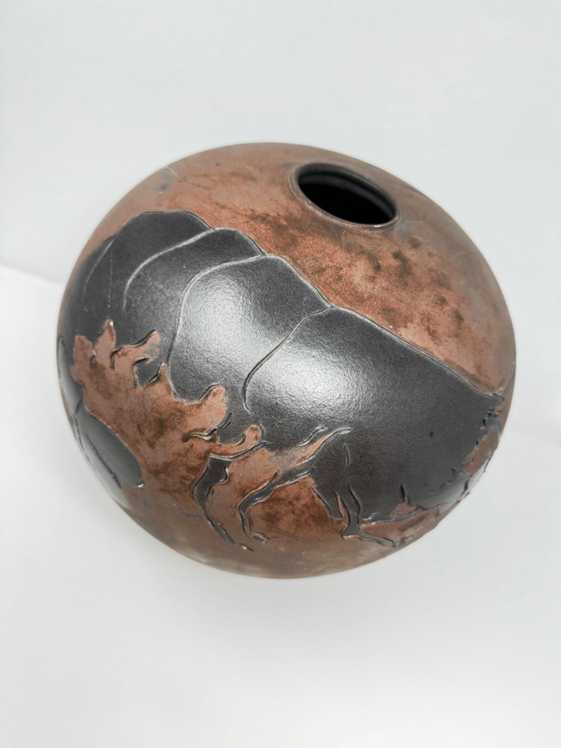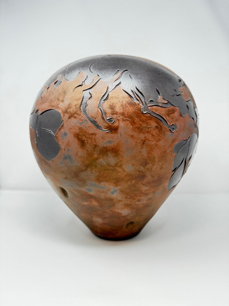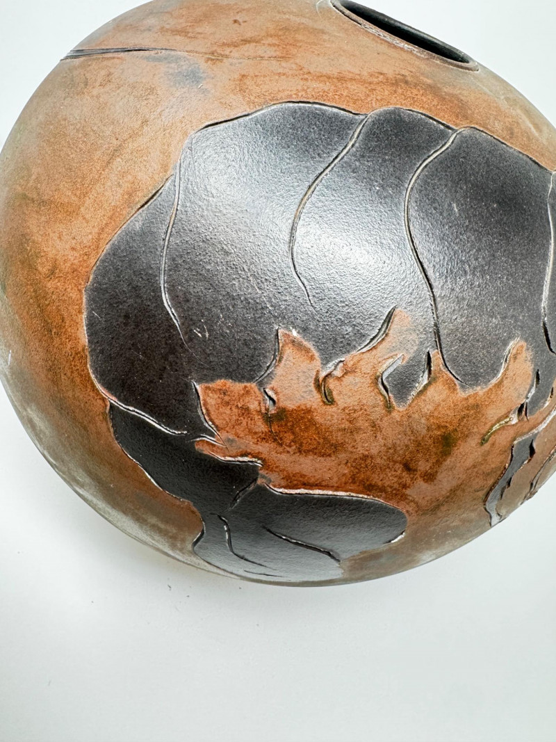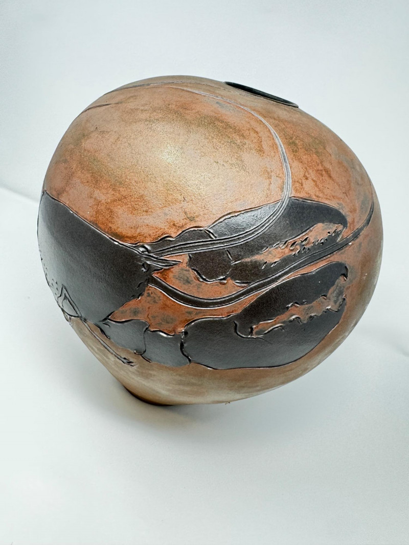 Lot # 38 - Frank Boyden Raku-Style Vase w/ Carved Crustacean Design, Est. $500+