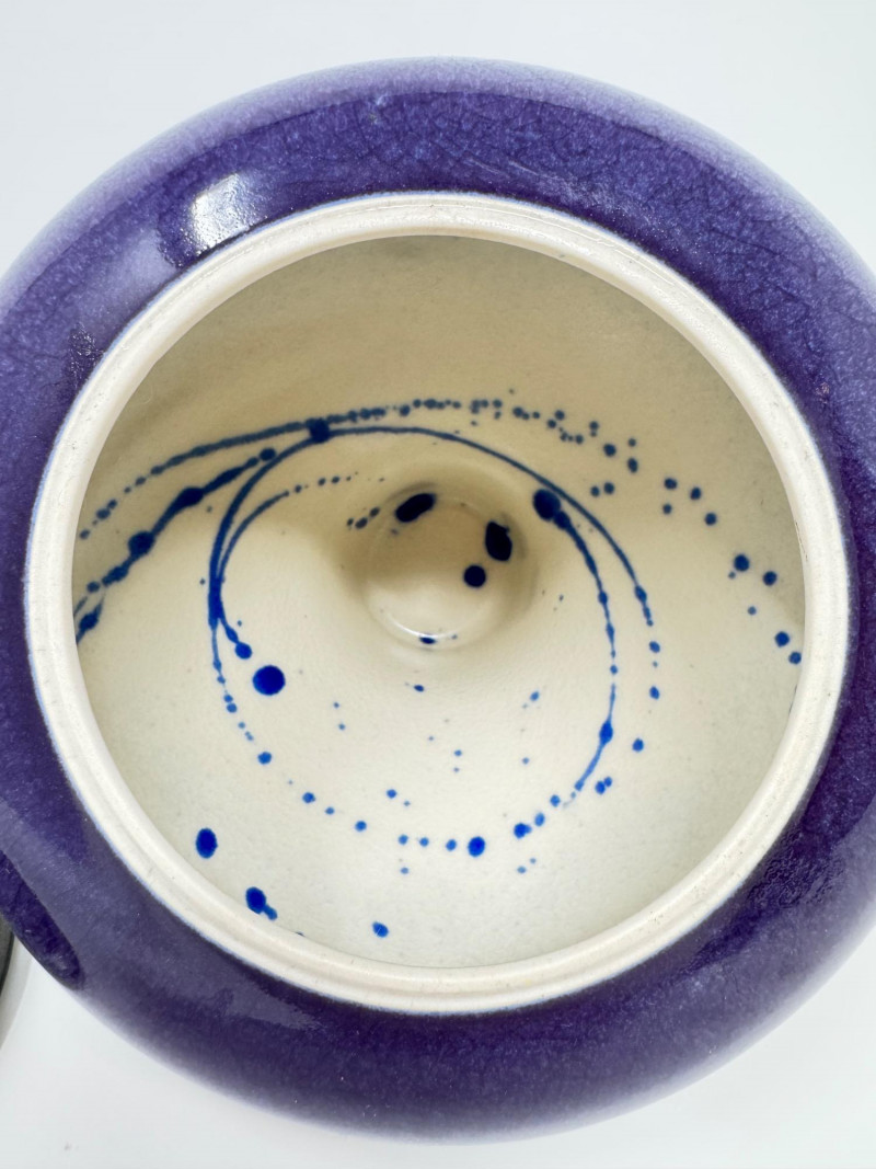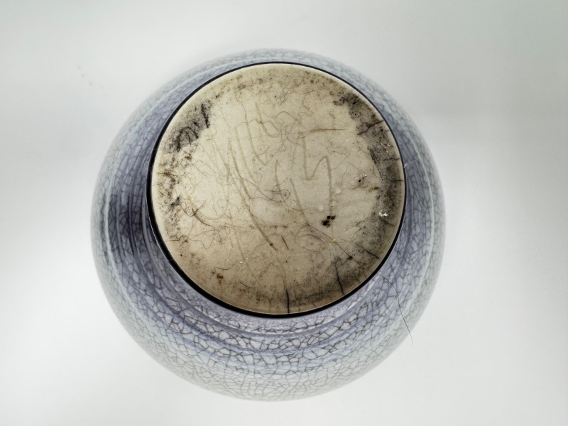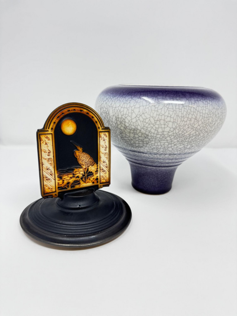 Lot # 53 - Handmade Crackle Glaze Pottery Vessel w/ Heron Lid