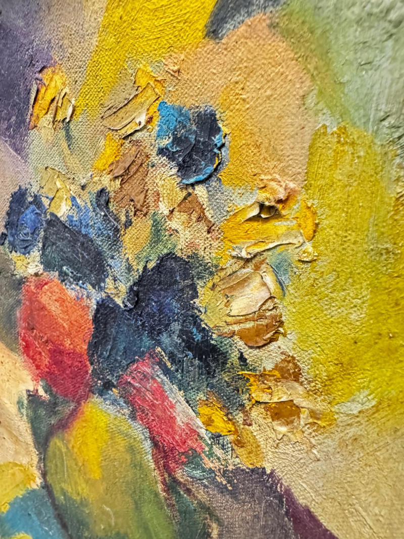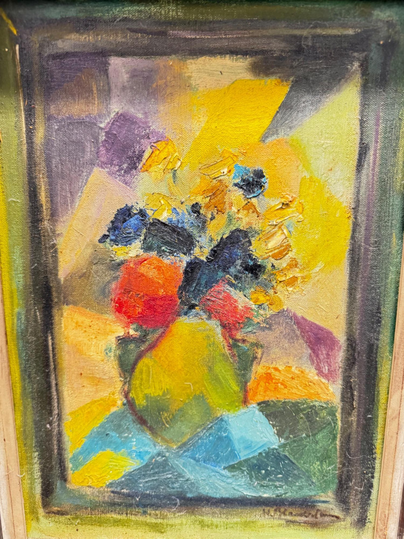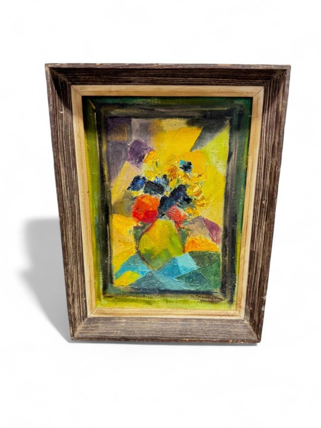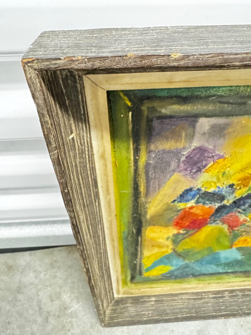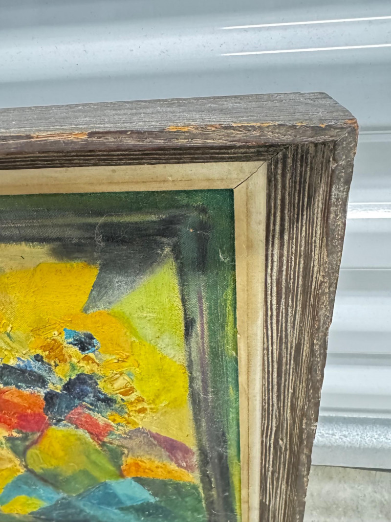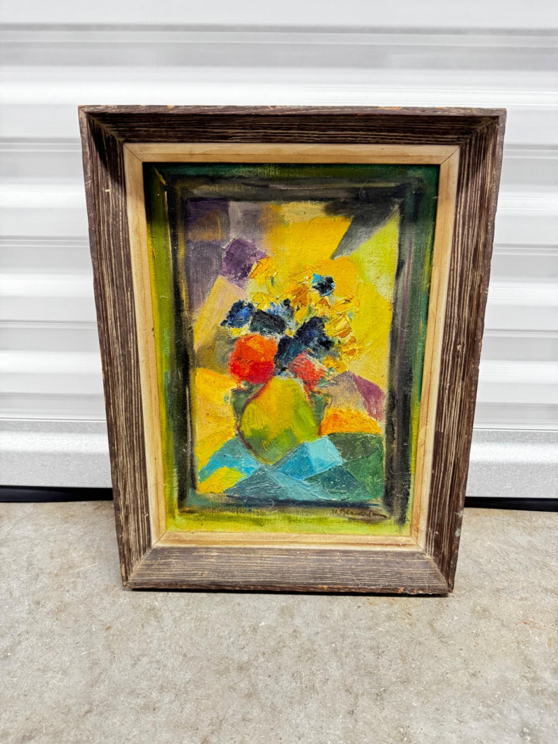 Signed Abstract Floral Acrylic Painting on Canvas – Framed.