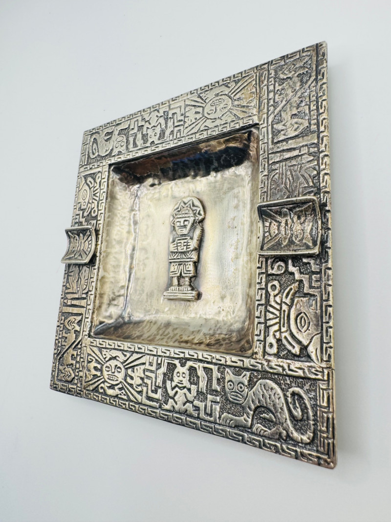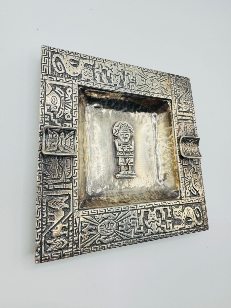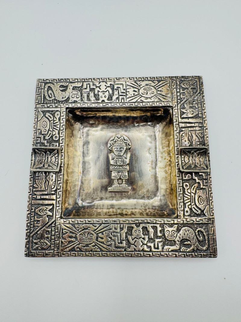 Lot # 66 - Peruvian 925 Silver Ashtray w/ Inca Motifs – 153g