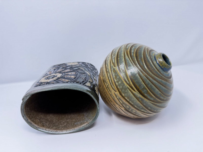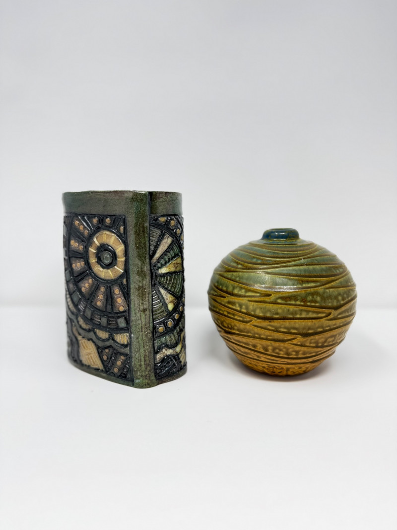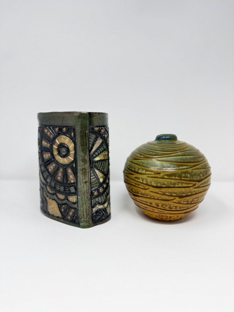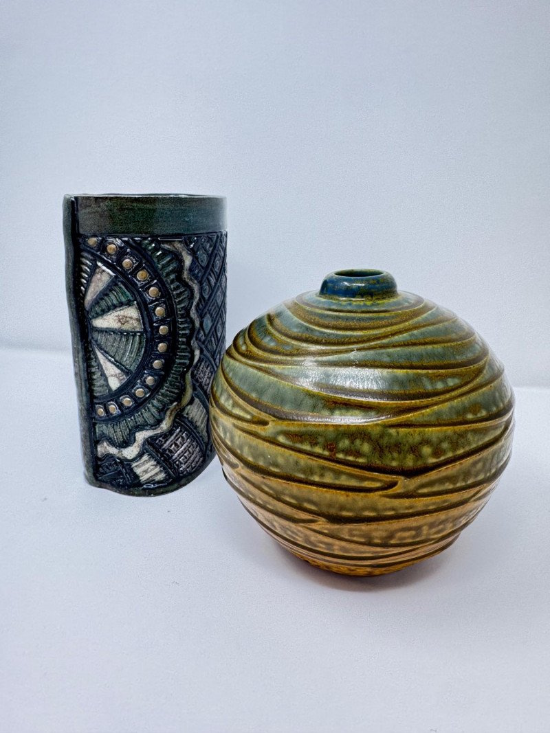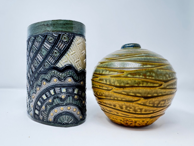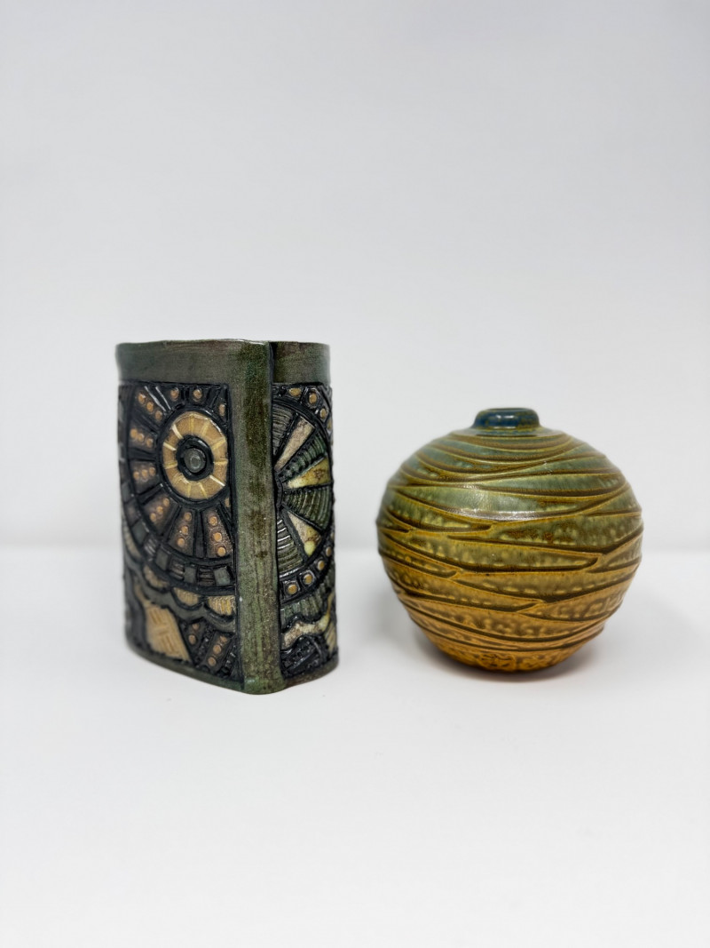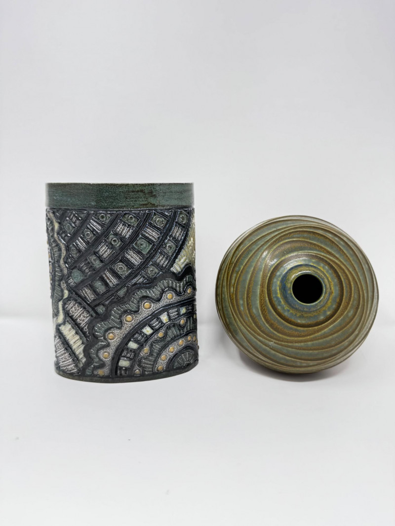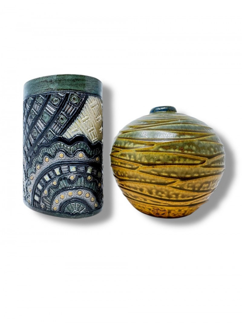 Lot # 67 - Insomnia Pottery Vase by Ginger Steele & Signed Round Vase