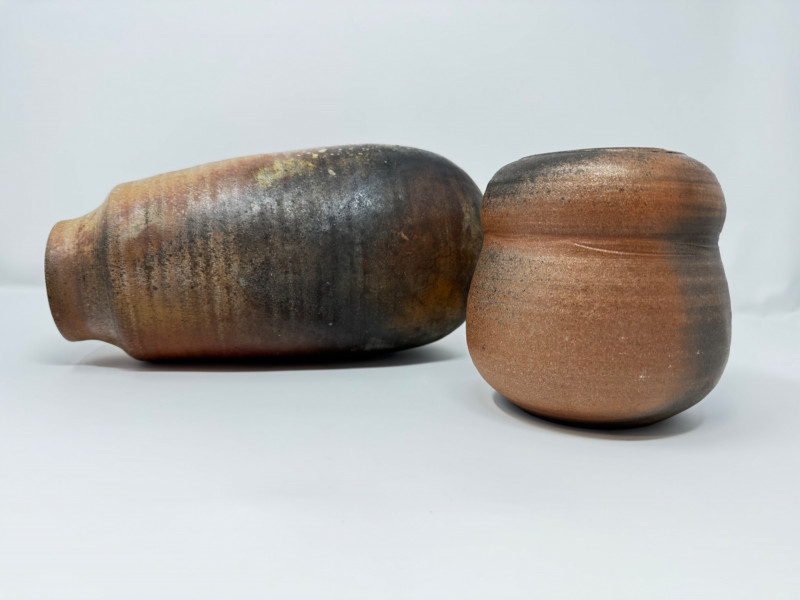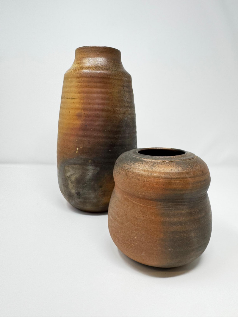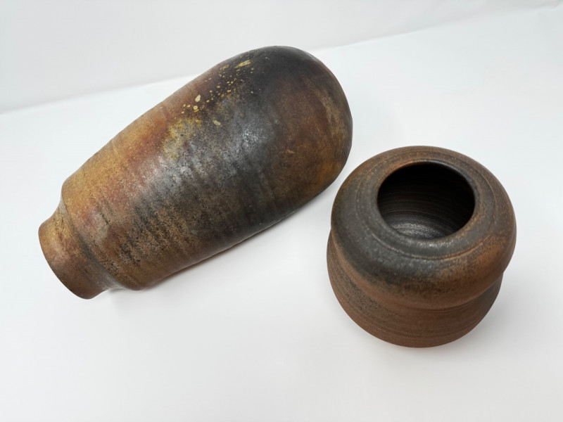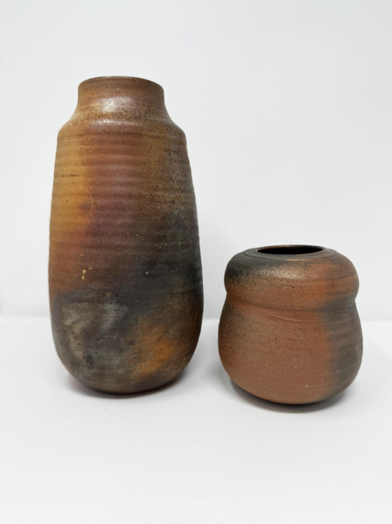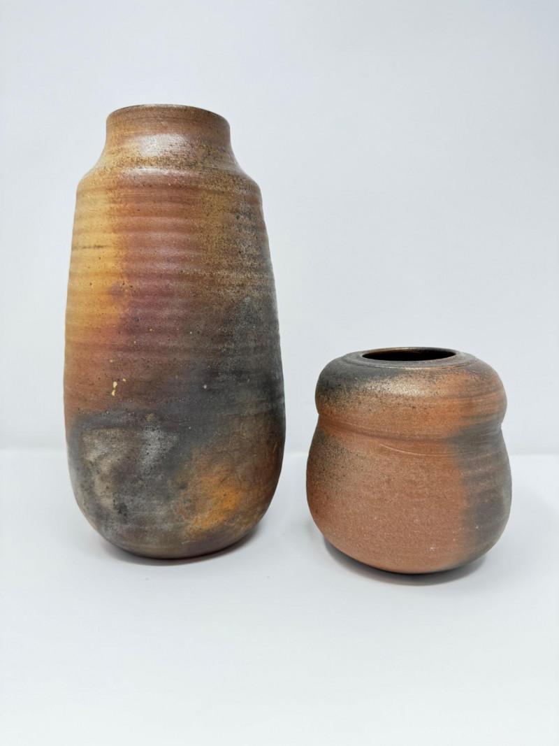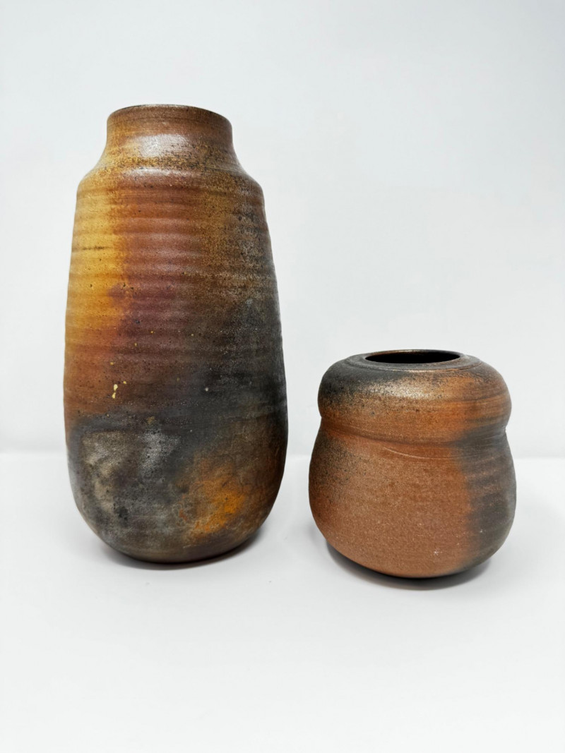 Pair of Signed Wood-Fired Studio Pottery Vases.
