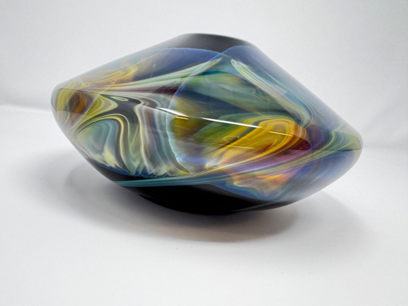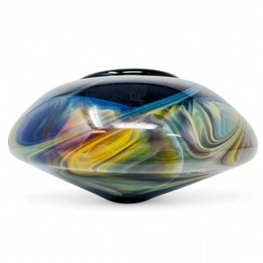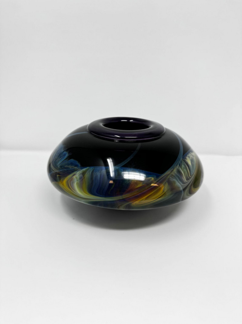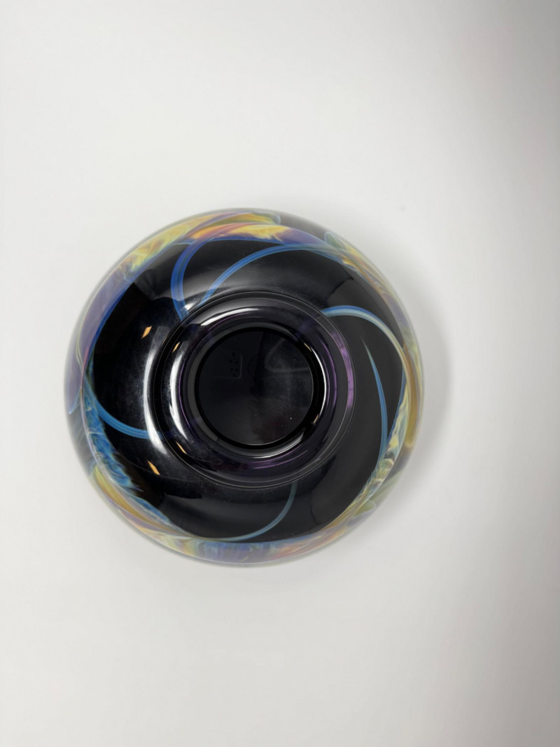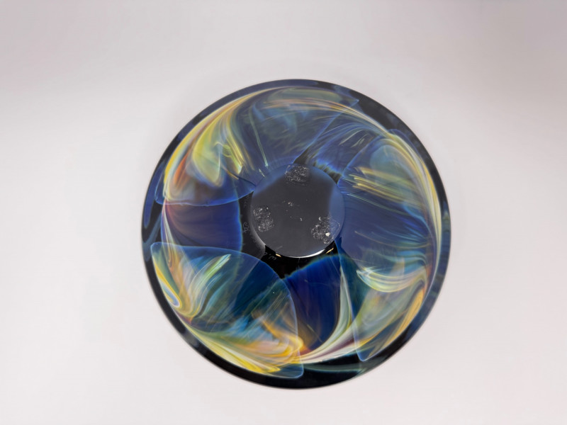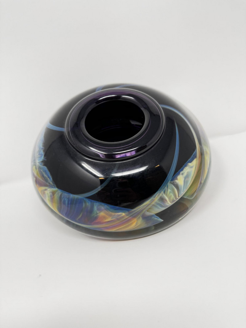 Heavy Art Glass Vase w/ Swirling Iridescent Design.