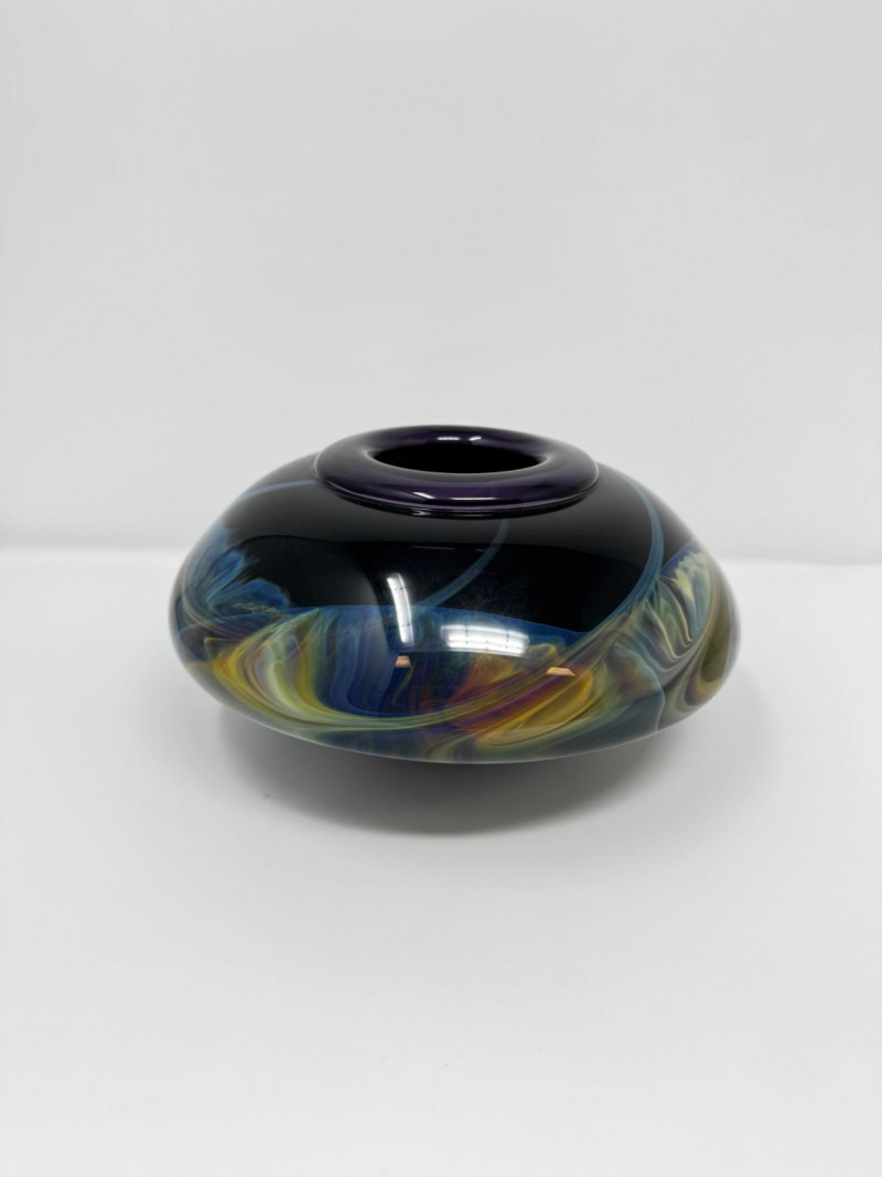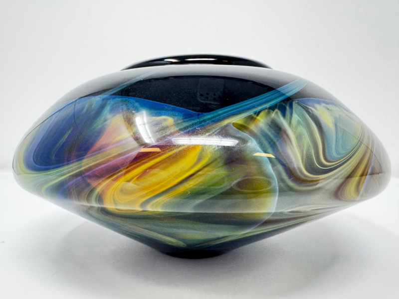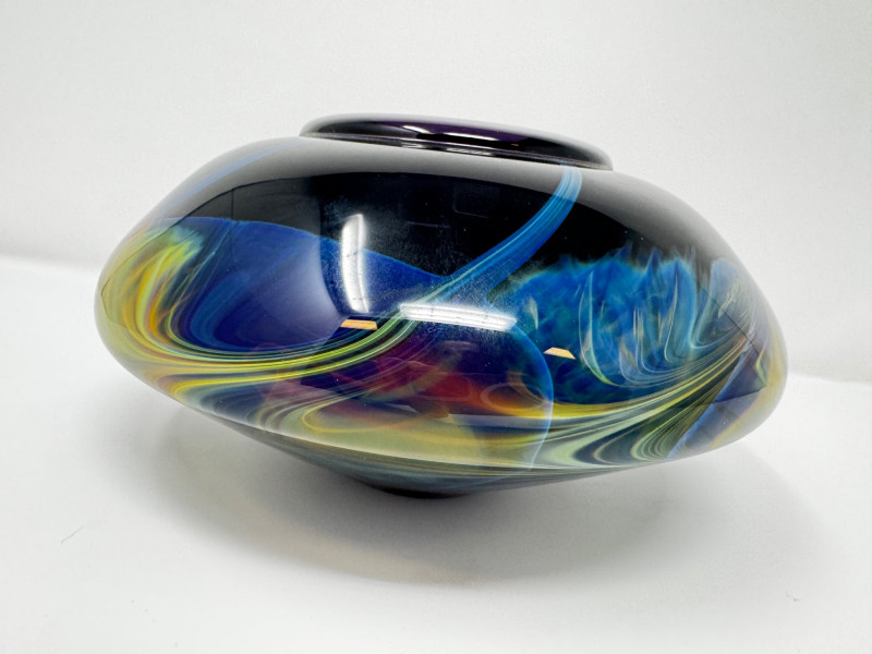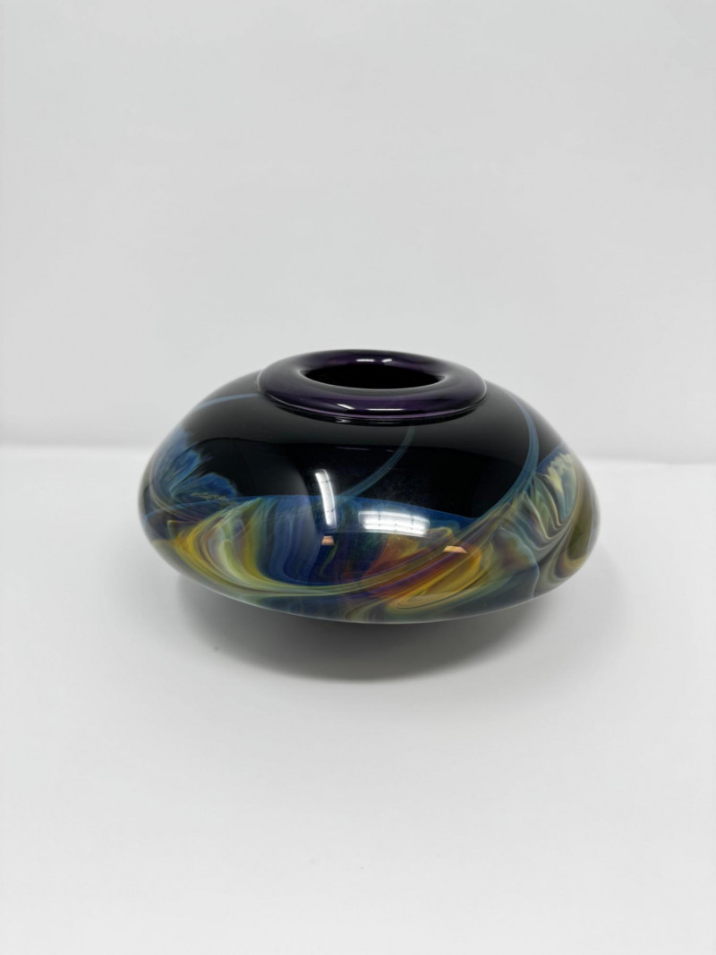 Lot # 72 - Heavy Art Glass Vase w/ Swirling Iridescent Design