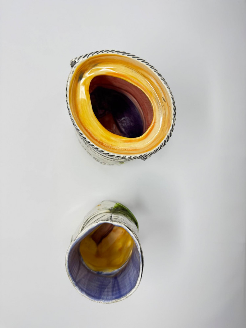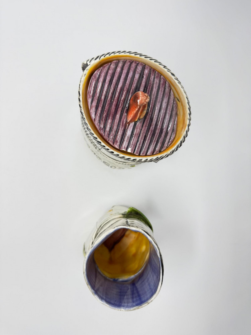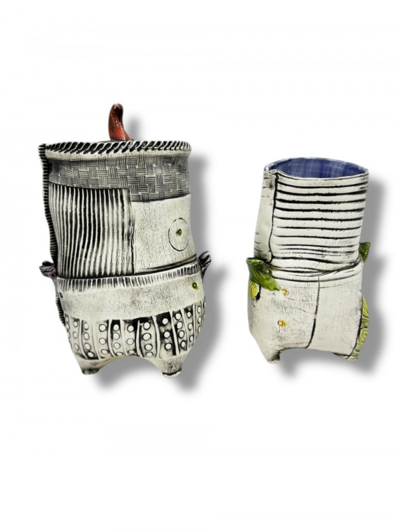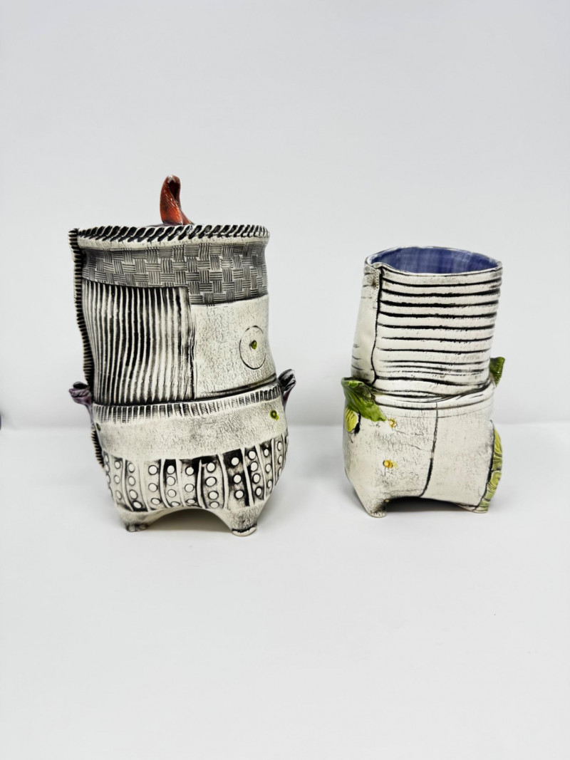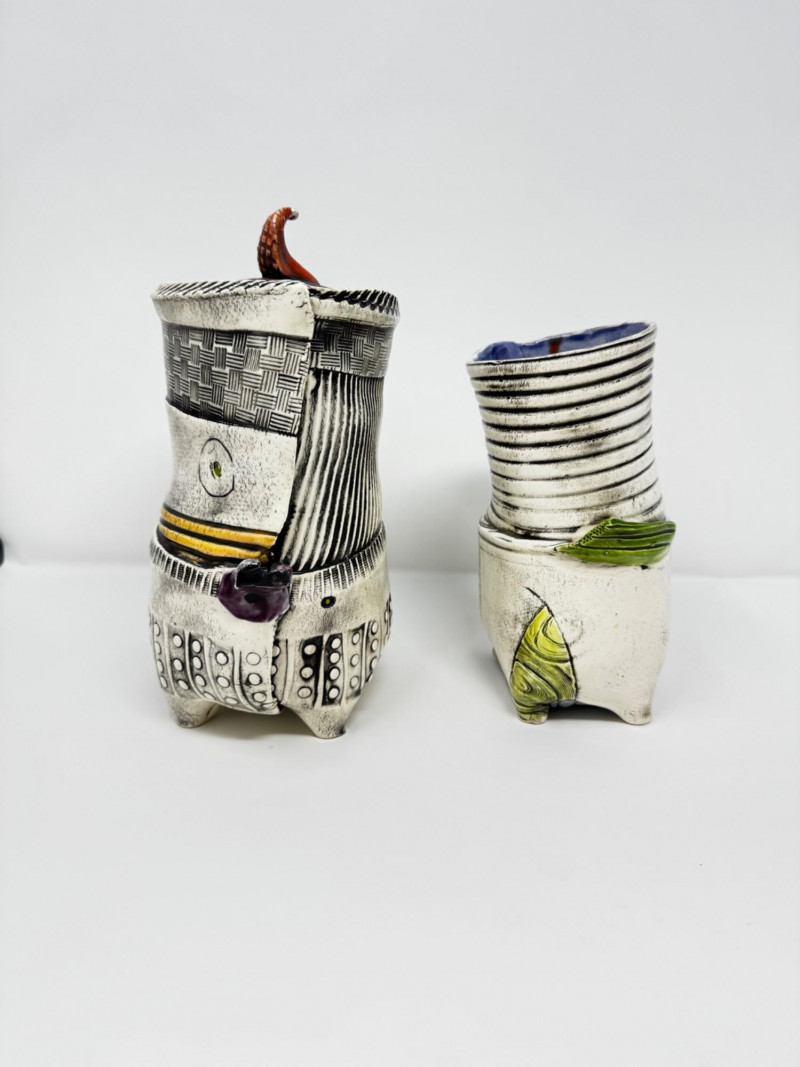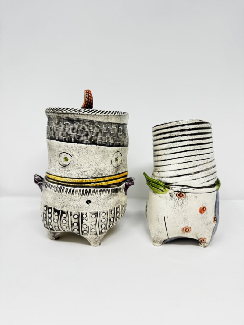 Signed Campbell Studio Art Pottery Lidded Jar & Vase Set.