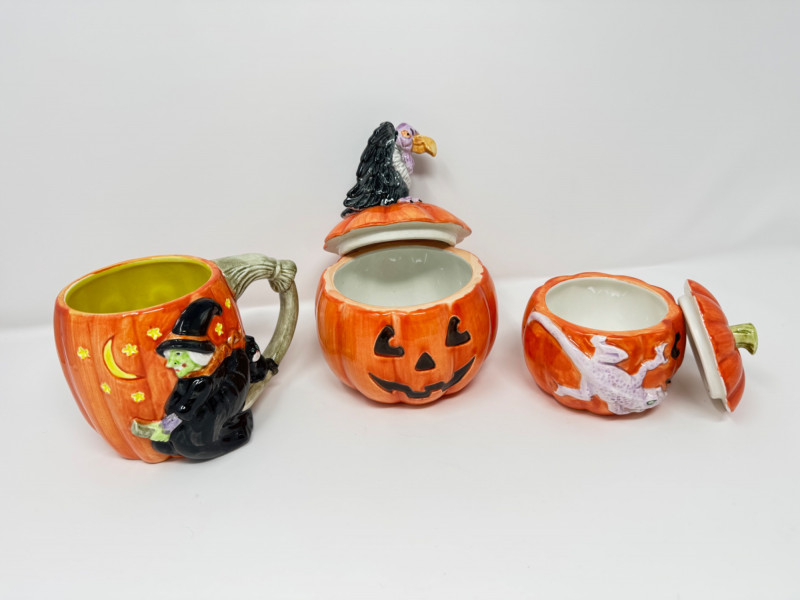 Lot # 109 - Fitz & Floyd Halloween Pumpkin Mug & Candy Dish Set Japan 1987–88