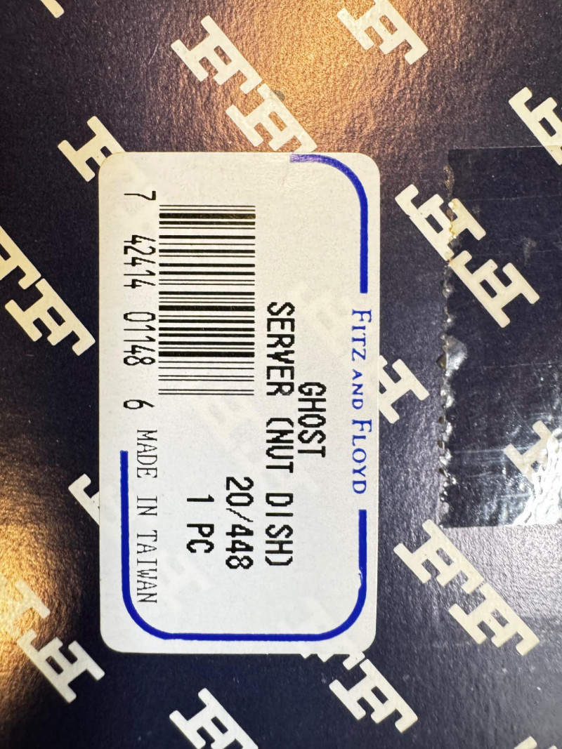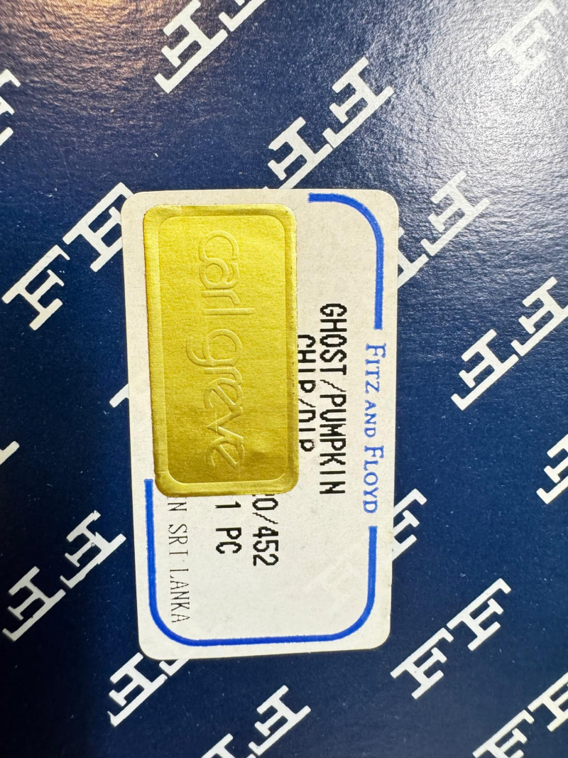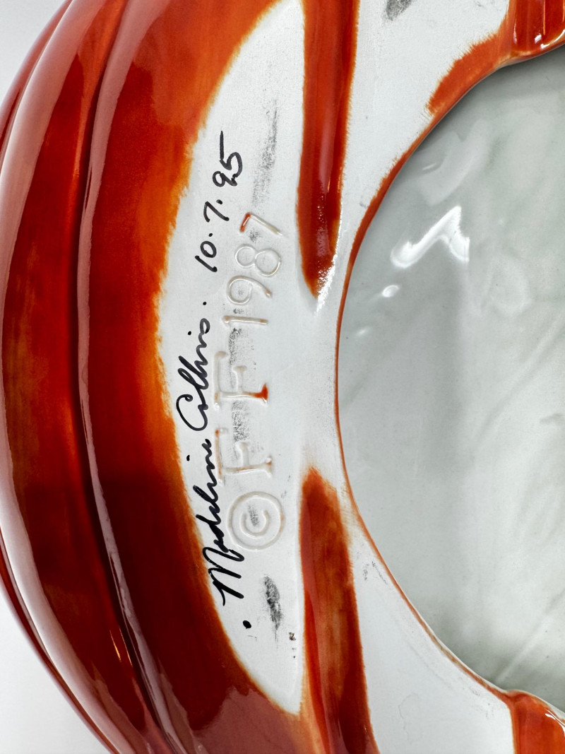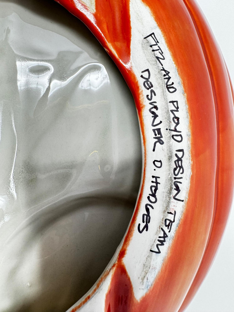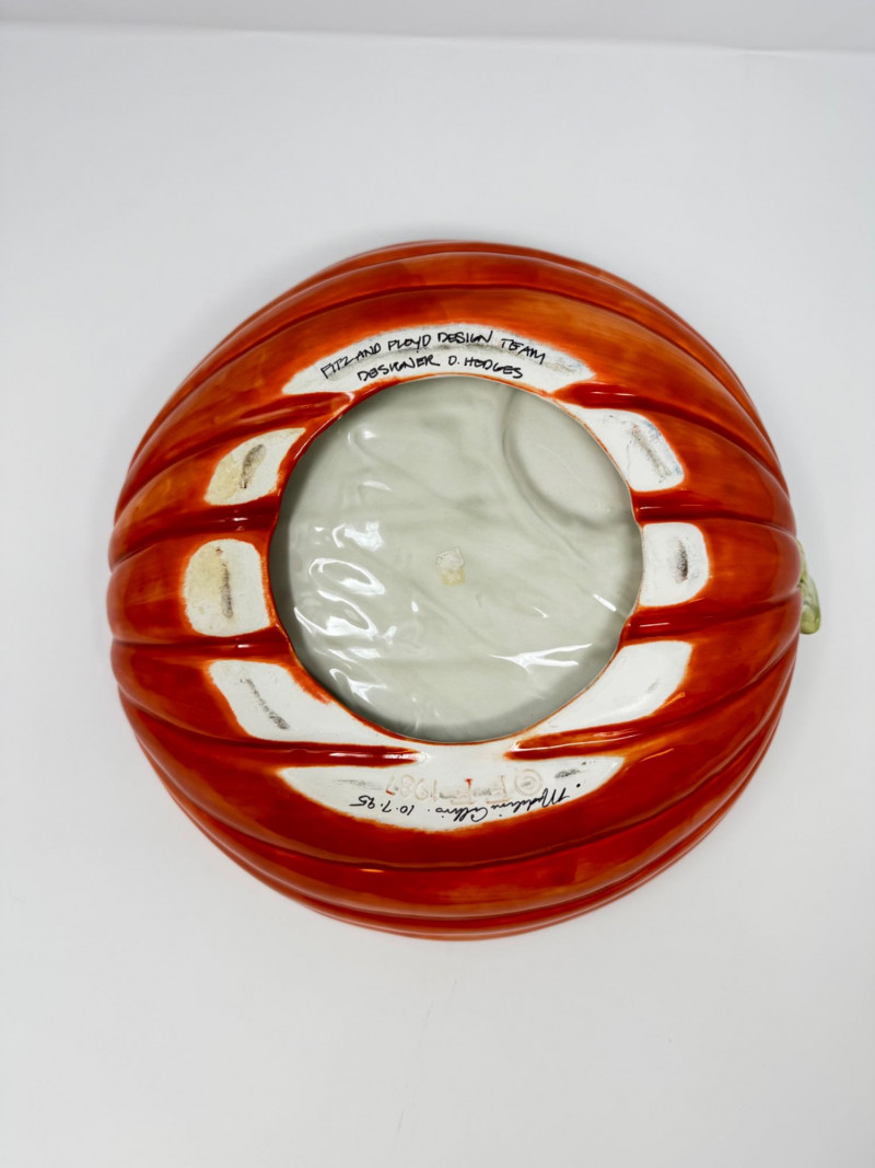 • 1987 Ghost & Pumpkin Chip ‘n Dip Bowl – 11.5” x 12” x 3” Marked ©FF 1987 and signed by Designer D. Hodges, Fitz & Floyd Design Team Both pieces come in their original packaging