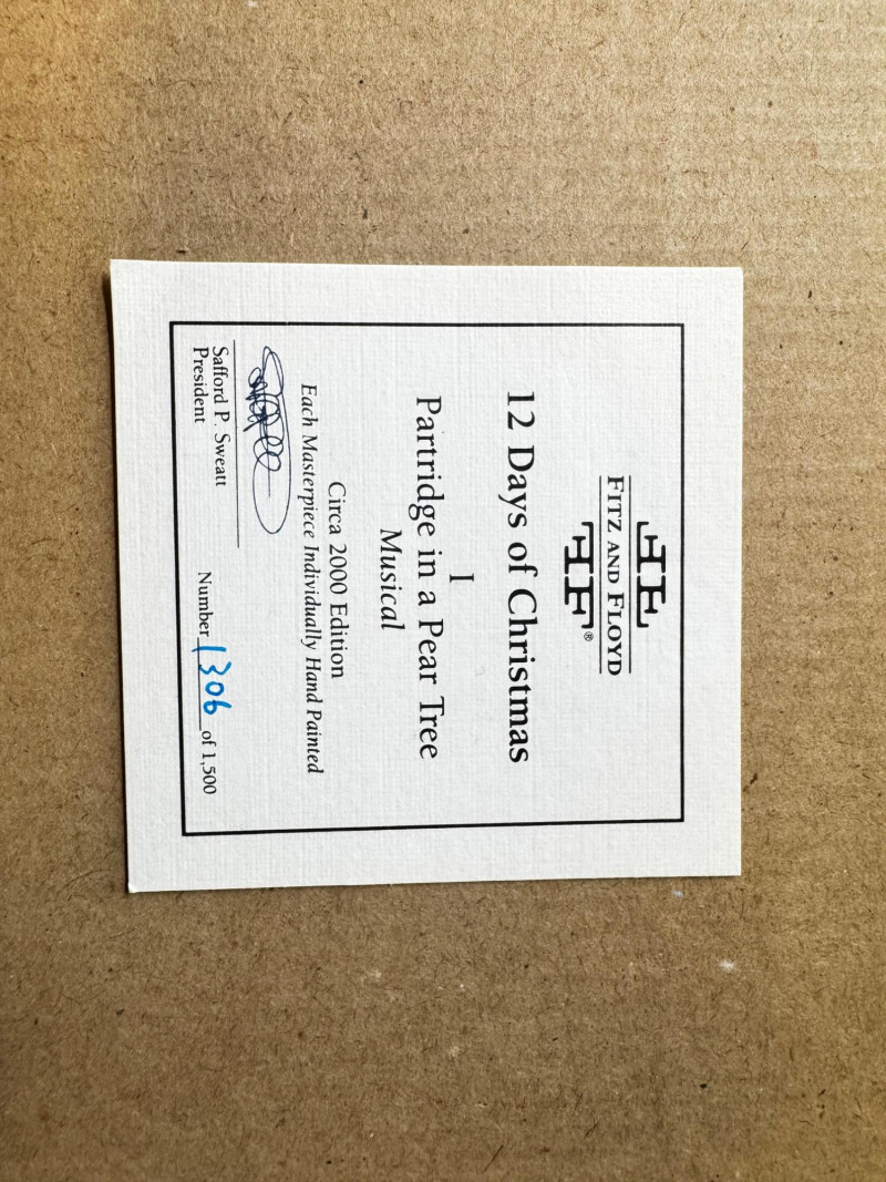 Fitz & Floyd 12 Days of Christmas “Partridge in a Pear Tree” Musical.