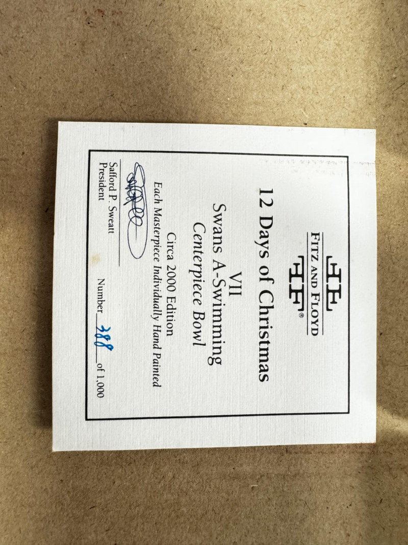 Fitz & Floyd 12 Days of Christmas “Swans A-Swimming” Bowl.