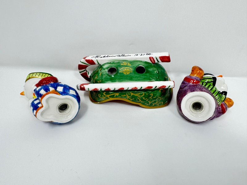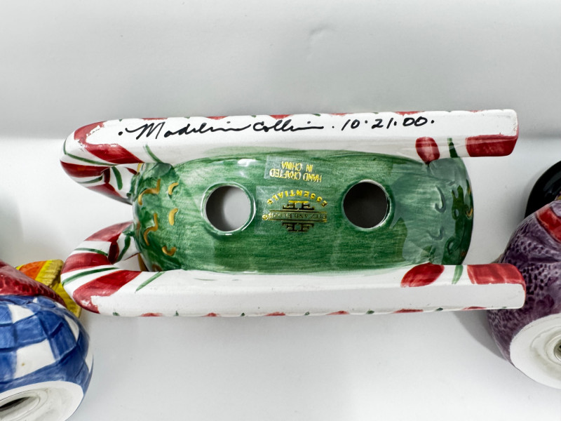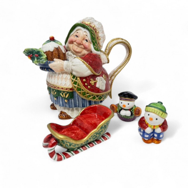 Lot # 86 - Fitz & Floyd Mrs. Claus Pitcher w/ Snowman Shakers & Sleigh