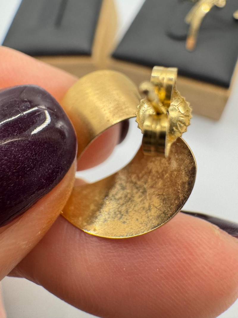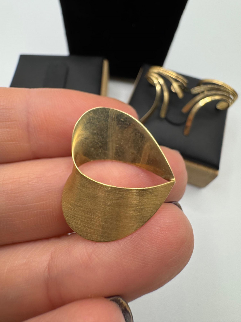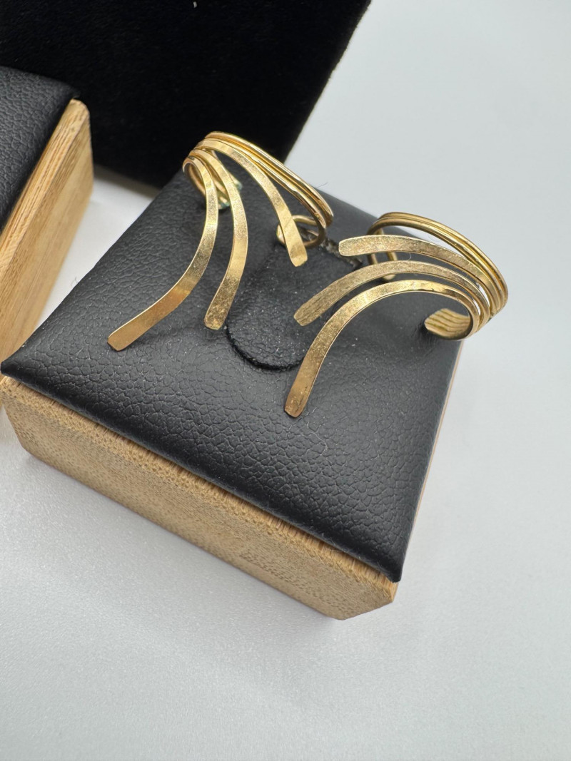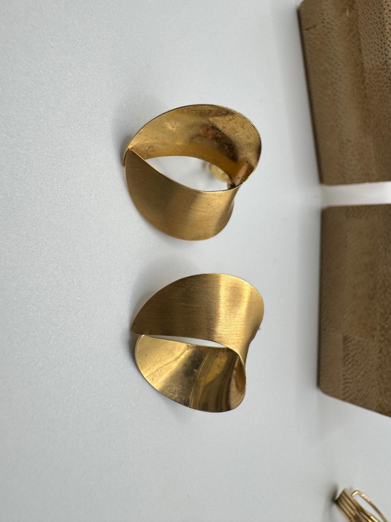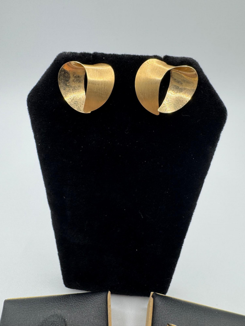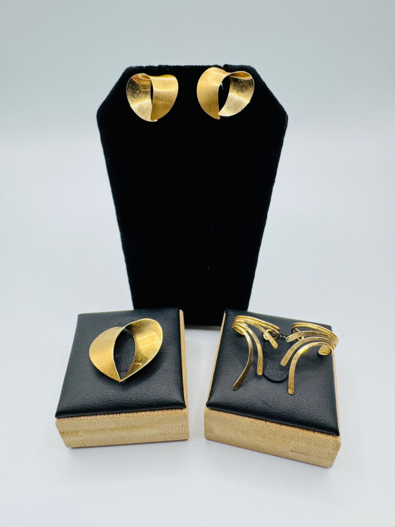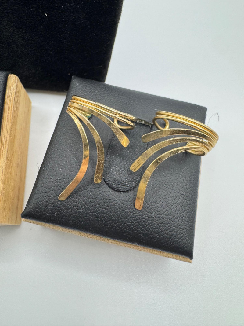 14K Gold Sculptural Earrings & Pendant + Gold-Filled Ear Cuffs, 3.16g.