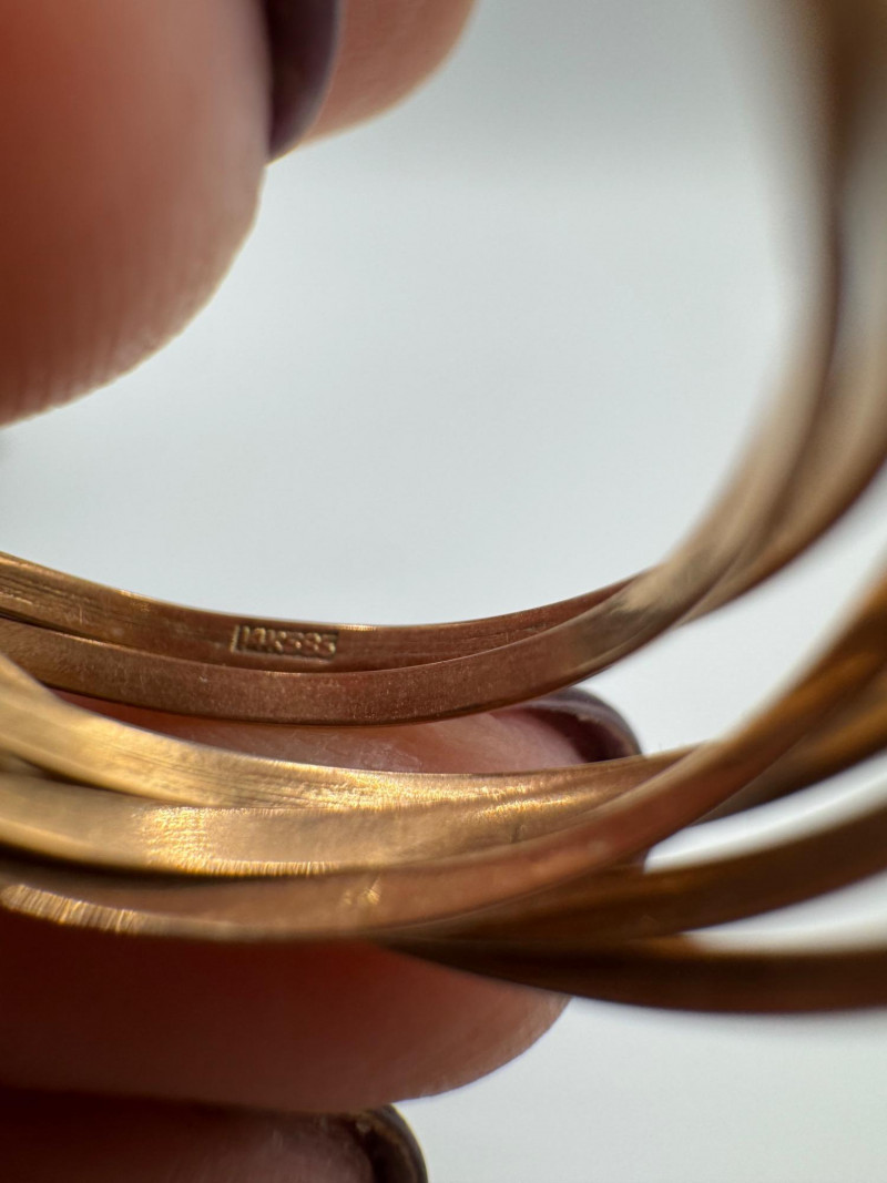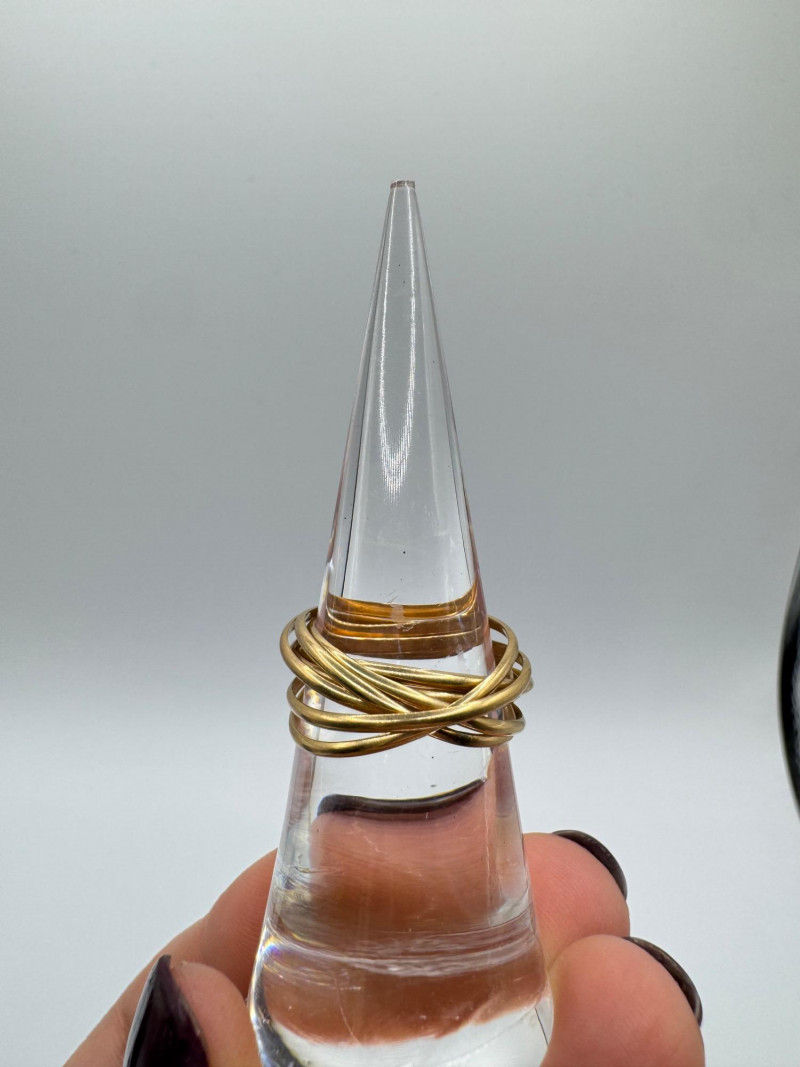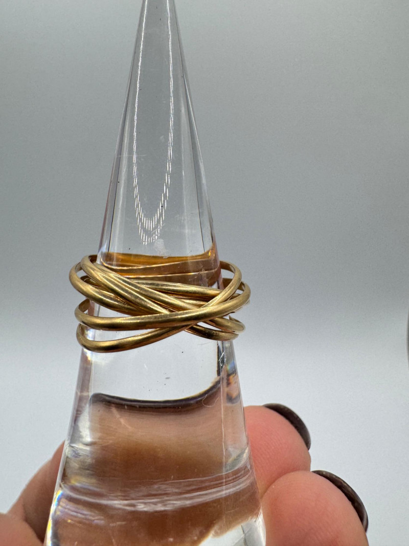 14K Gold Interlocking Wire Rings – Adjustable Fit, 6.32g. Important Disclaimer: Jewelry in this lot has not been tested. By bidding, you agree to purchase as is, with no guarantees on metal purity, gemstone authenticity, or content. No refunds issued on these factors.