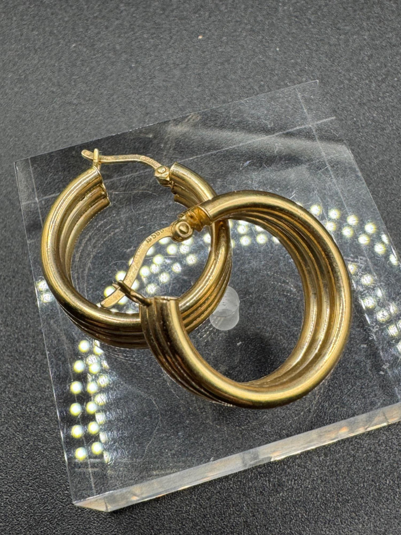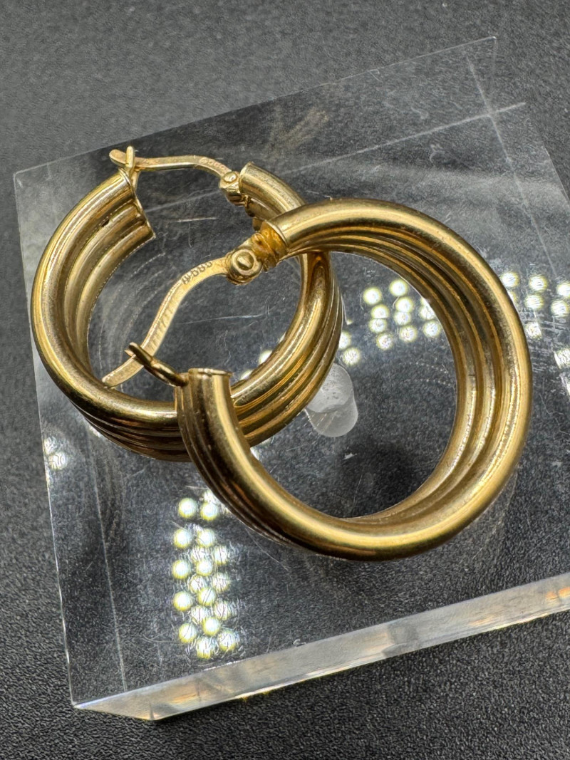 Lot # 7 - 14K Gold Chunky Triple Hoop Earrings – 4.16g