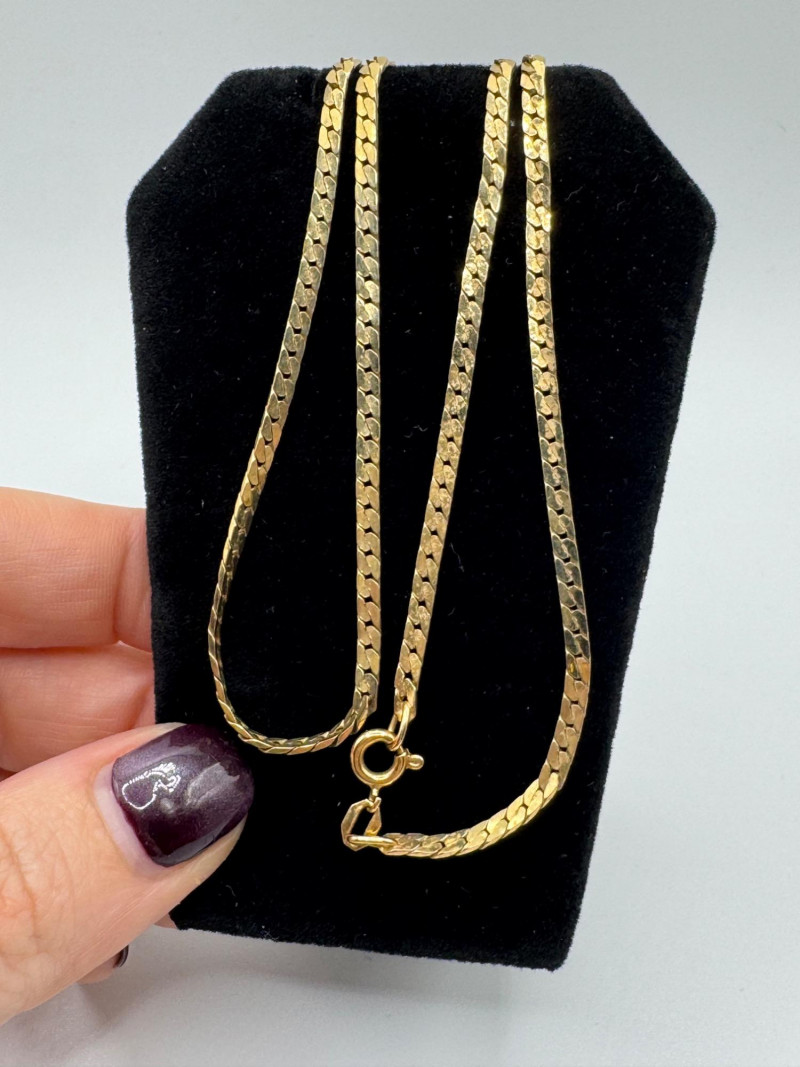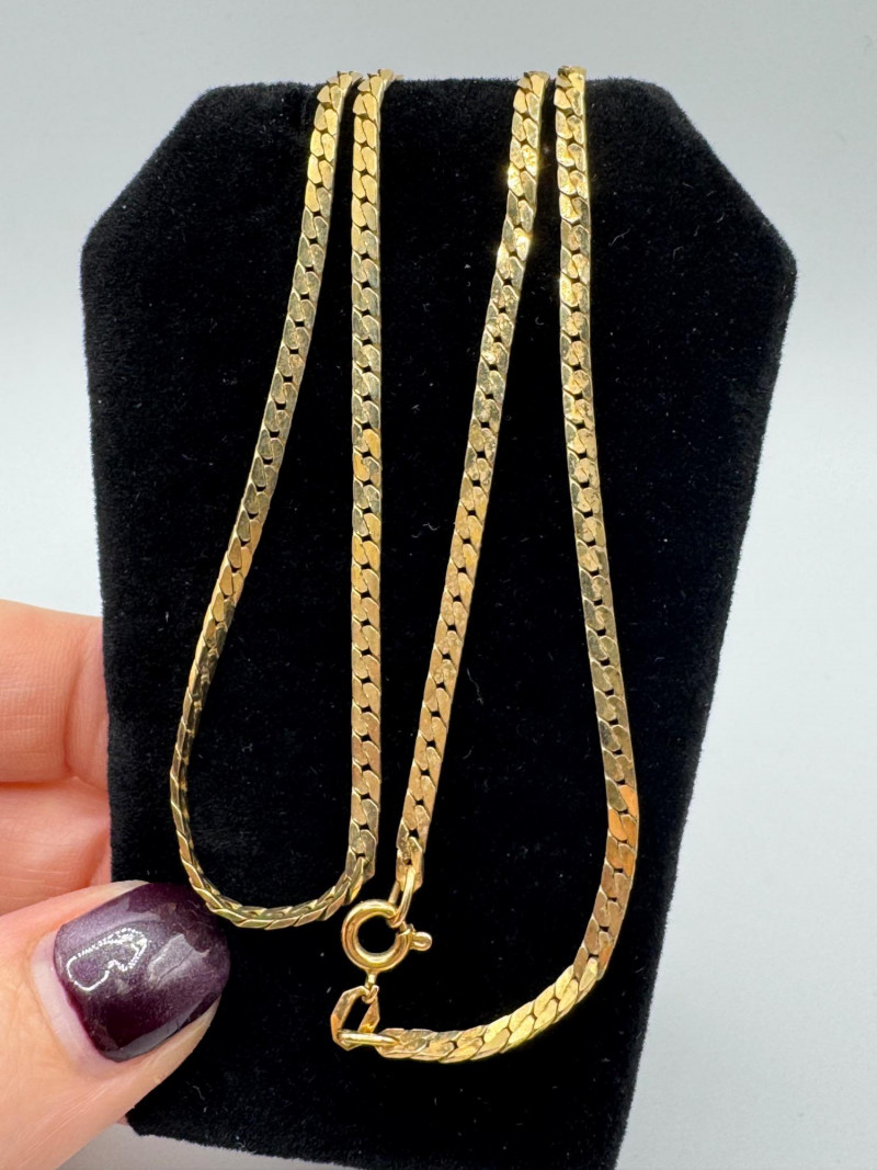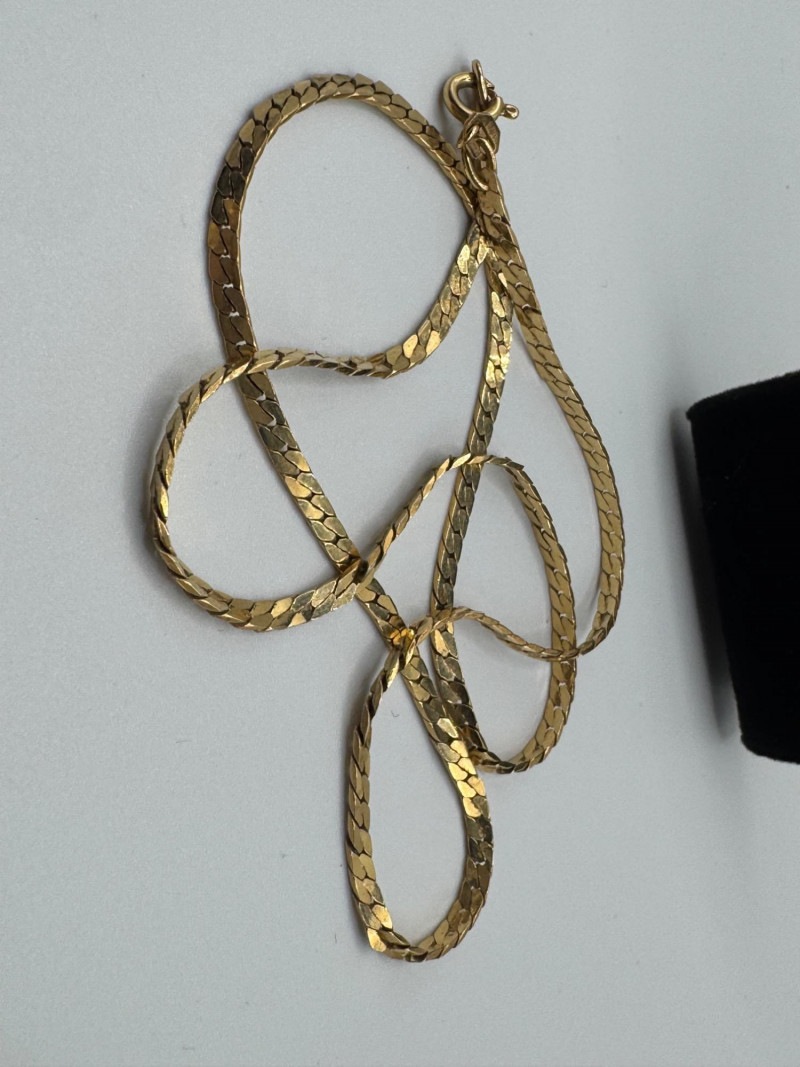 14K Gold Italian Herringbone Chain Necklace – 18” – 8.5g. Important Disclaimer: Jewelry in this lot has not been tested. By bidding, you agree to purchase as is, with no guarantees on metal purity, gemstone authenticity, or content. No refunds issued on these factors.