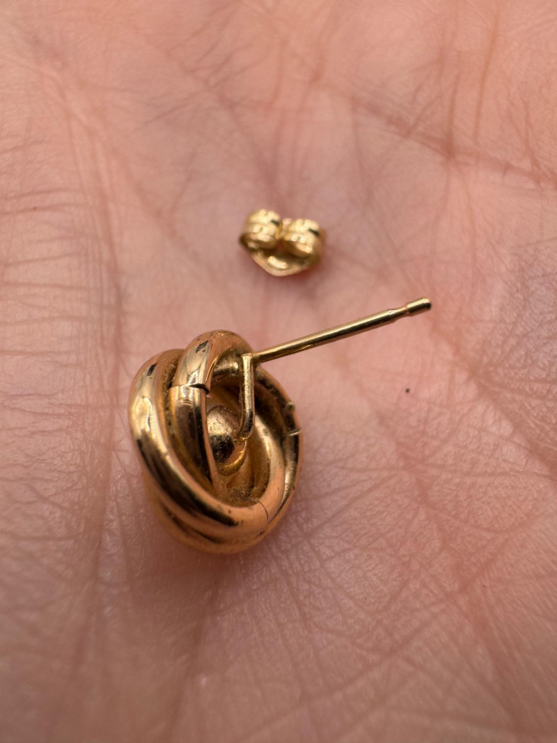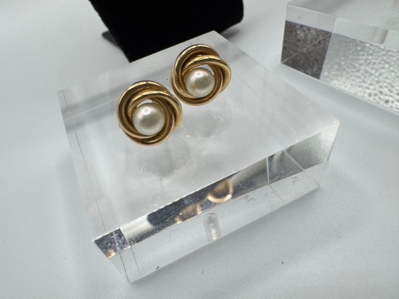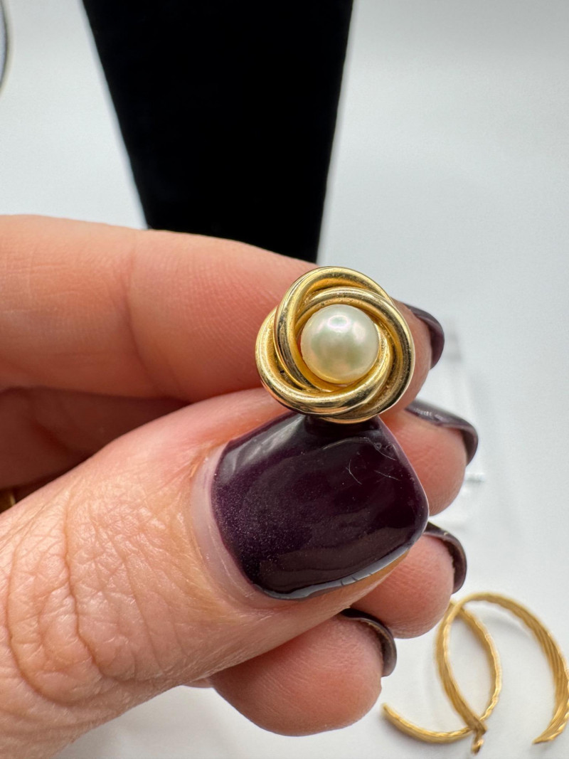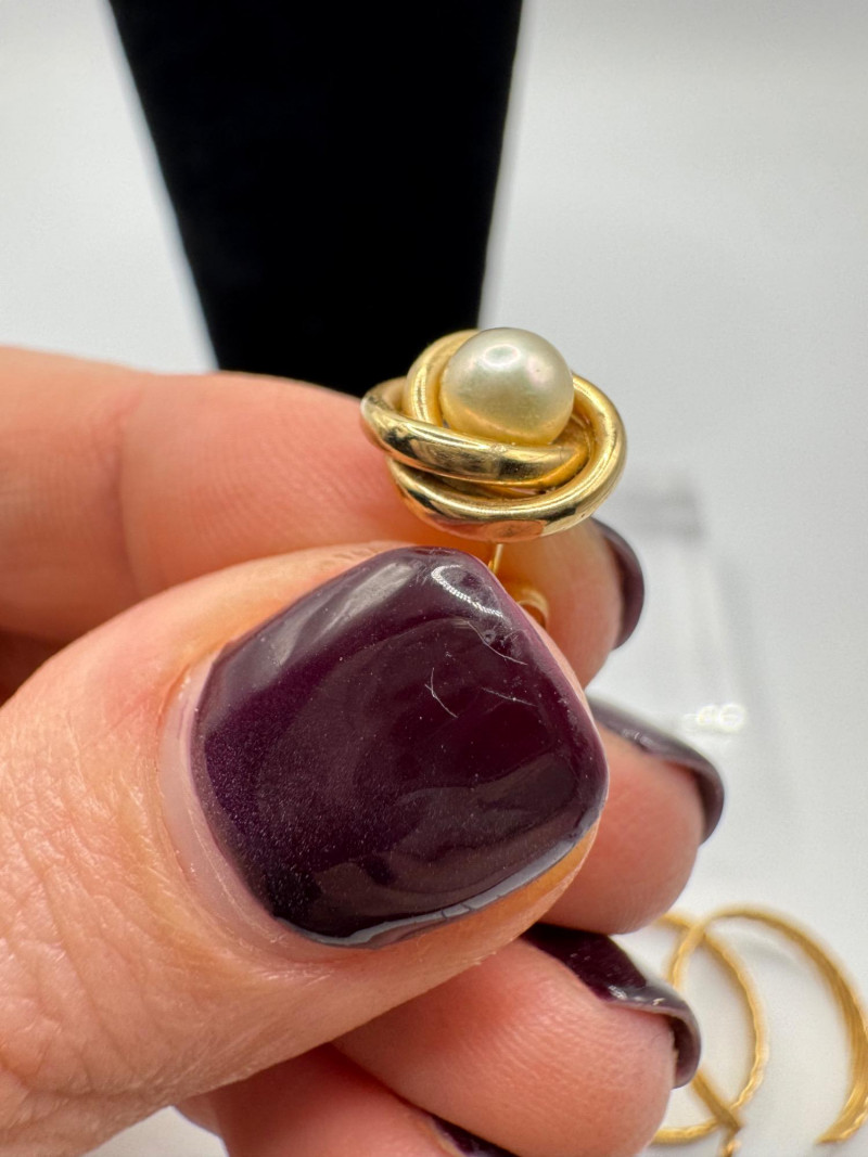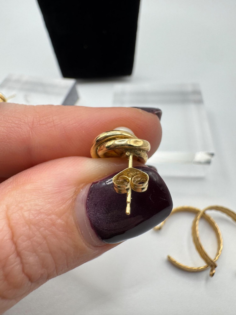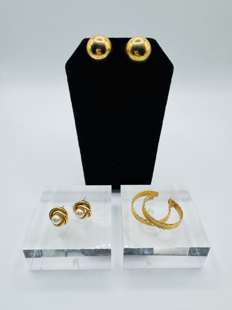 Lot # 11 - 14K Gold Earring Trio – Italian Twist, Pearl Knot & Dome Studs – 7g