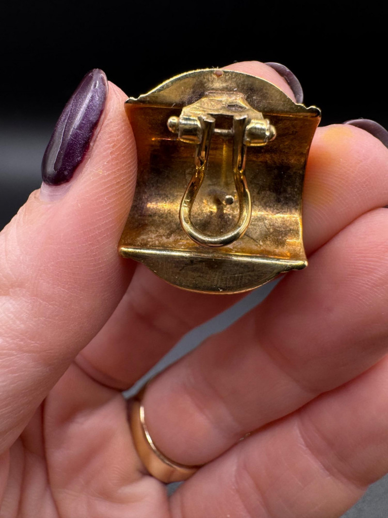 14K gold Clip-on Earrings, Curved Dome Design - 10.71g. Important Disclaimer: Jewelry in this lot has not been tested. By bidding, you agree to purchase as is, with no guarantees on metal purity, gemstone authenticity, or content. No refunds issued on these factors.