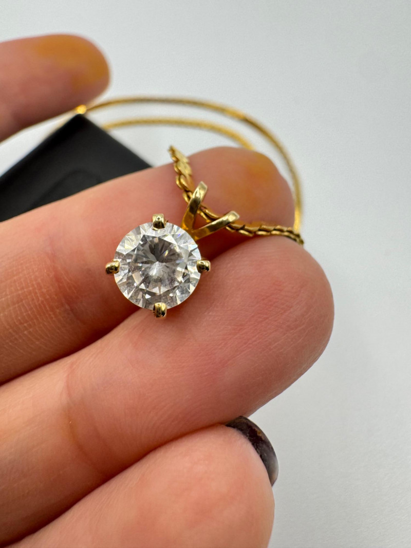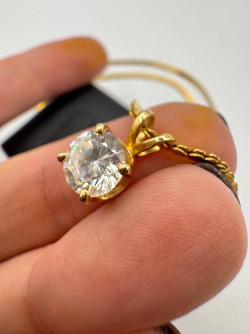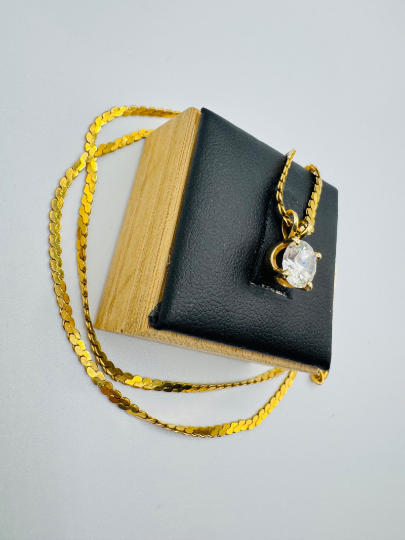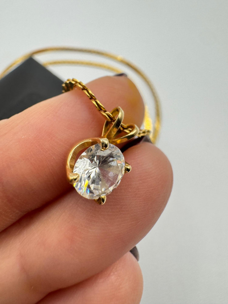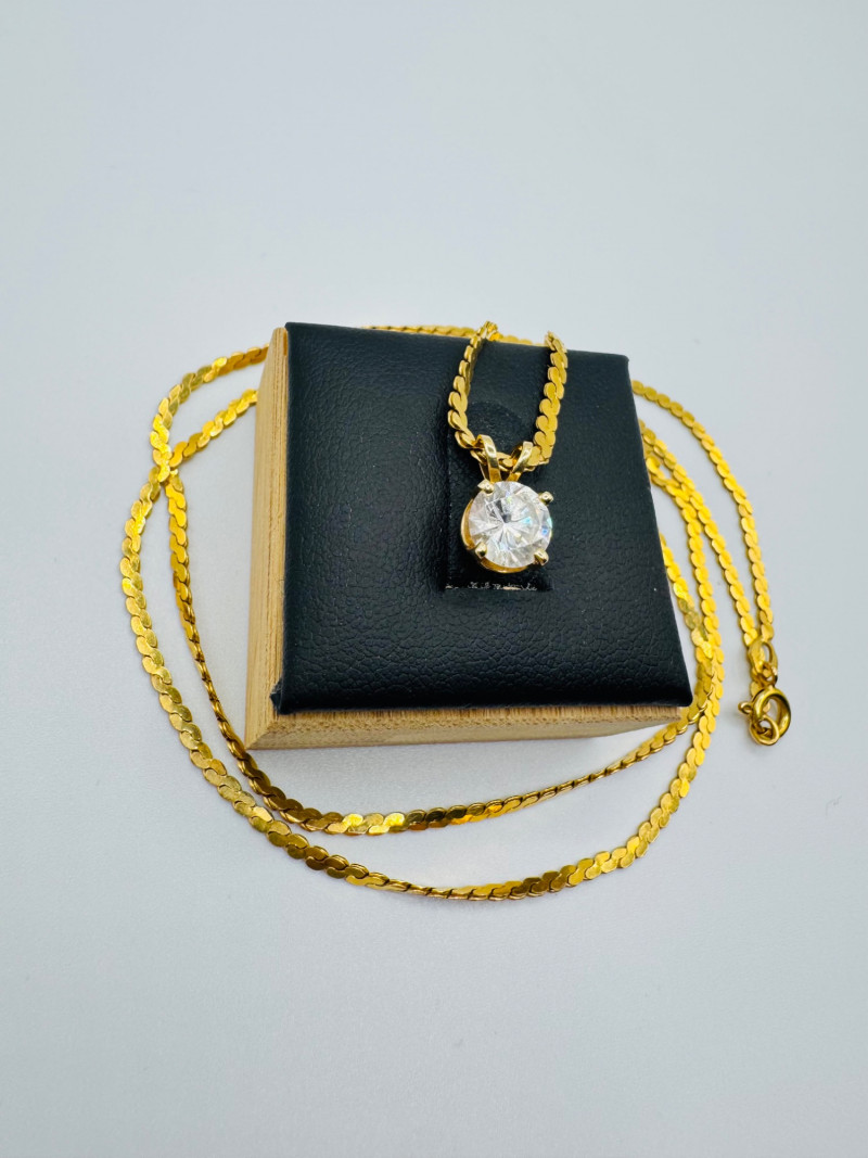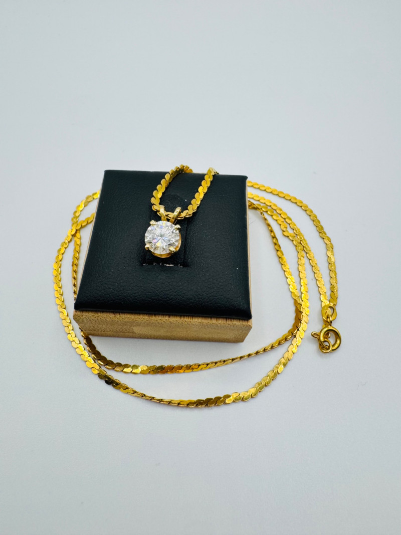 18K Gold Chain Necklace w/ Clear Solitaire Pendant – 9.1g.