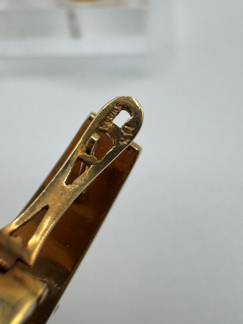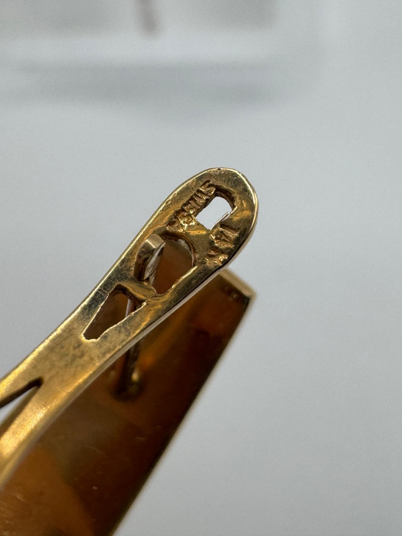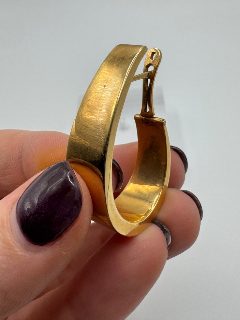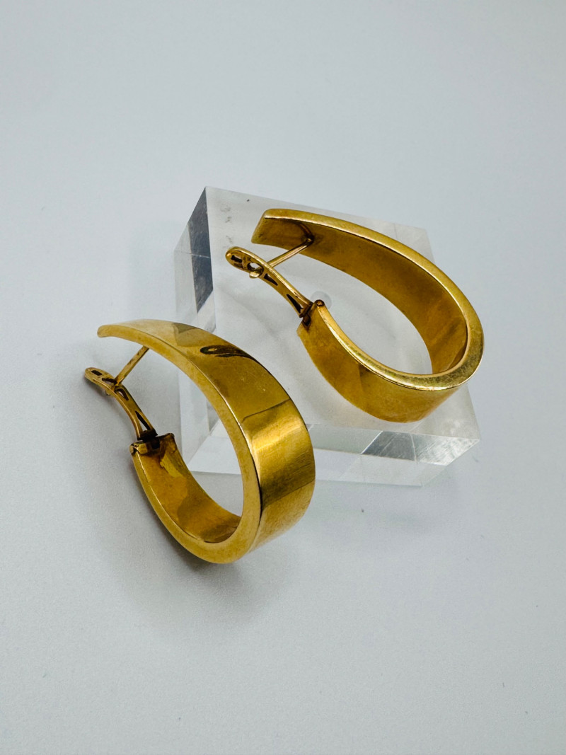 14K Gold Sculptural J Hoop Earrings – 9.91g. Important Disclaimer: Jewelry in this lot has not been tested. By bidding, you agree to purchase as is, with no guarantees on metal purity, gemstone authenticity, or content. No refunds issued on these factors.