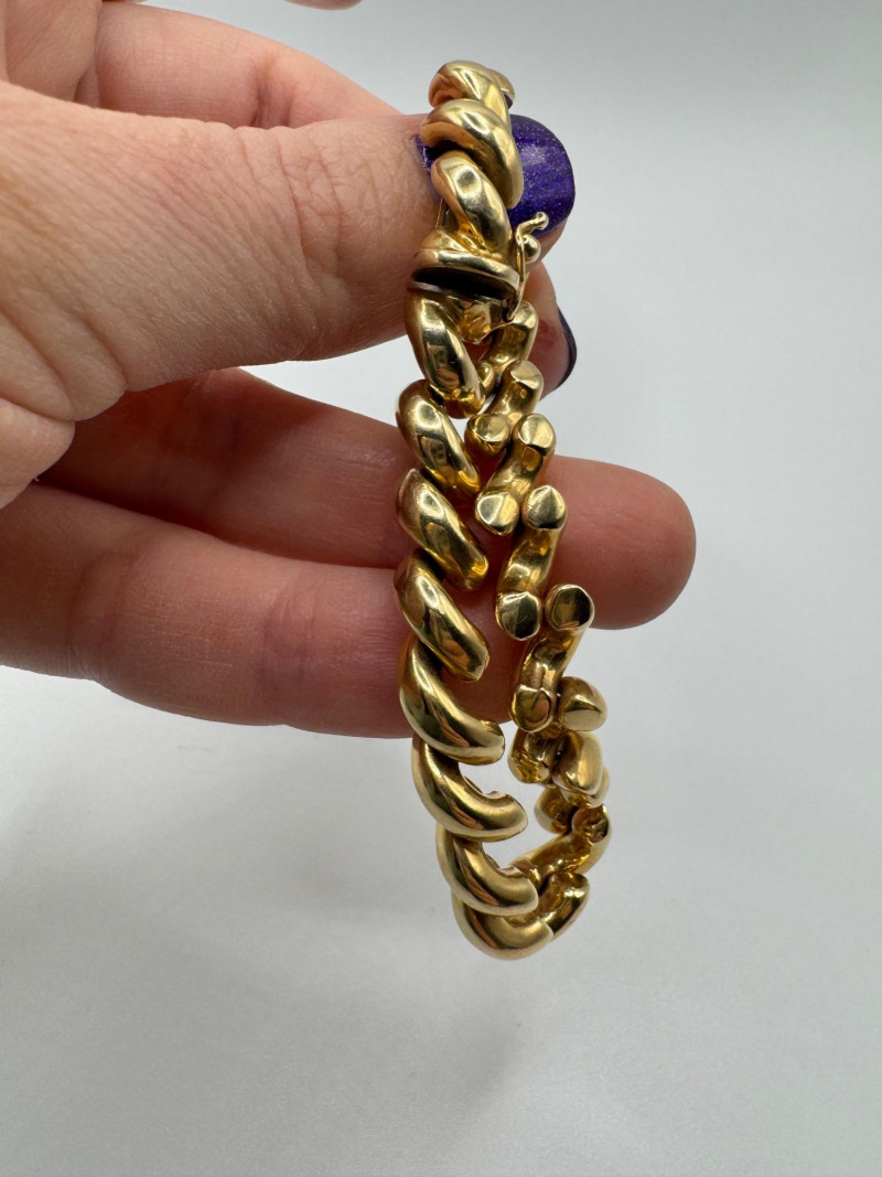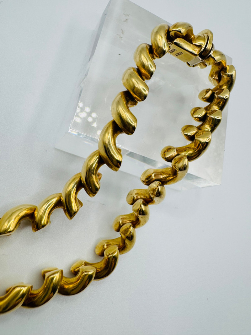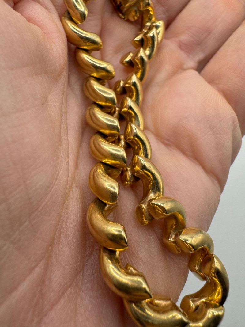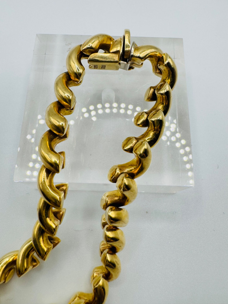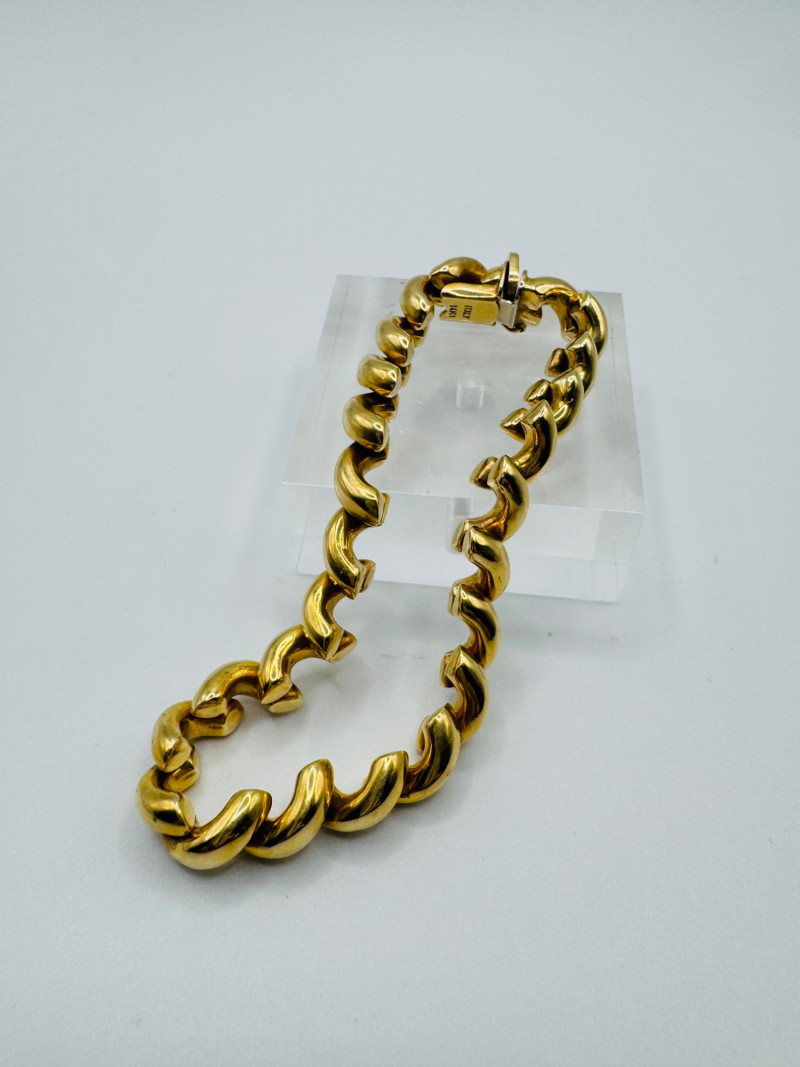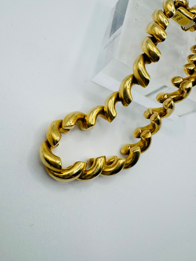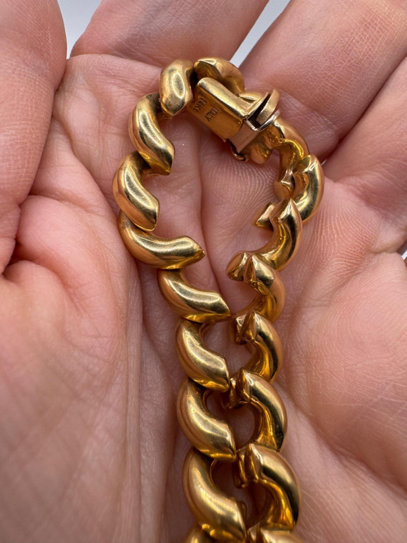 14K Italian Marconi Link Gold Bracelet – 7.25” – 17.04g. Marked “Italy 14K”, verified with acid test Weight: approx. 17.04 grams Length: 7.25 inches Features a distinctive Marconi-style twisted link design