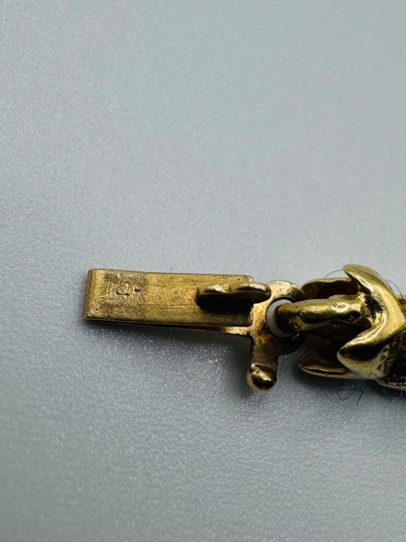 14K Gold “X” Link Bracelet – 8” – 20.81g. Important Disclaimer: Acid tested at 14K, but not guaranteed. Sold as is—no guarantees on metal purity or gemstone authenticity. No refunds on these factors.